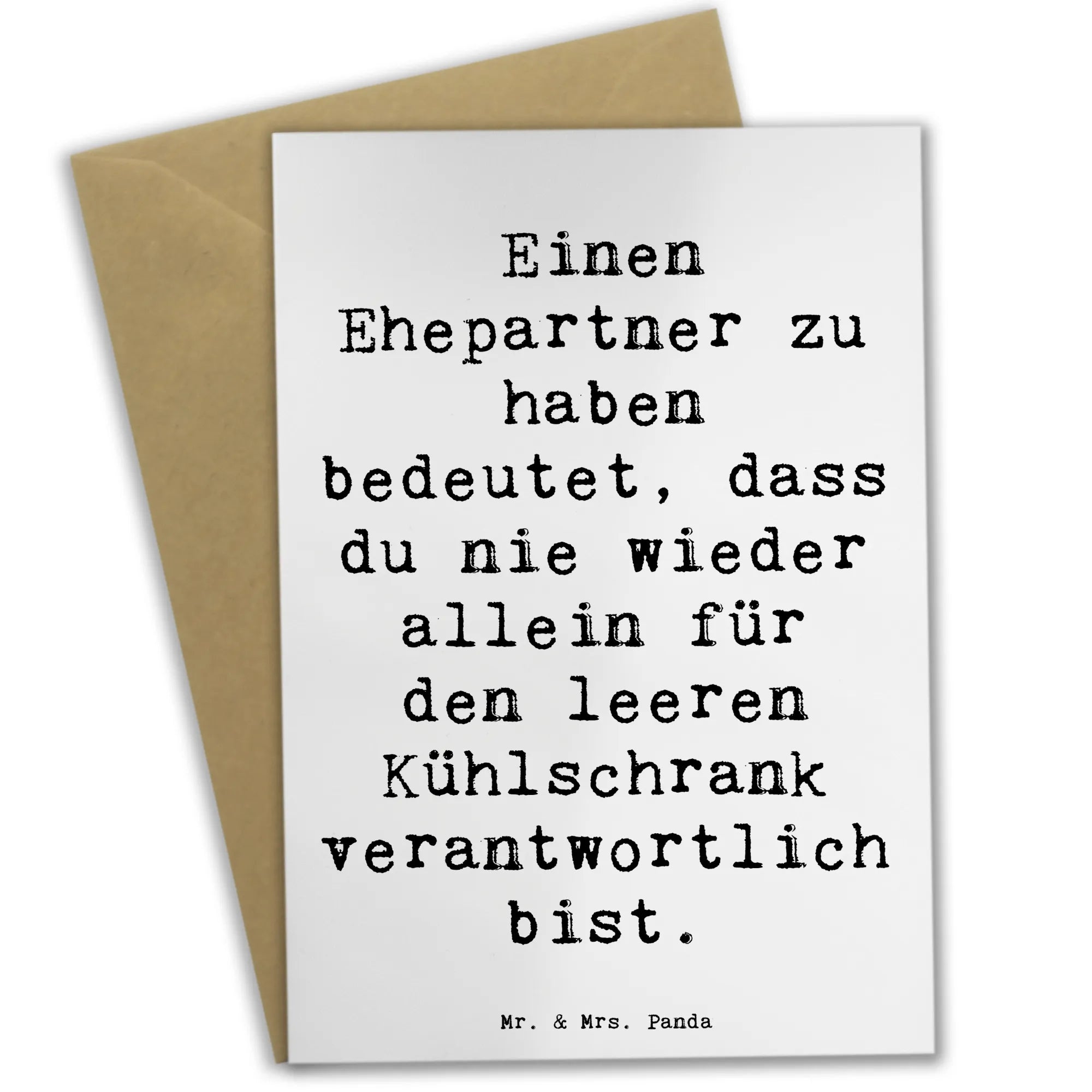 Greetings card Saying Einen Ehepartner zu haben bedeutet, dass du nie wieder allein für den leeren Kühlschrank verantwortlich bist.