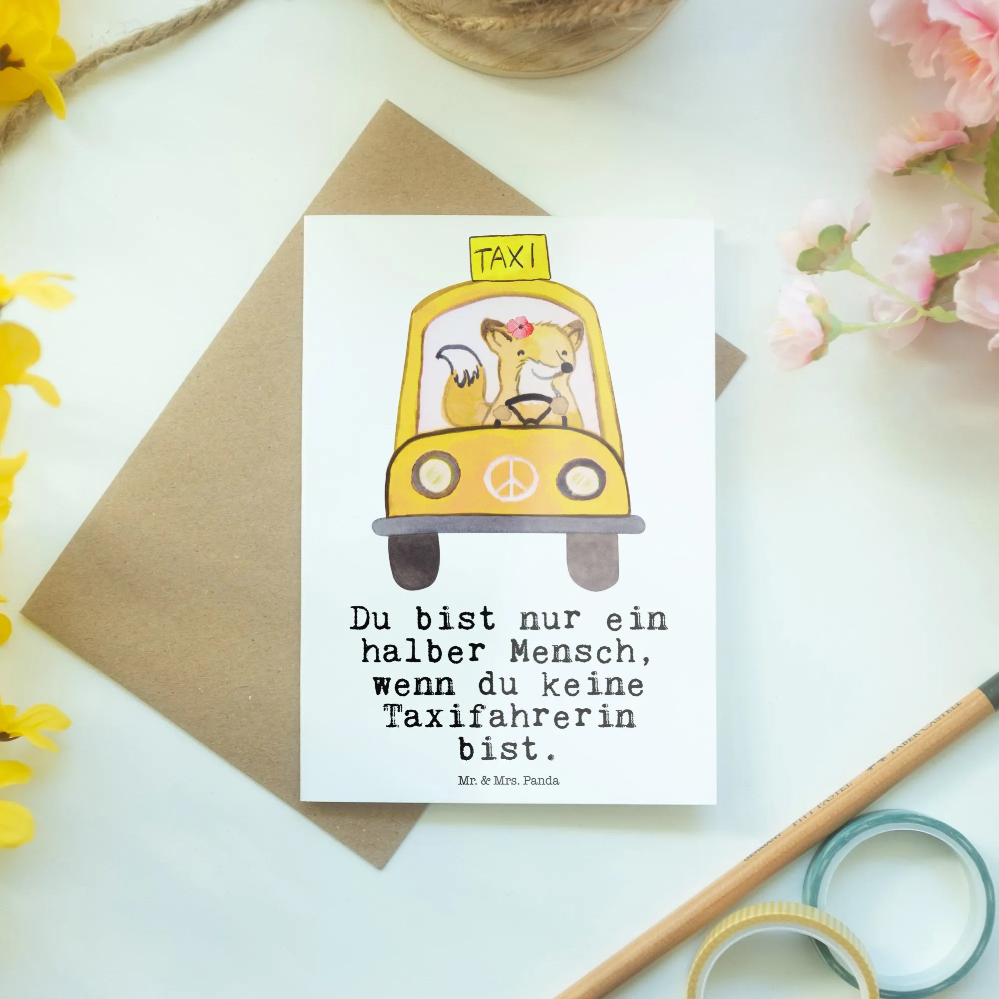 So why not add a touch of warmth and creativity to your gifting? Be it a cheerful birthday card, thoughtful professional card, or a light-hearted congratulations card for a job promotion, the Mr. & Mrs. Panda cab driver greeting card is the perfect choice. Get ready to make someone's day a little brighter with this heartfelt gesture!