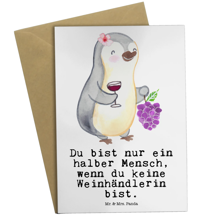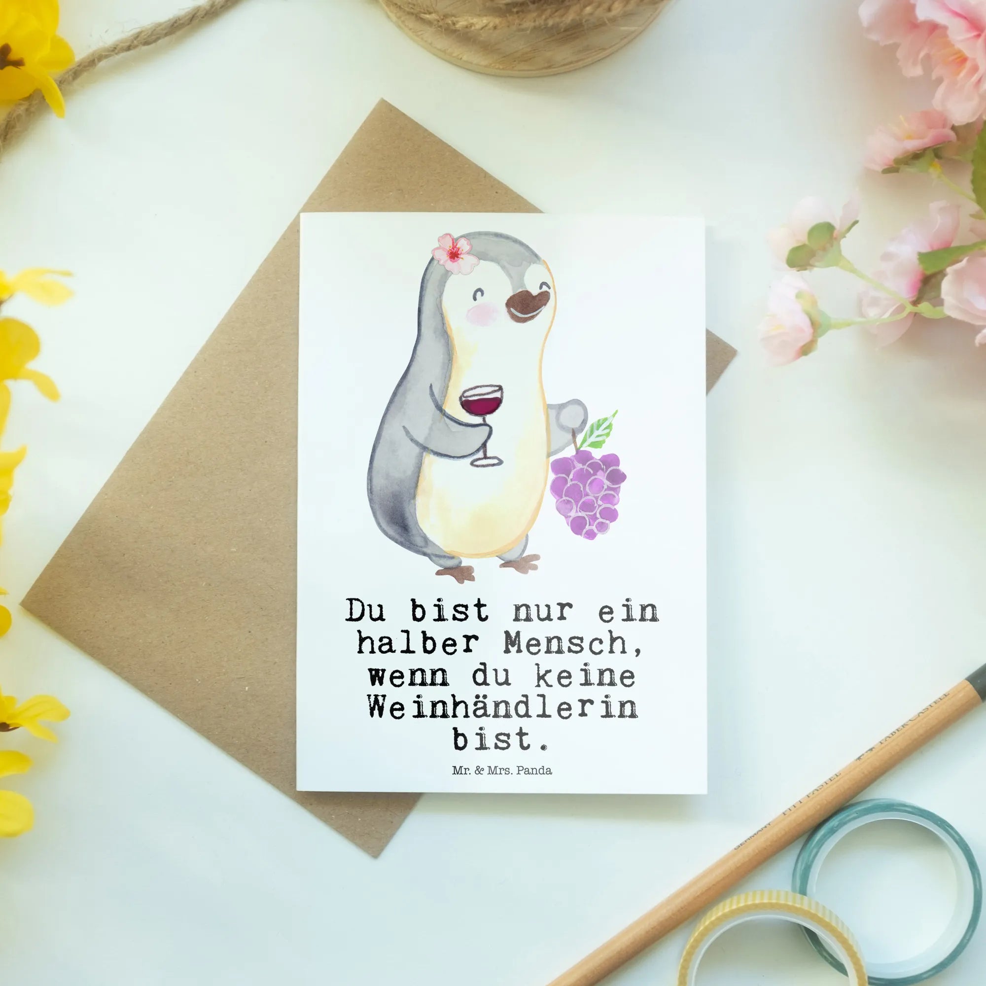 Measuring 148 mm by 105 mm, this beautifully crafted card is printed on high-quality 300-gram cardboard, ensuring elegance and durability. Its vibrant design features a cheerful female penguin, playfully holding a glass of wine in one hand and delightful grapes in the other. Paired with the quirky slogan, "Is life even worth living if you're not a wine merchant?" this card is sure to bring a smile to anyone who appreciates the lighter side of life—especially those passionate about wine!