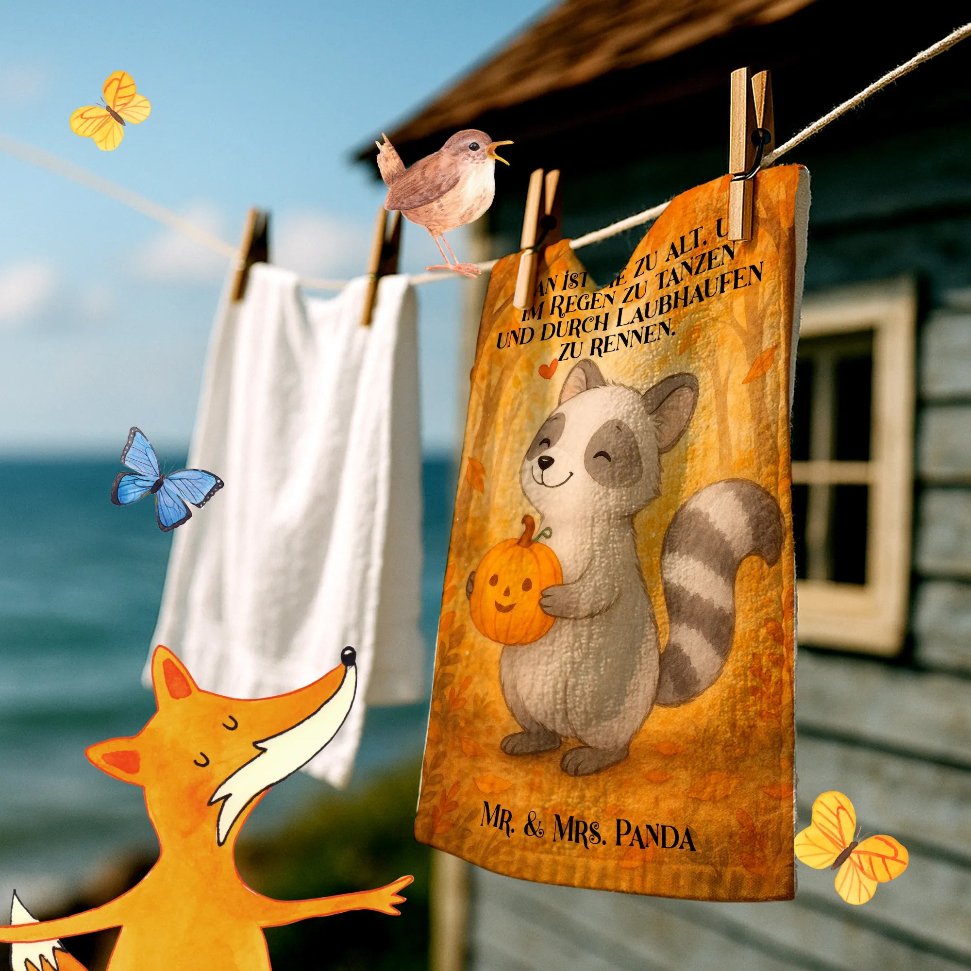 Gästehandtuch Waschbär Kürbis Design - mit Spruch