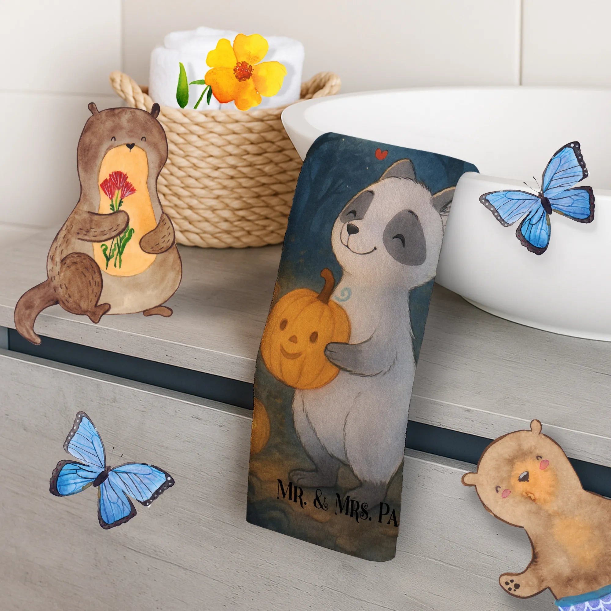 Ein kleines Herbstwunder für dein Zuhause: Das Gästehandtuch „Waschbär Kürbis“ von Mr. & Mrs. Panda bringt herbstliche Gemütlichkeit ins Gäste-WC oder Badezimmer. Der fröhliche Waschbär mit seinem geschnitzten Kürbis zaubert sofort ein Lächeln und ist die perfekte Halloween Deko für alle, die es liebevoll und verspielt mögen. 🍂🎃