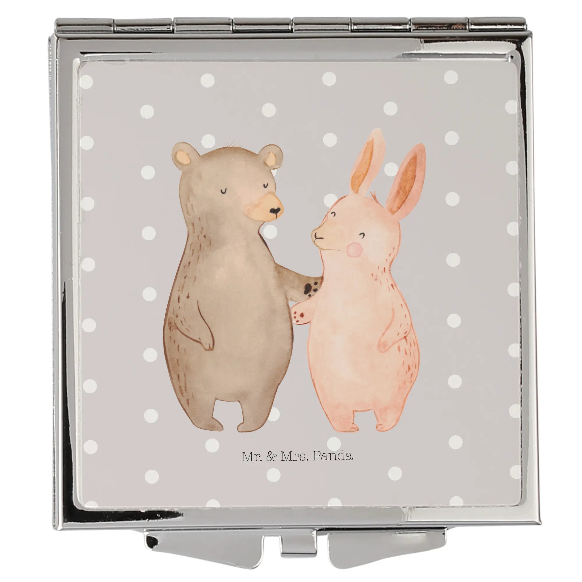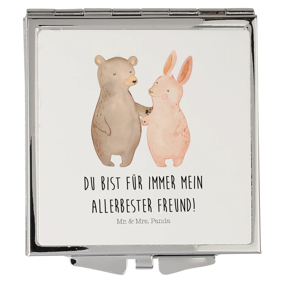Handbag mirror bear and rabbit Embrace - with a saying - White