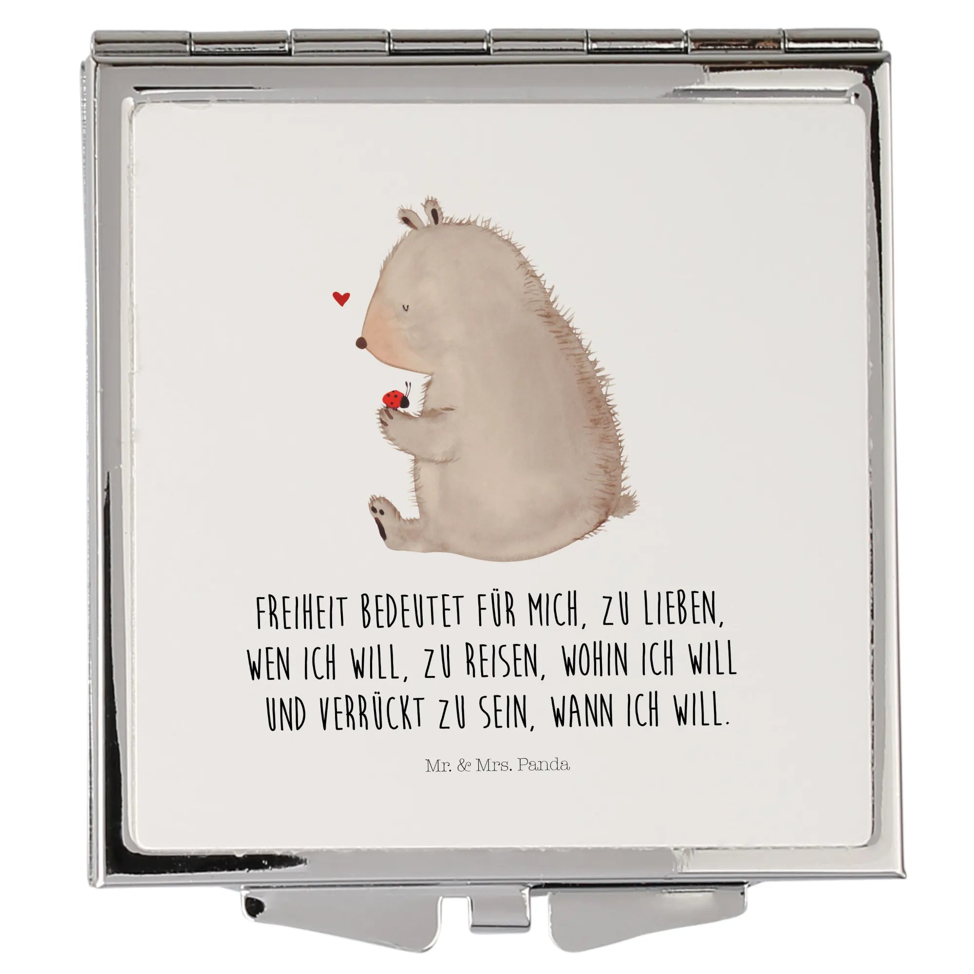 Step into elegance with the enchanting Handbag Mirror from Mr. & Mrs. Panda! This square mirror, sized 60 mm x 60 mm x 8 mm, features delightful motifs and cheerful quotes that elevate any moment. Crafted from top-quality glass with an aluminum metal frame, this durable yet graceful piece is adorned with a shiny silver plating for a classy finish. Its compact, square design means it easily fits into your handbag or backpack, making it the ideal accessory for your on-the-go lifestyle. The secure folding closure prevents scratches and damages, keeping your mirror pristine. Whether it's for a quick touch-up, a spontaneous selfie, or as a thoughtful gift, this mirror will surely bring joy to every recipient. With just a simple wipe using a damp cloth, it remains sparkling clean for all your beauty needs. Bring the Mr. & Mrs. Panda charm into your daily routine with this lovely handbag mirror!