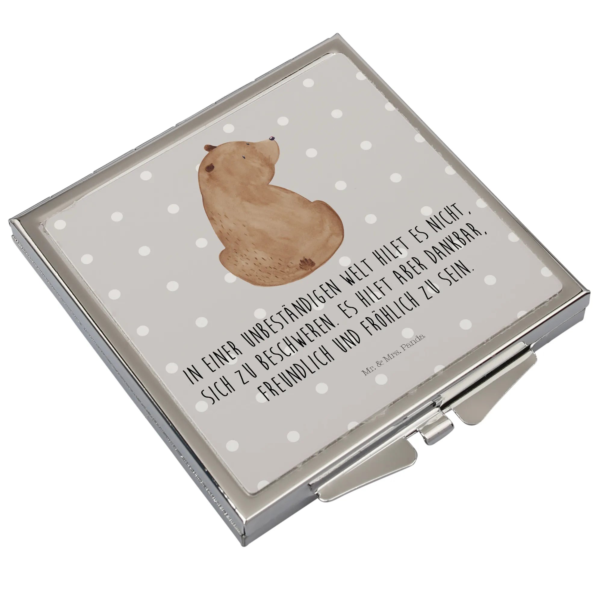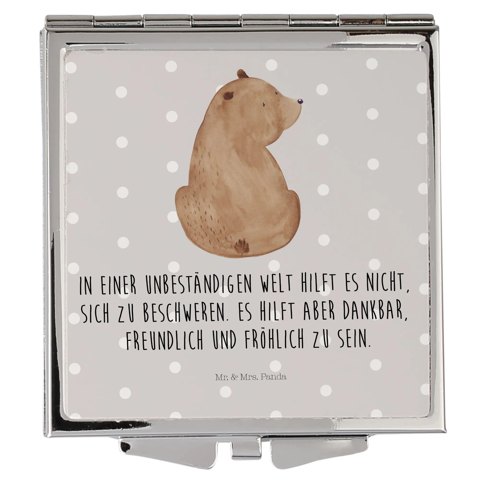 Handbag mirror bear shoulder look - with a saying - Grey Pastel