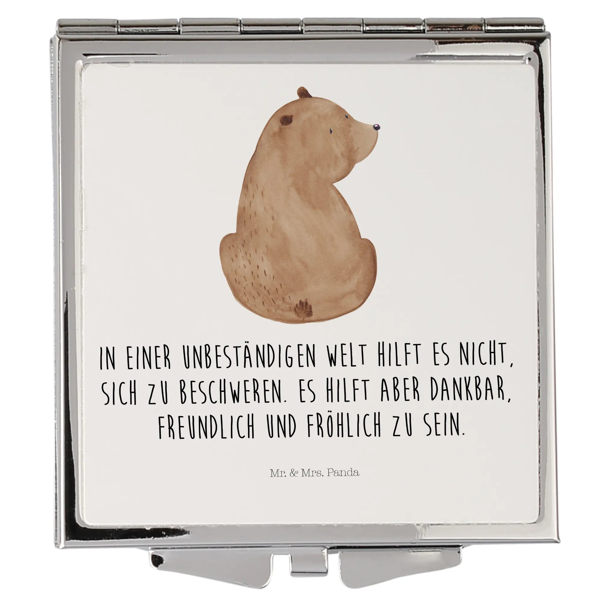 Capture the essence of lovely moments with the Handbag Mirror from Mr. & Mrs. Panda! With its square design, measuring 60 mm x 60 mm x 8 mm, this beautiful accessory features enchanting motifs and joyful phrases that brighten your day. Made from durable glass with an aluminum coating, this mirror not only sparkles but also stands the test of time. The chic silver-plated edge adds a touch of elegance, making it a delightful gift for friends or an indulgent treat for yourself. Compact enough to slip easily into any handbag or backpack, it’s perfect for all your touch-up needs while on-the-go. Its handy folding mechanism ensures that it stays protected, preventing scratches and marks. Whether you’re gearing up for a night out or just need to check your look during the day, this Handbag Mirror is a must-have. Wipe it gently with a damp cloth for easy maintenance and keep the charm alive day after day.