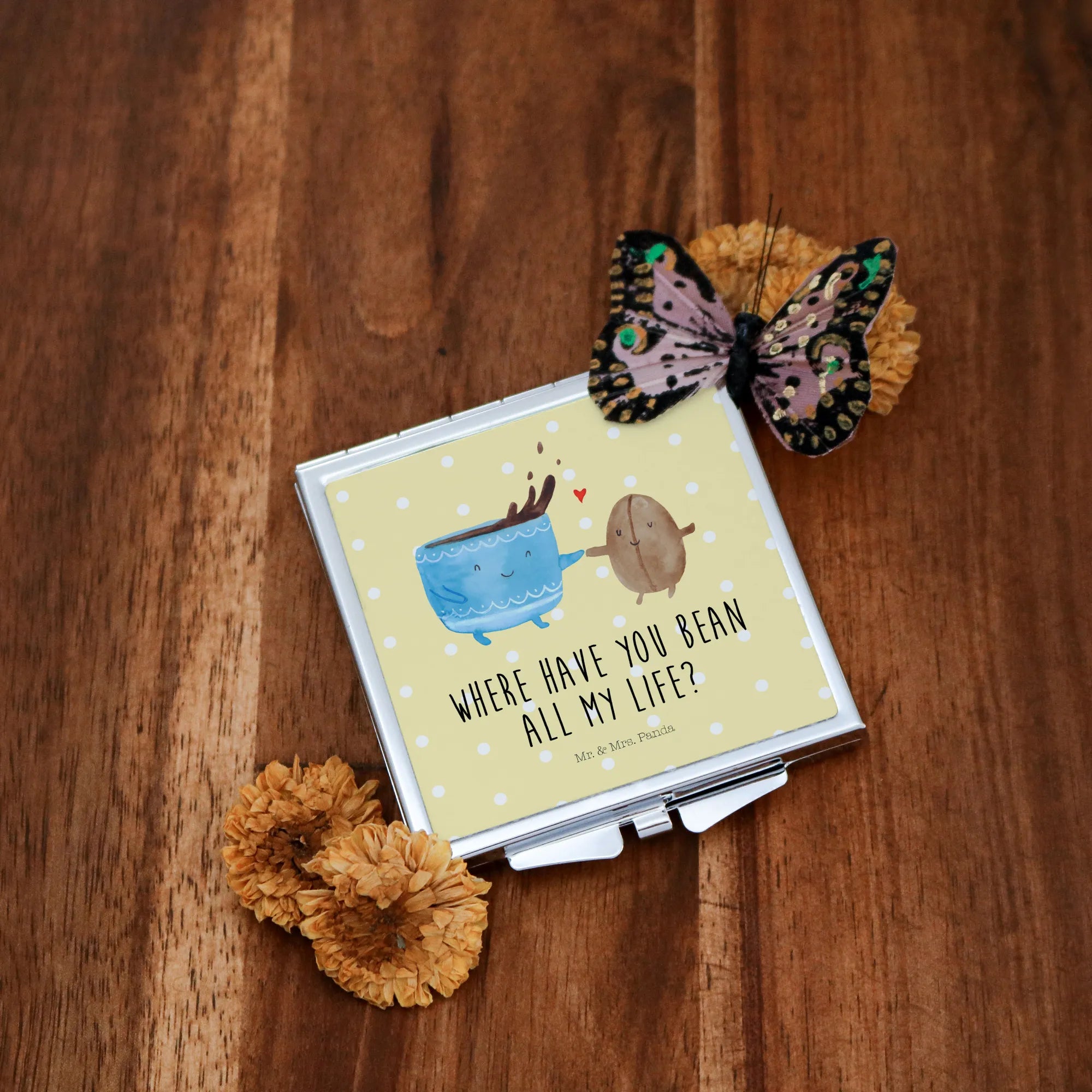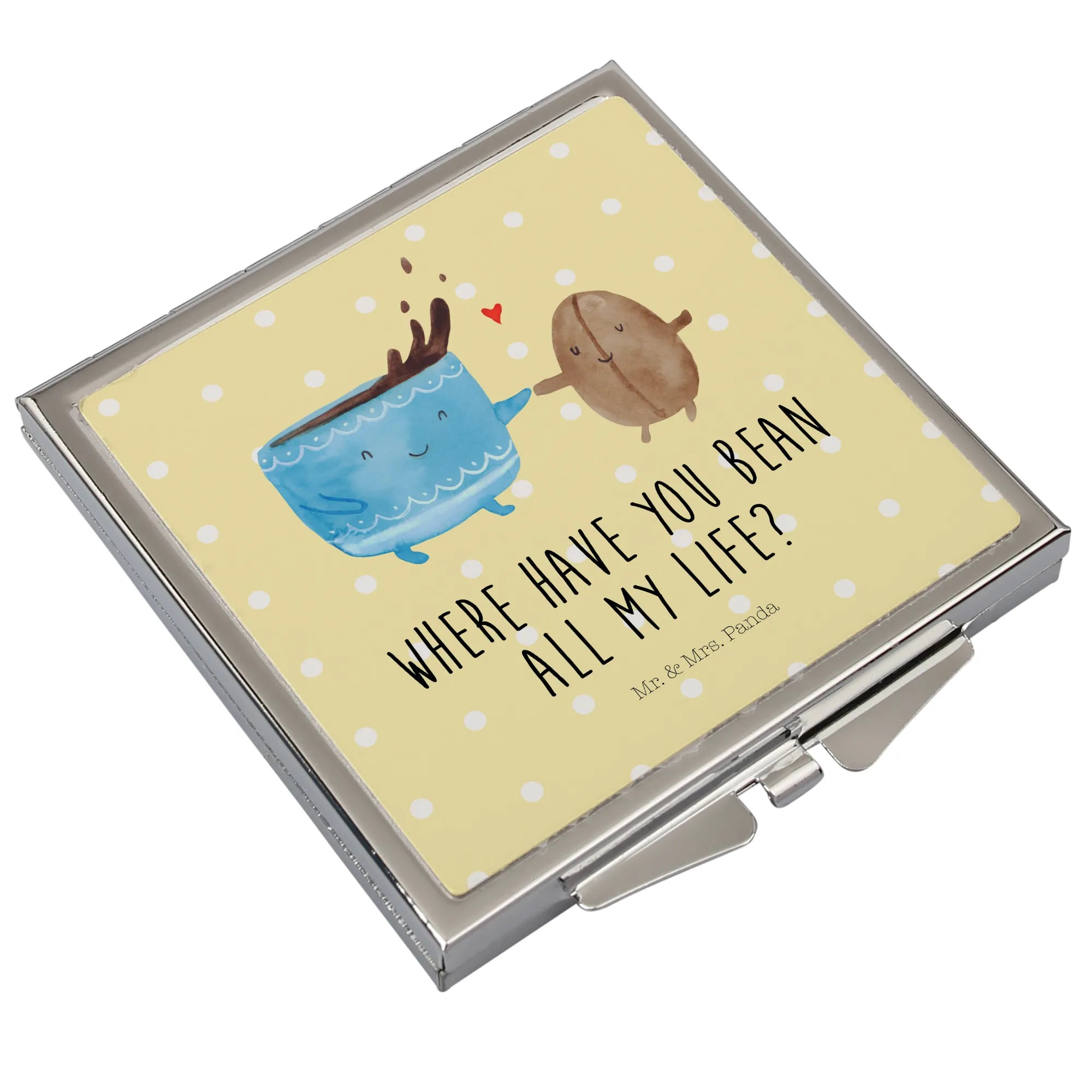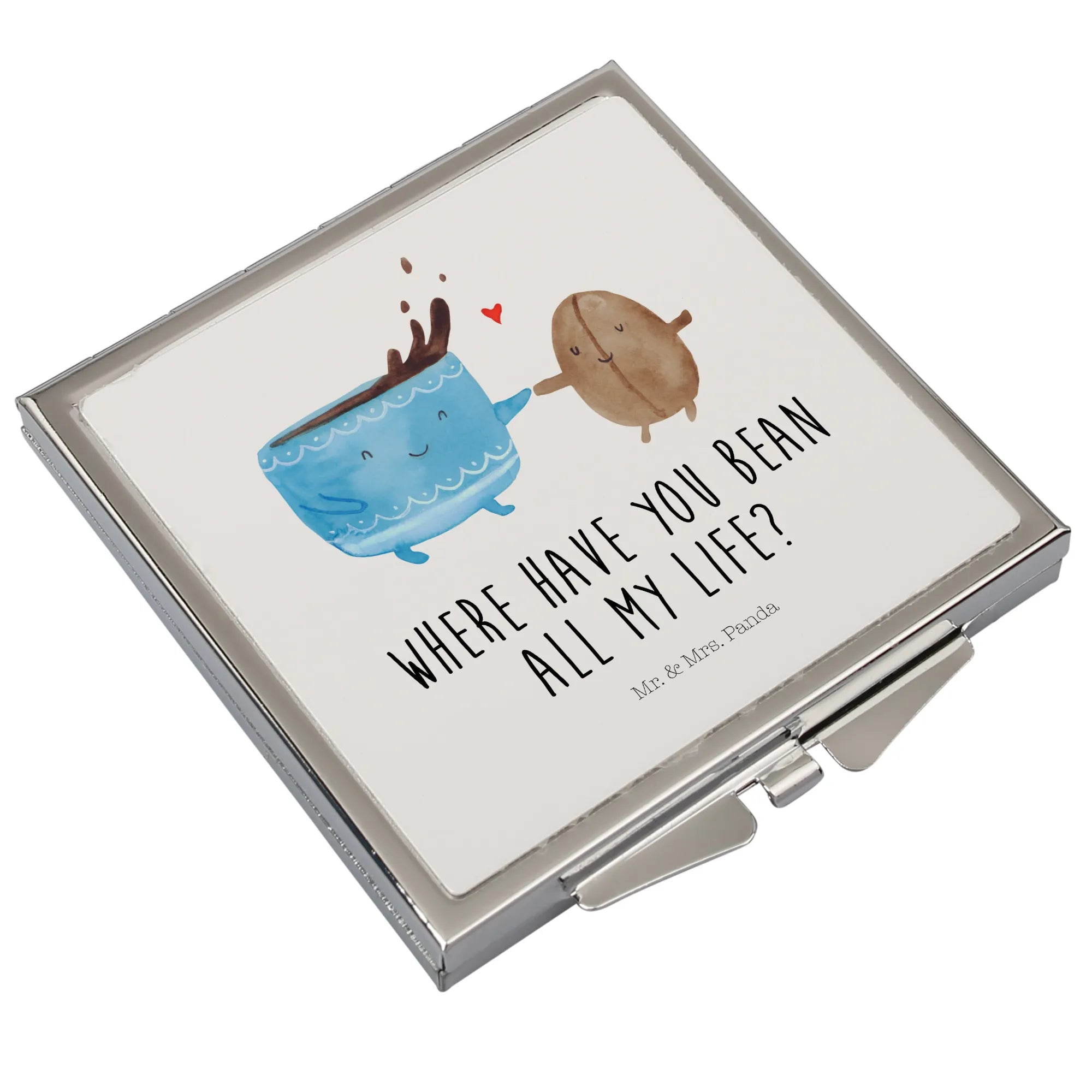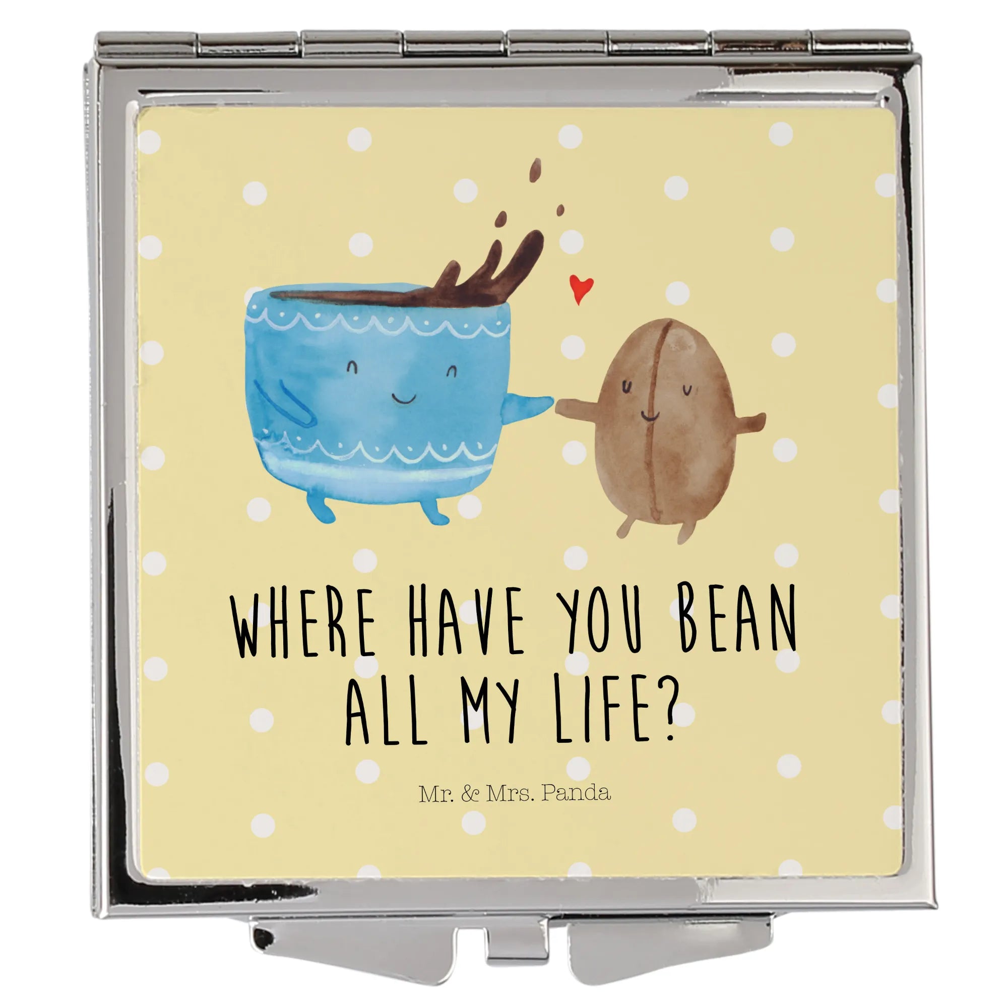 Handbag mirror Coffee Bean - with a saying - White