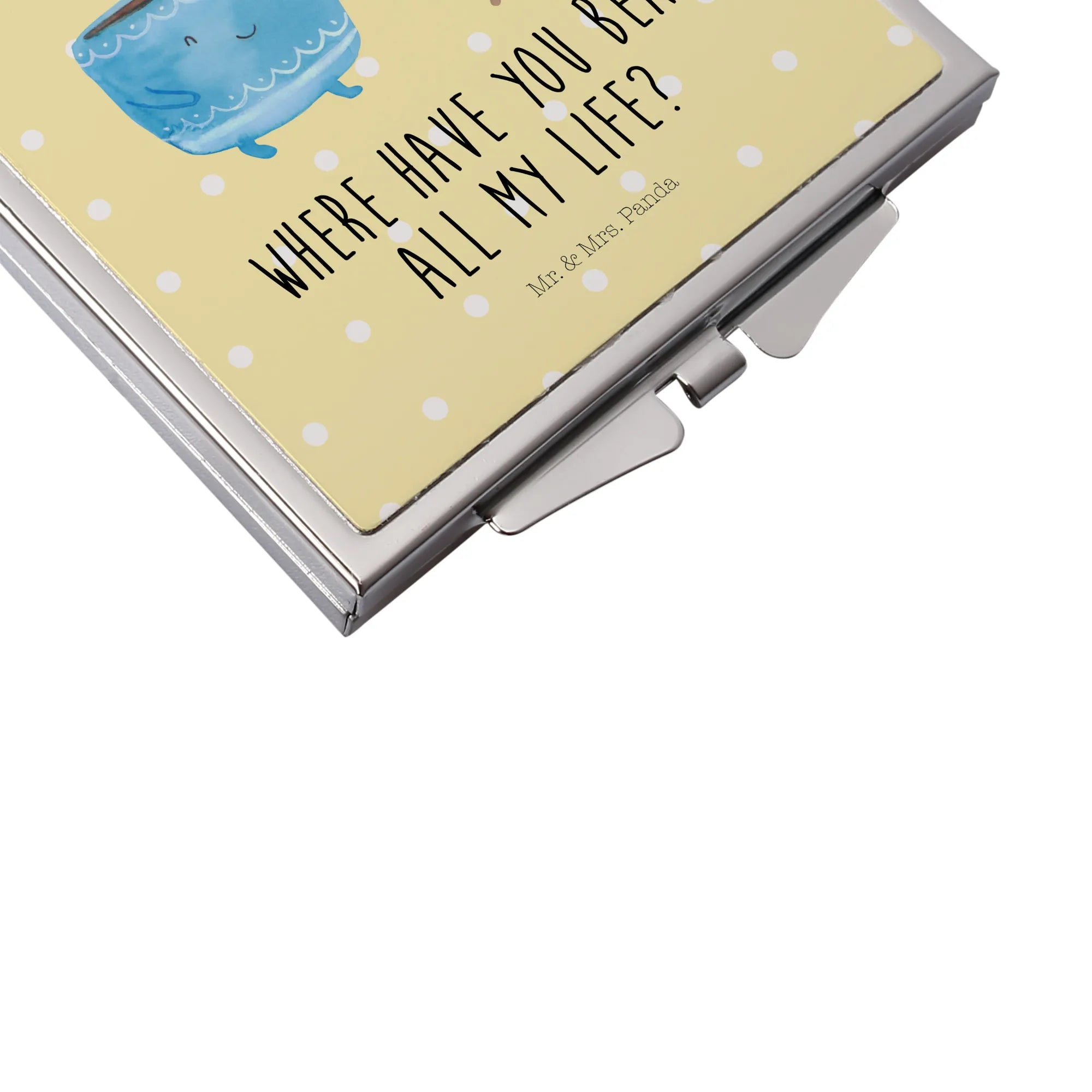 Meet the square Handbag Mirror by Mr. & Mrs. Panda - the little gem you need for everyday elegance! At 60 mm x 60 mm x 8 mm, this delightful mirror is adorned with the signature adorable designs and inspiring quotes that bring positivity to your day. Made from high-quality glass with an aluminum finish, it's built to last, while the classy silver plating on the edge elevates its overall look. The compact, square shape ensures that it slips easily into any handbag or backpack, perfect for travel or daily use. The folding closure keeps it safe and secure, so you can carry it without any worries. This mirror is not just practical; it's also a beautiful piece that makes an excellent gift for any occasion. Whether you need a quick makeup fix or a last-minute selfie check, it’s an essential accessory that adds charm to your routine. Keep it sparkling by simply wiping it down with a damp cloth!