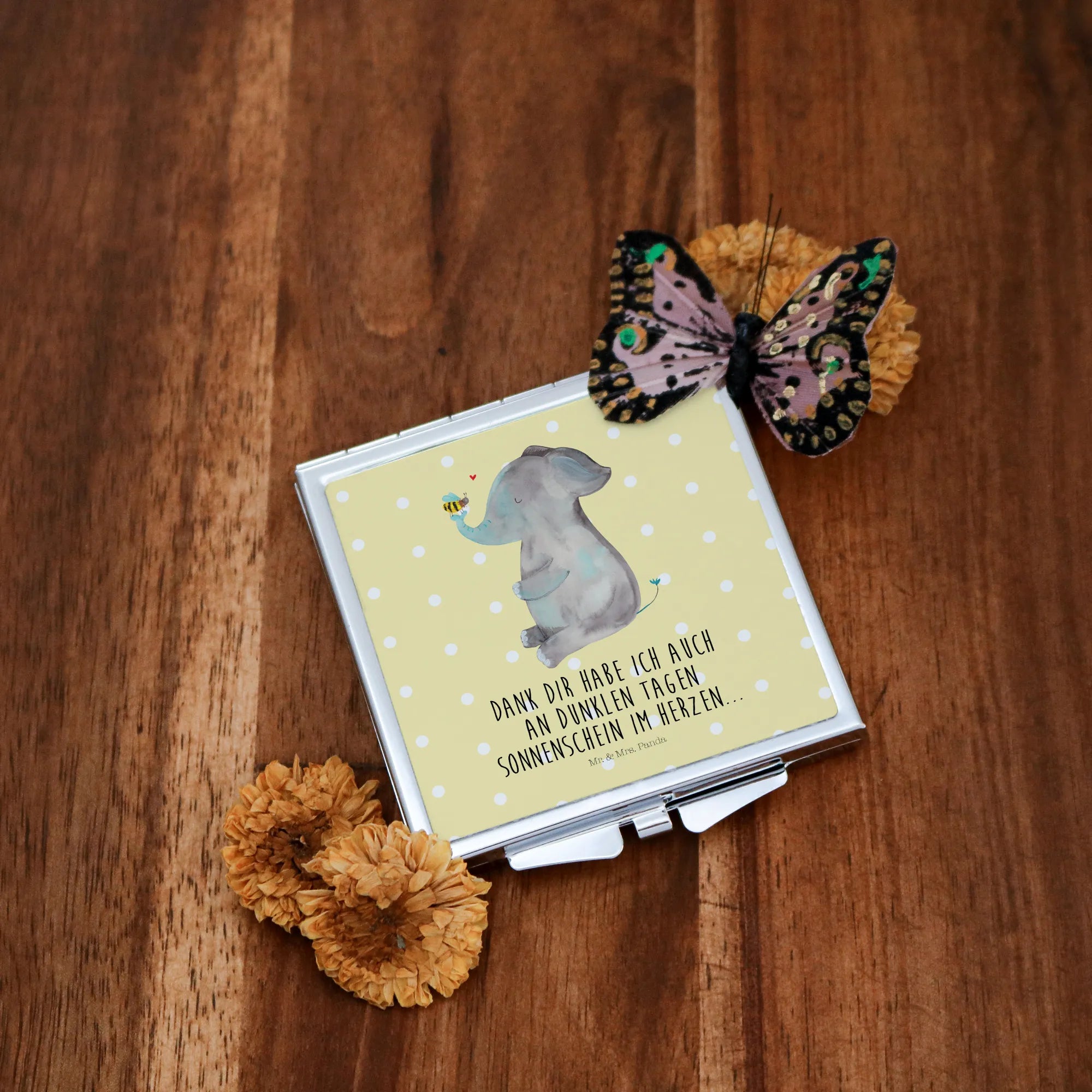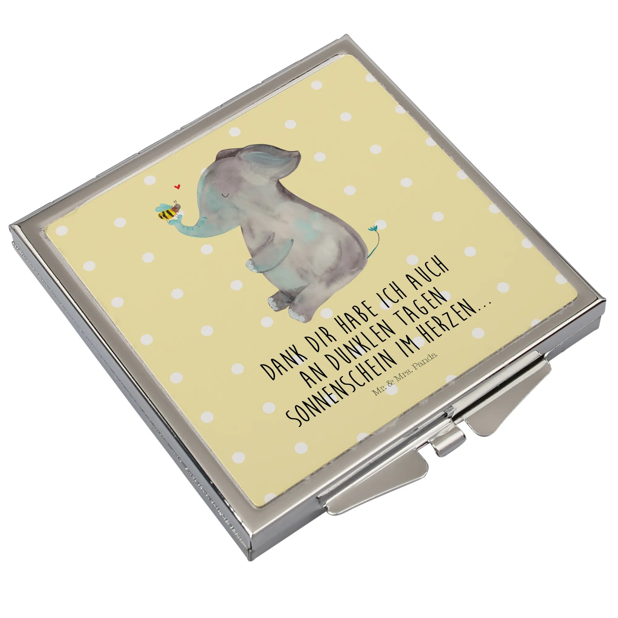 Handbag mirror elephant bee - with a saying - Yellow Pastel