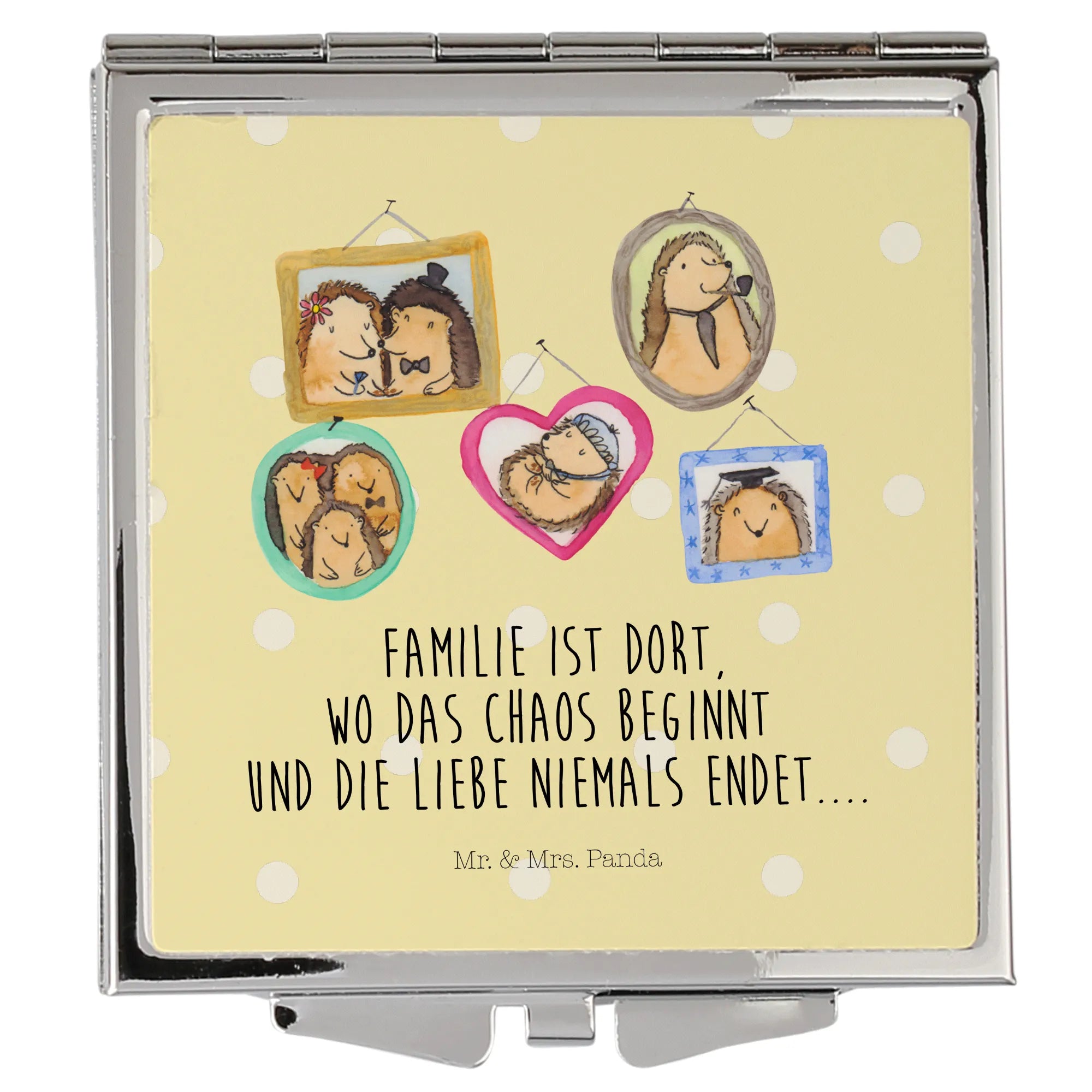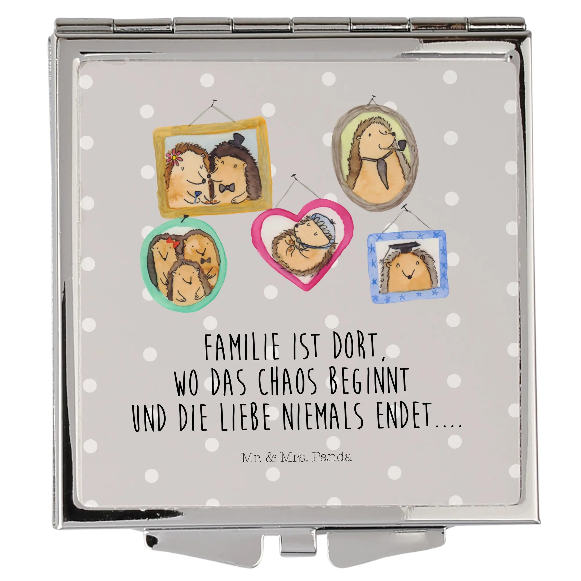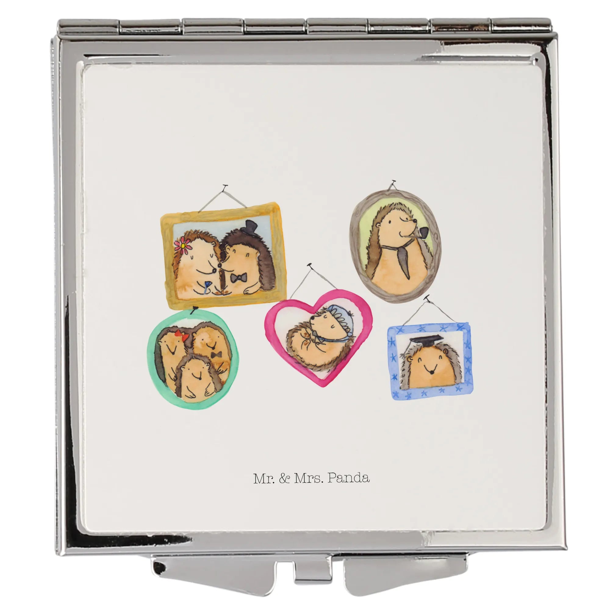 Suchst Du eine Geschenkidee zum Muttertag, Vatertag, Geburtstag oder einfach als kleines Dankeschön? Der Handtaschenspiegel mit Igel Familie ist das ideale Mitbringsel für Mama, Papa, Oma, Opa, Schwester oder Bruder. Ein hübsches, nicht personalisierbares Geschenk mit Herz.