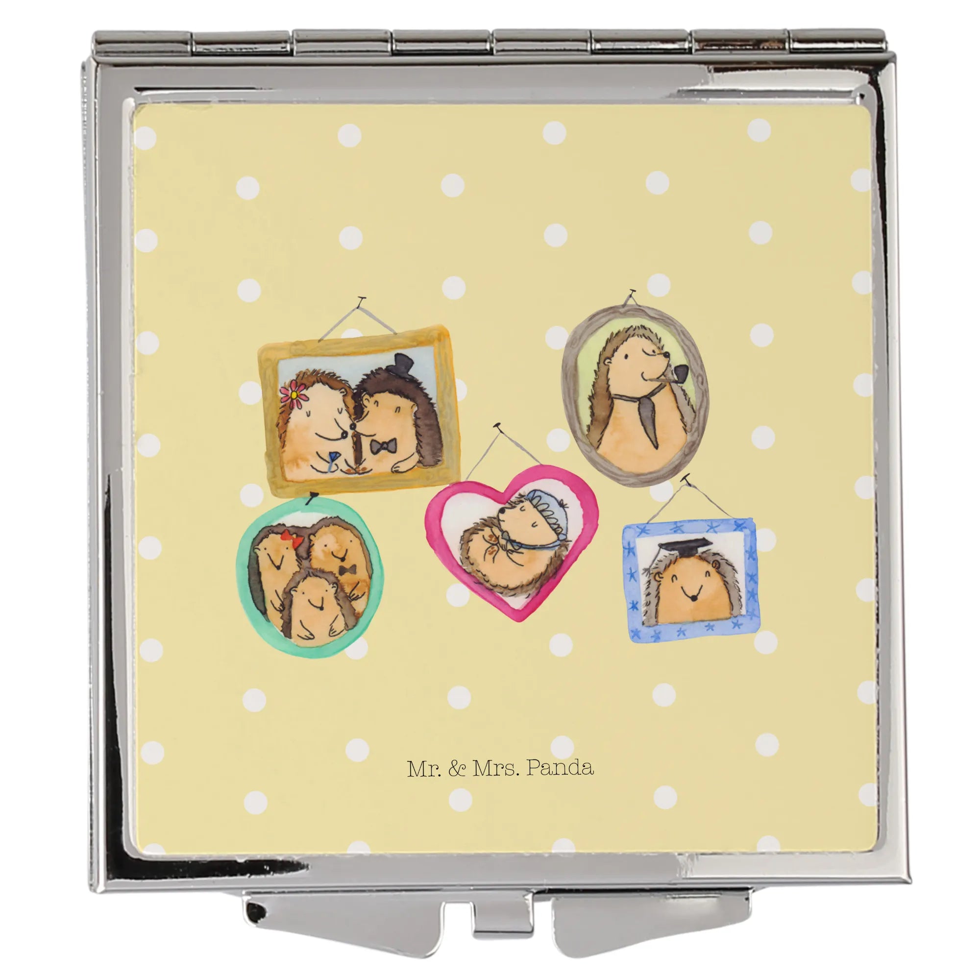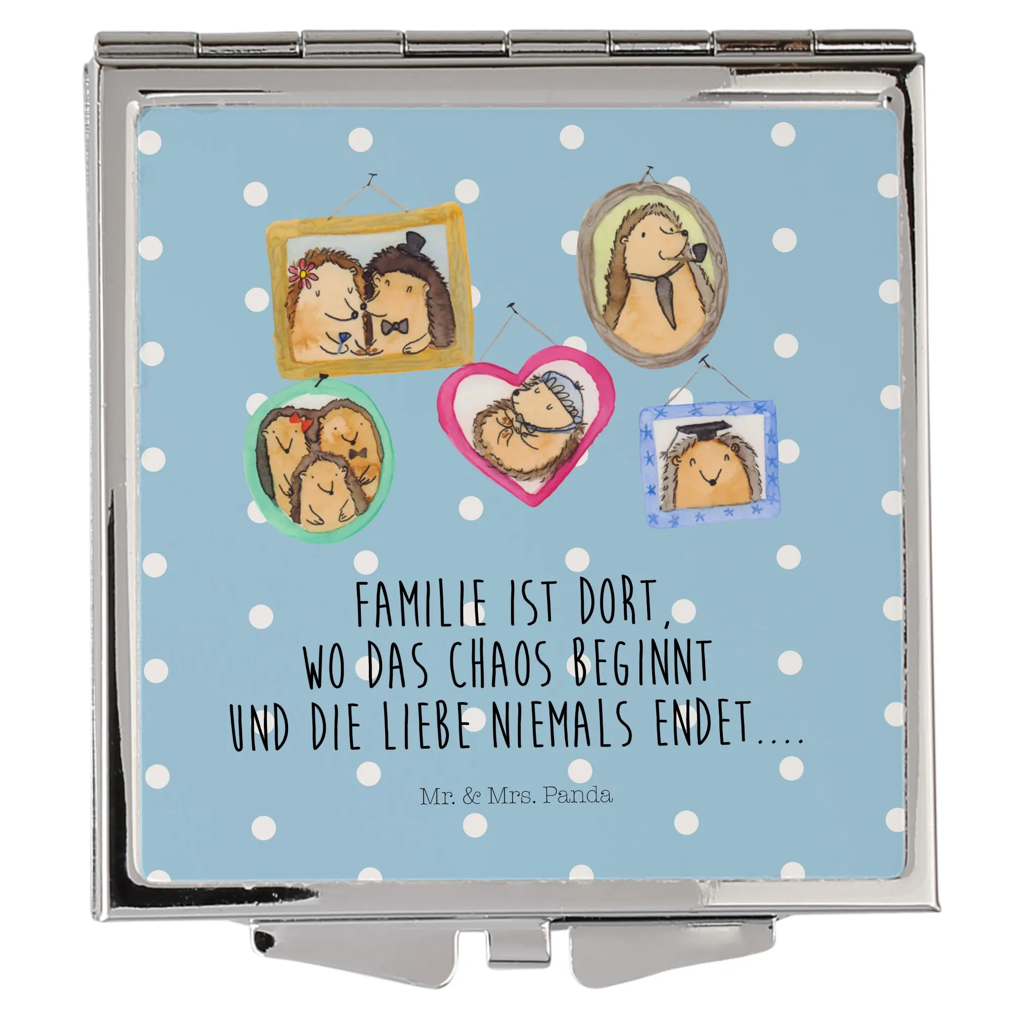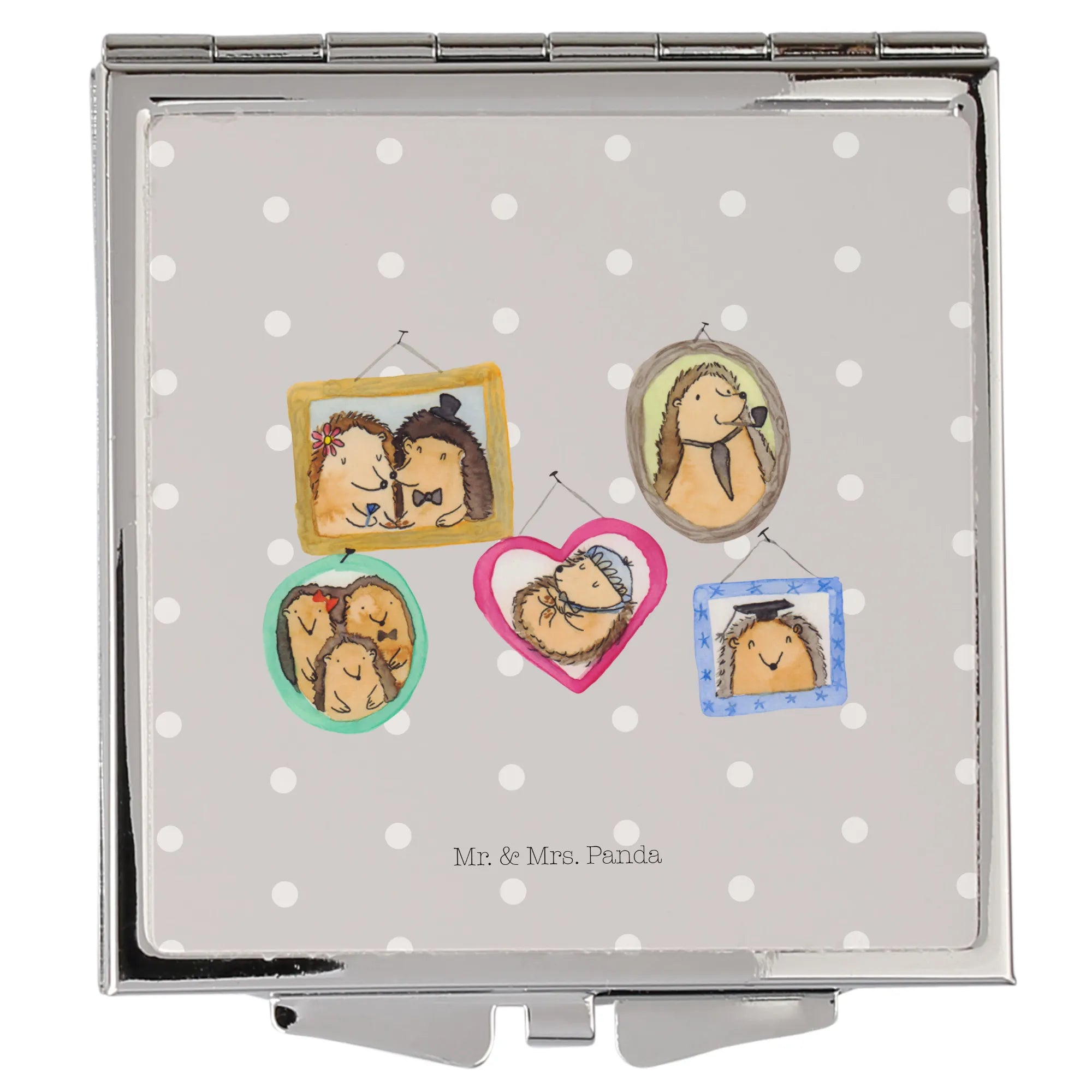 Suchst Du eine Geschenkidee zum Muttertag, Vatertag, Geburtstag oder einfach als kleines Dankeschön? Der Handtaschenspiegel mit Igel Familie ist das ideale Mitbringsel für Mama, Papa, Oma, Opa, Schwester oder Bruder. Ein hübsches, nicht personalisierbares Geschenk mit Herz.