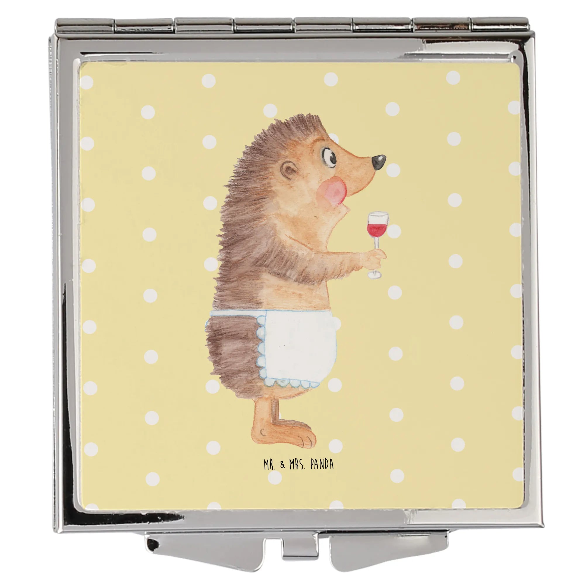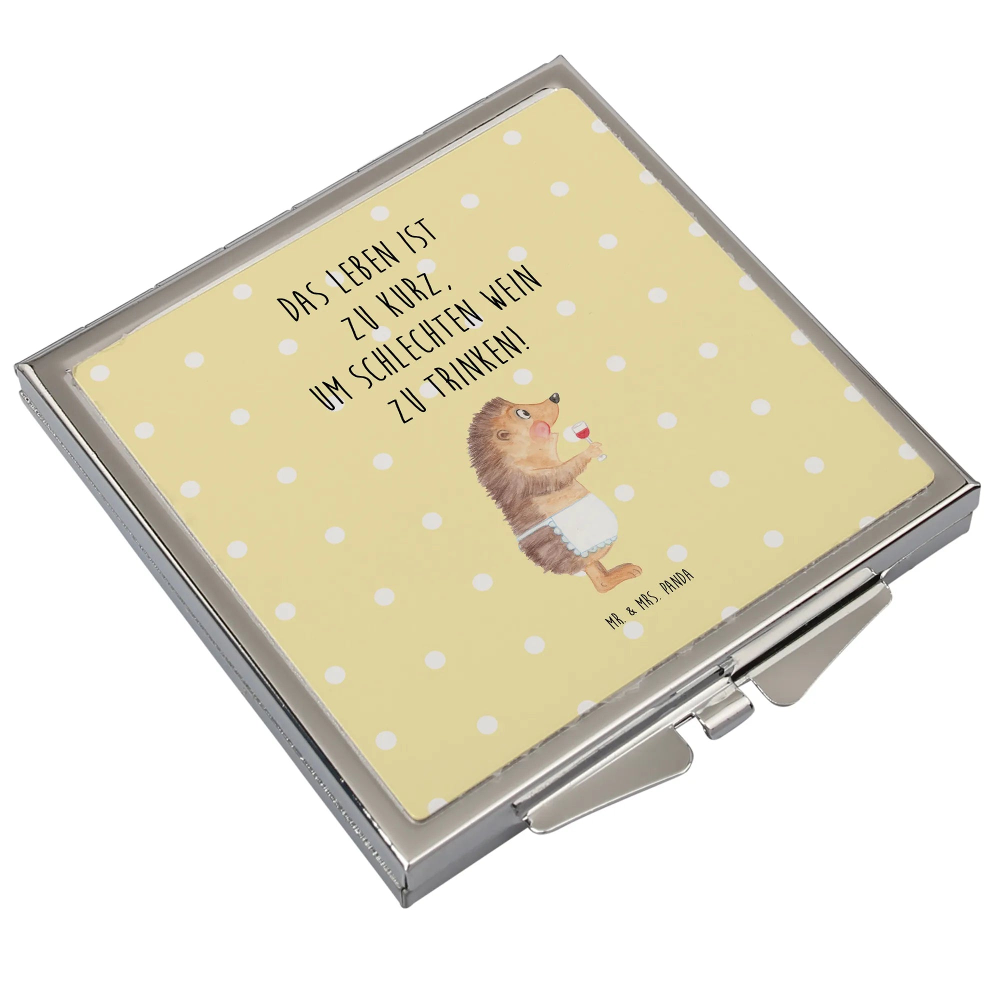 Handbag mirror Hedgehog wine - with a saying - Pastel Yellow