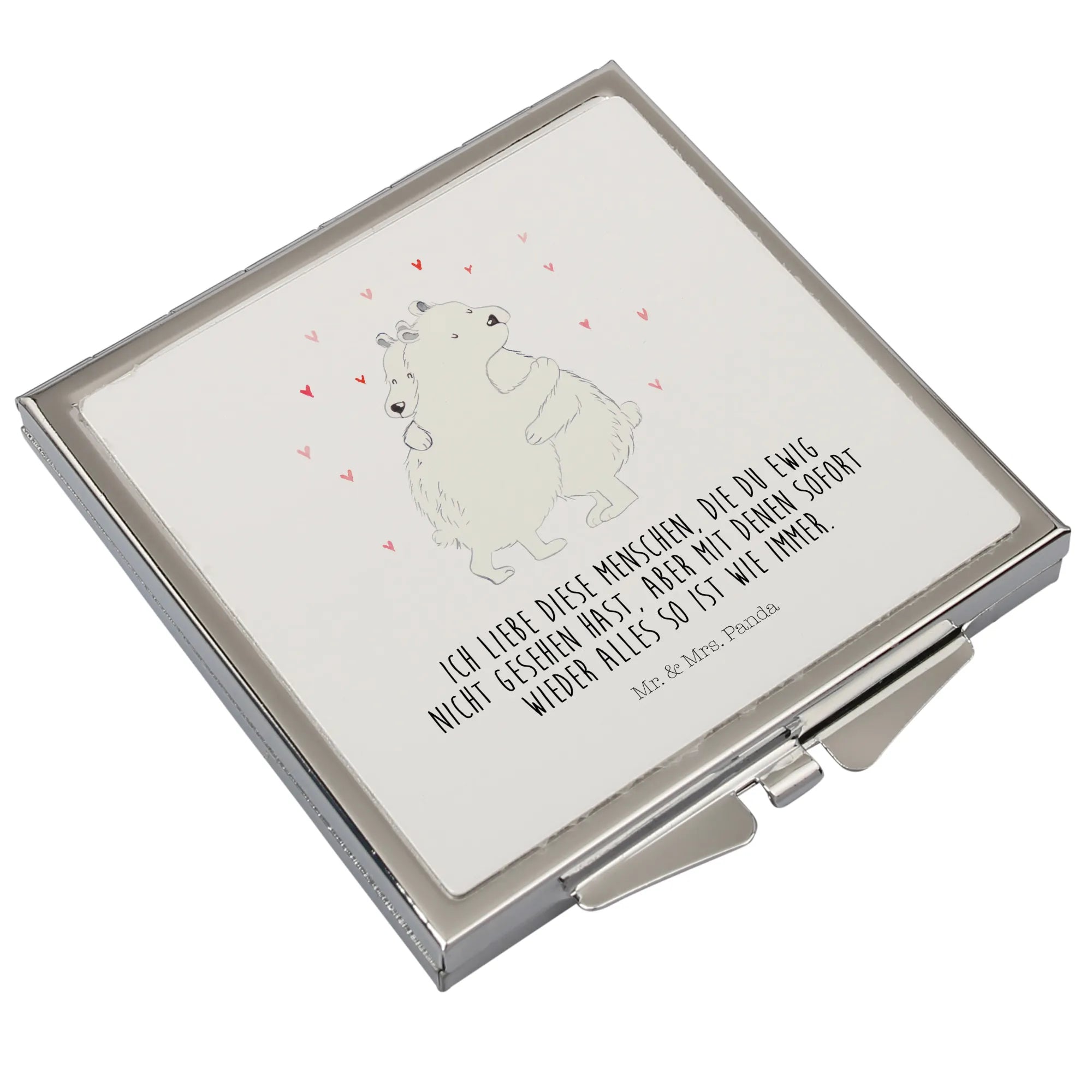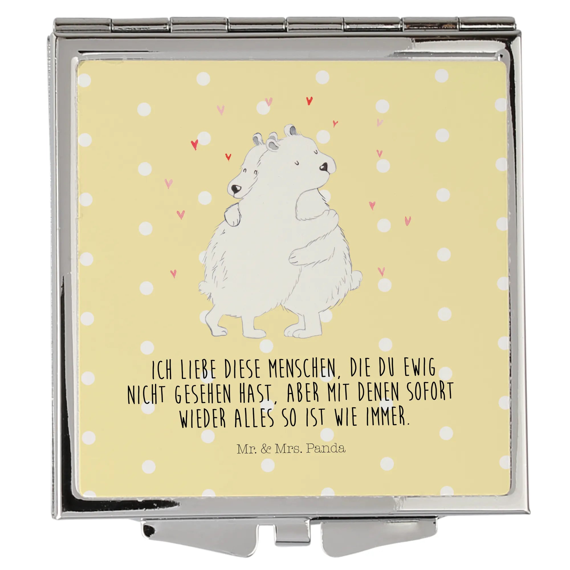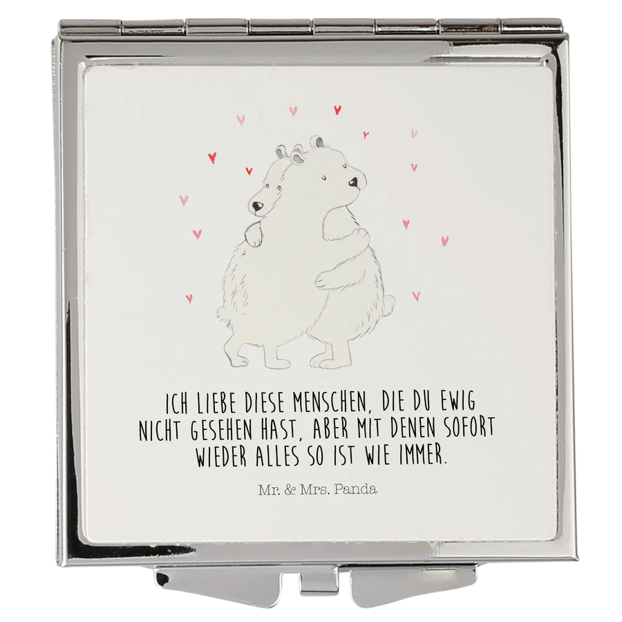 Step into elegance with the enchanting Handbag Mirror from Mr. & Mrs. Panda! This square mirror, sized 60 mm x 60 mm x 8 mm, features delightful motifs and cheerful quotes that elevate any moment. Crafted from top-quality glass with an aluminum metal frame, this durable yet graceful piece is adorned with a shiny silver plating for a classy finish. Its compact, square design means it easily fits into your handbag or backpack, making it the ideal accessory for your on-the-go lifestyle. The secure folding closure prevents scratches and damages, keeping your mirror pristine. Whether it's for a quick touch-up, a spontaneous selfie, or as a thoughtful gift, this mirror will surely bring joy to every recipient. With just a simple wipe using a damp cloth, it remains sparkling clean for all your beauty needs. Bring the Mr. & Mrs. Panda charm into your daily routine with this lovely handbag mirror!