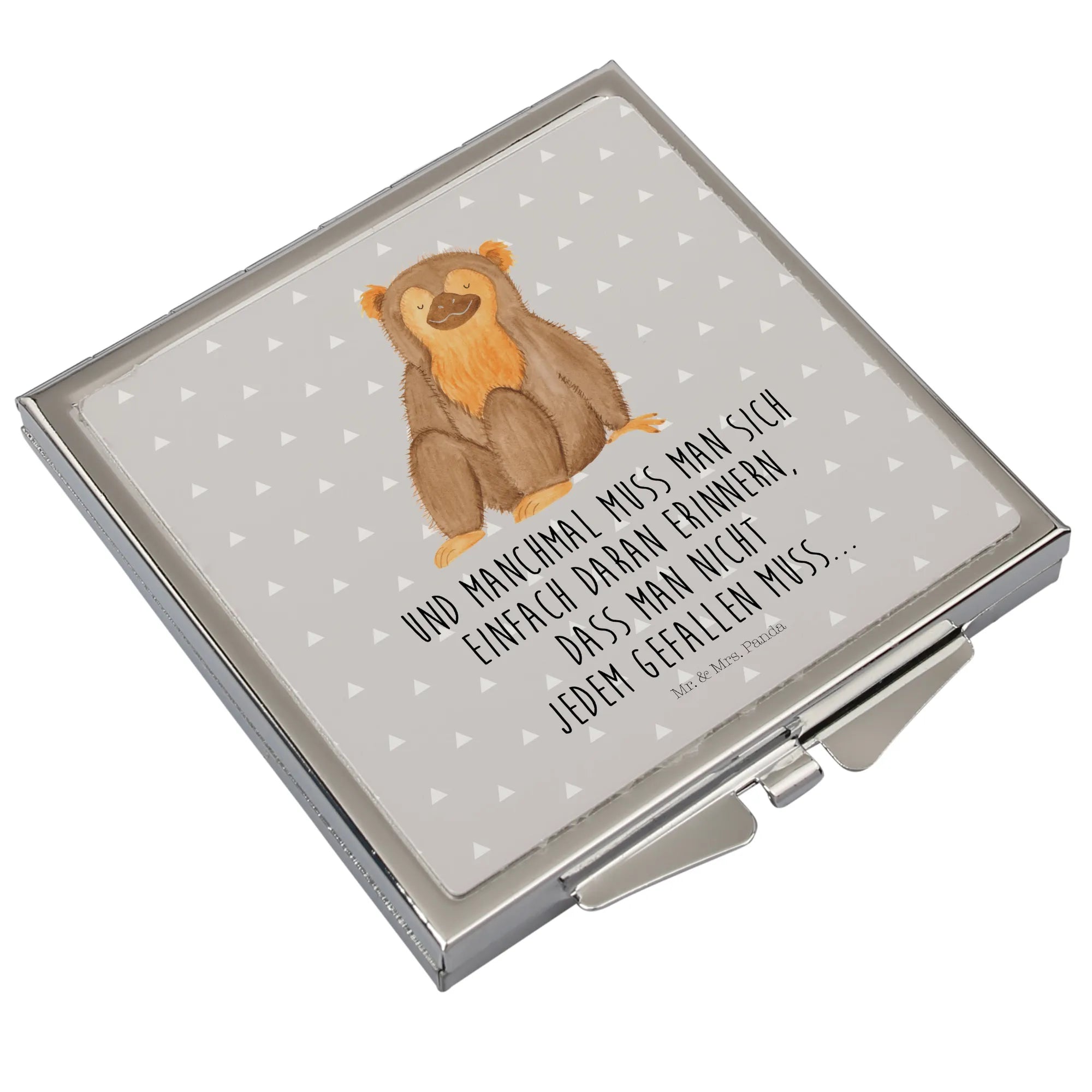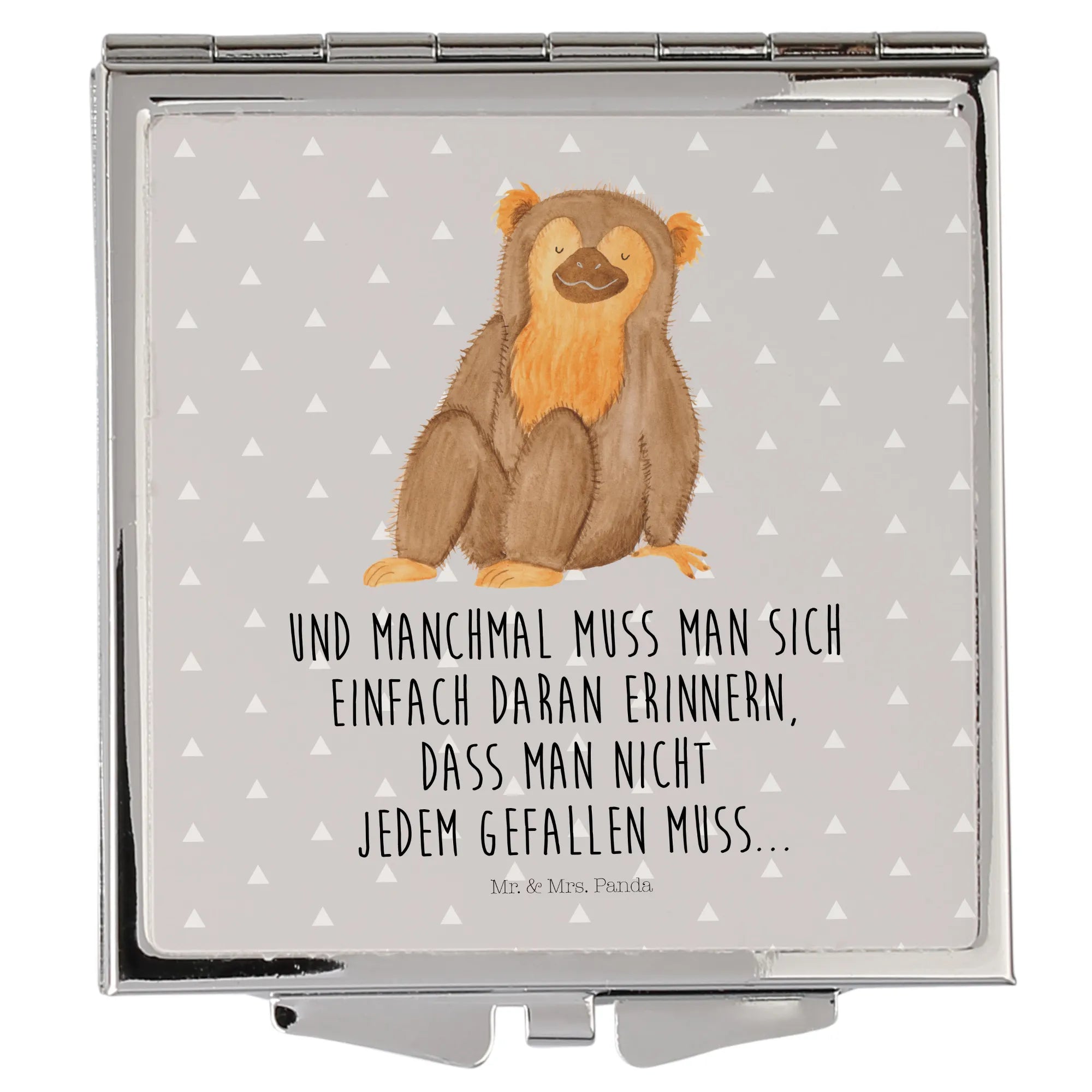 Handbag mirror Monkey - with a saying - Grey Pastel