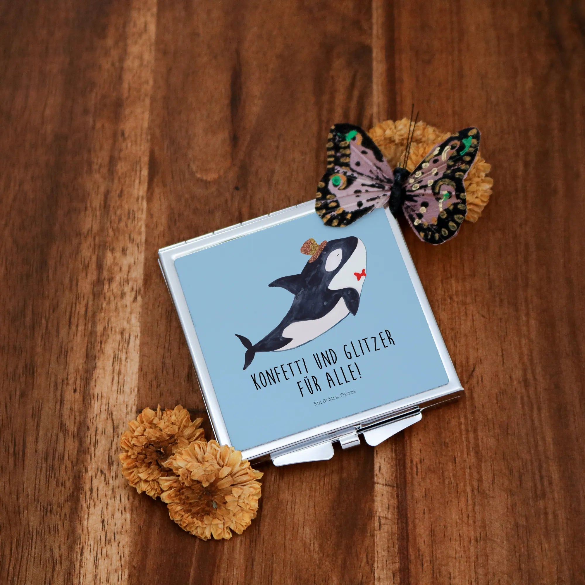 Our orca is here to bring a touch of playful elegance to your celebrations. With its glossy black and white design, accented by a vibrant cylinder hat embellished with flowers, this motif radiates charm and joy. Don't forget the adorable little red fish adding an extra hint of fun! 'Konfetti und Glitzer für alle!' perfectly captures the spirit of joy and celebration, making it ideal for birthdays or festive gatherings. It's all about letting loose, enjoying those confetti moments, and igniting a spirit of togetherness.