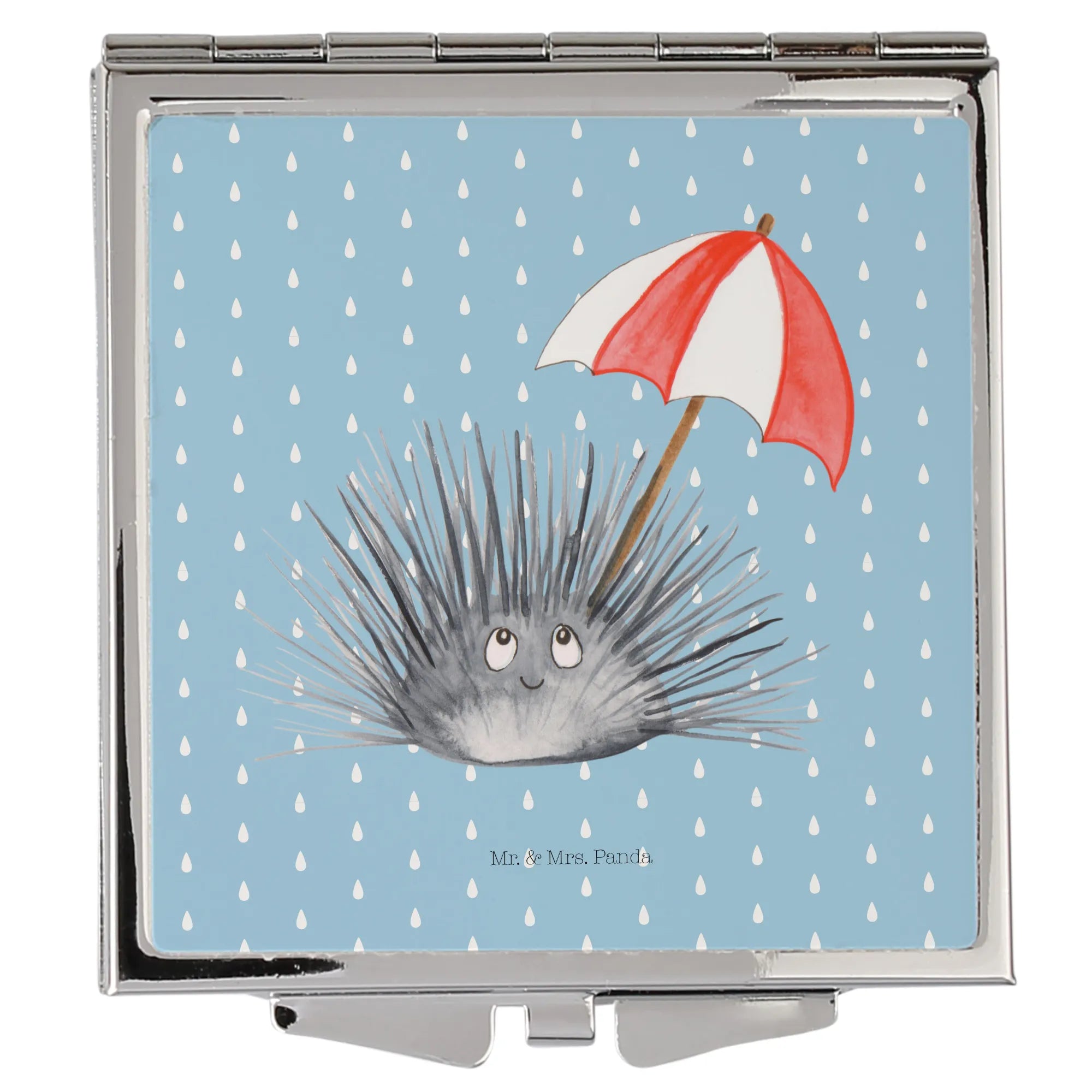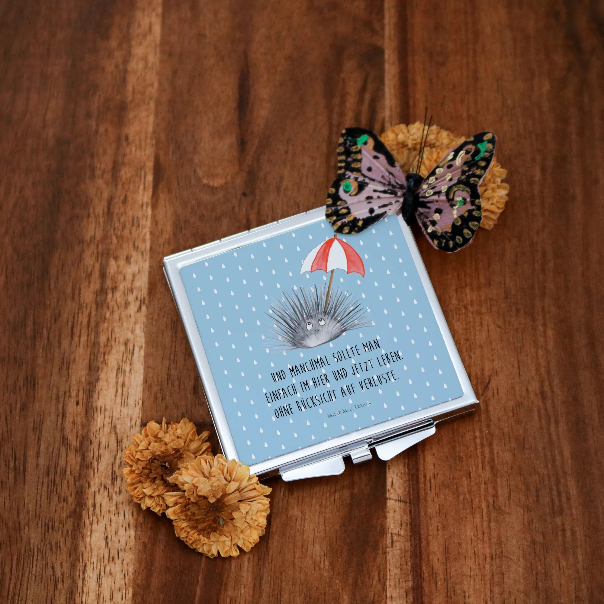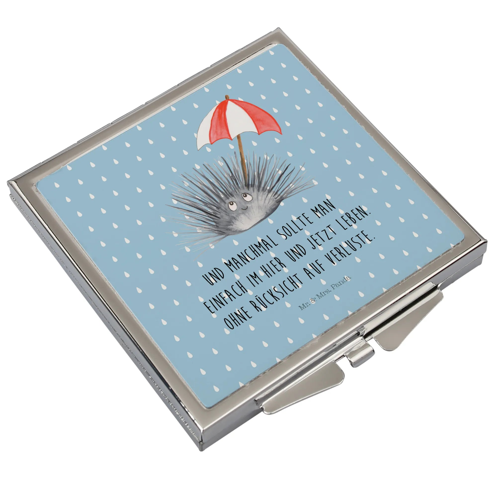 Handbag mirror Sea urchins - with saying - Pastel Blue