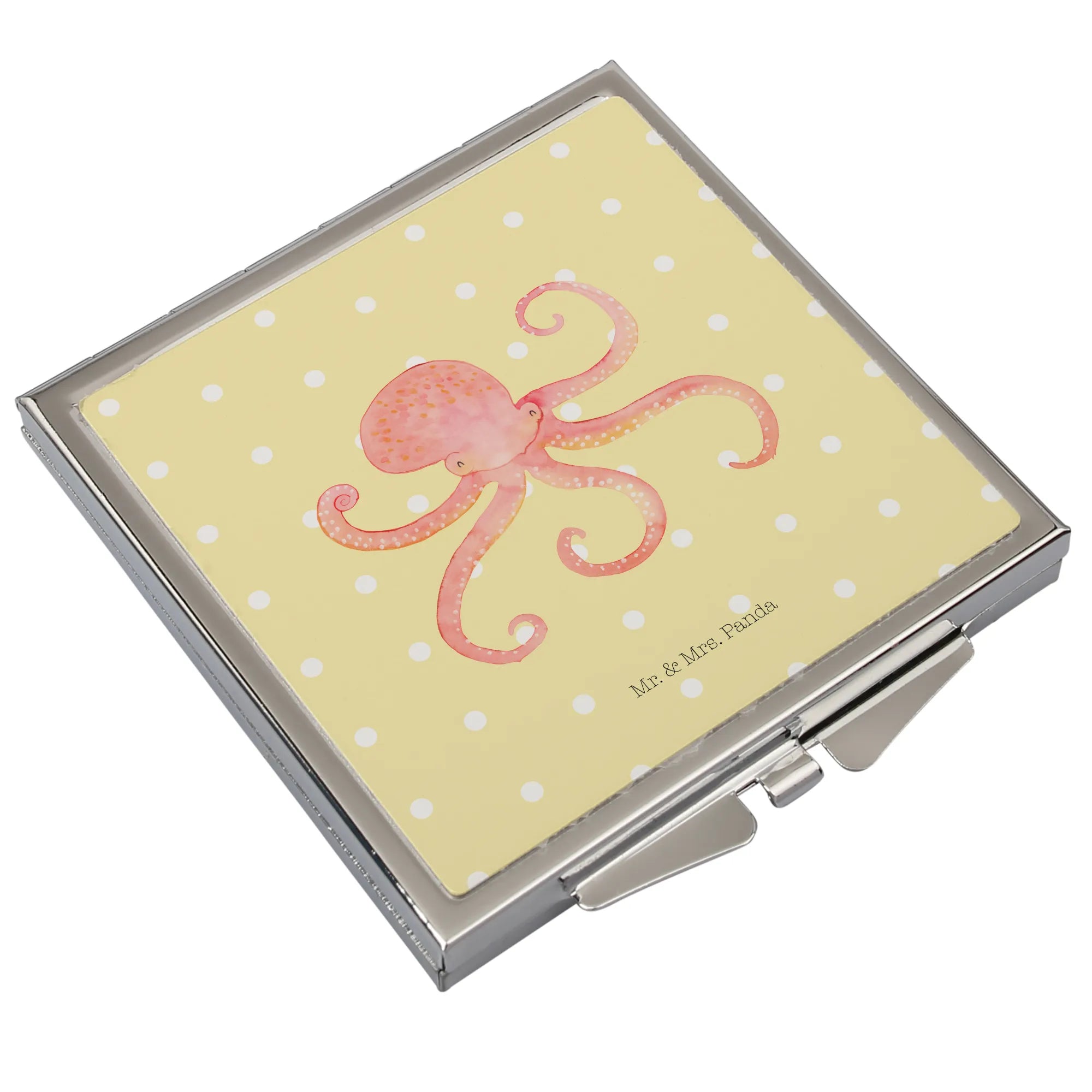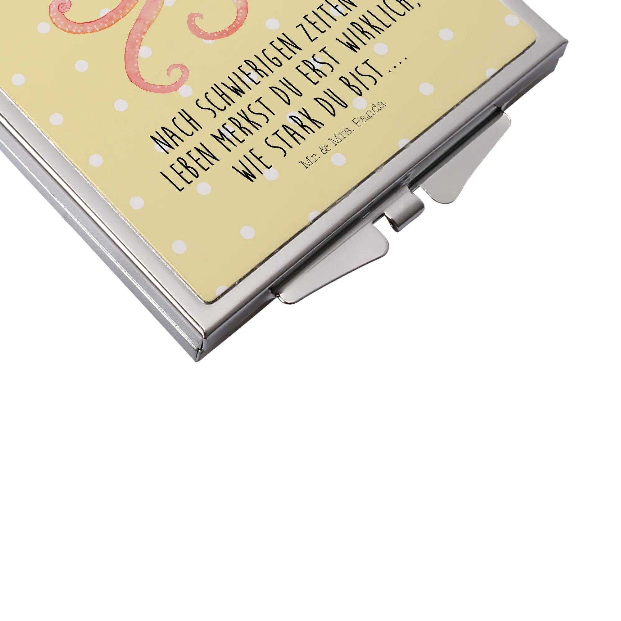 Step into elegance with the enchanting Handbag Mirror from Mr. & Mrs. Panda! This square mirror, sized 60 mm x 60 mm x 8 mm, features delightful motifs and cheerful quotes that elevate any moment. Crafted from top-quality glass with an aluminum metal frame, this durable yet graceful piece is adorned with a shiny silver plating for a classy finish. Its compact, square design means it easily fits into your handbag or backpack, making it the ideal accessory for your on-the-go lifestyle. The secure folding closure prevents scratches and damages, keeping your mirror pristine. Whether it's for a quick touch-up, a spontaneous selfie, or as a thoughtful gift, this mirror will surely bring joy to every recipient. With just a simple wipe using a damp cloth, it remains sparkling clean for all your beauty needs. Bring the Mr. & Mrs. Panda charm into your daily routine with this lovely handbag mirror!