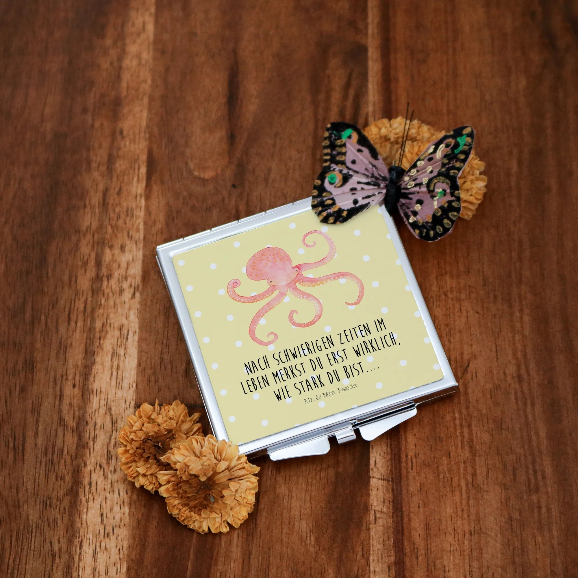 Handbag mirror Squid - with saying - White