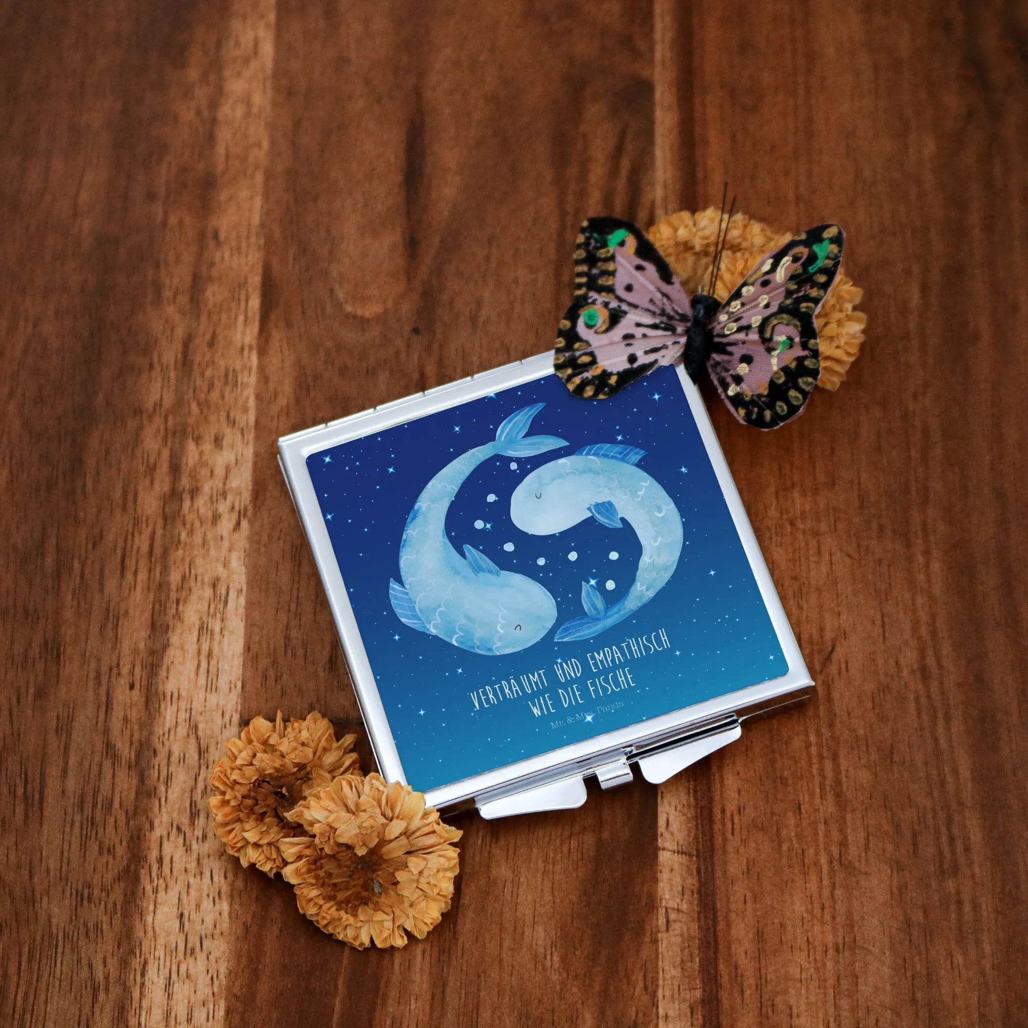 Handbag mirror Star sign fish - with a saying - Sternenhimmel Blau
