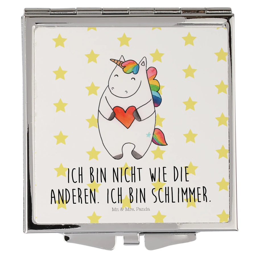 Handbag mirror unicorn Heart - with saying - White
