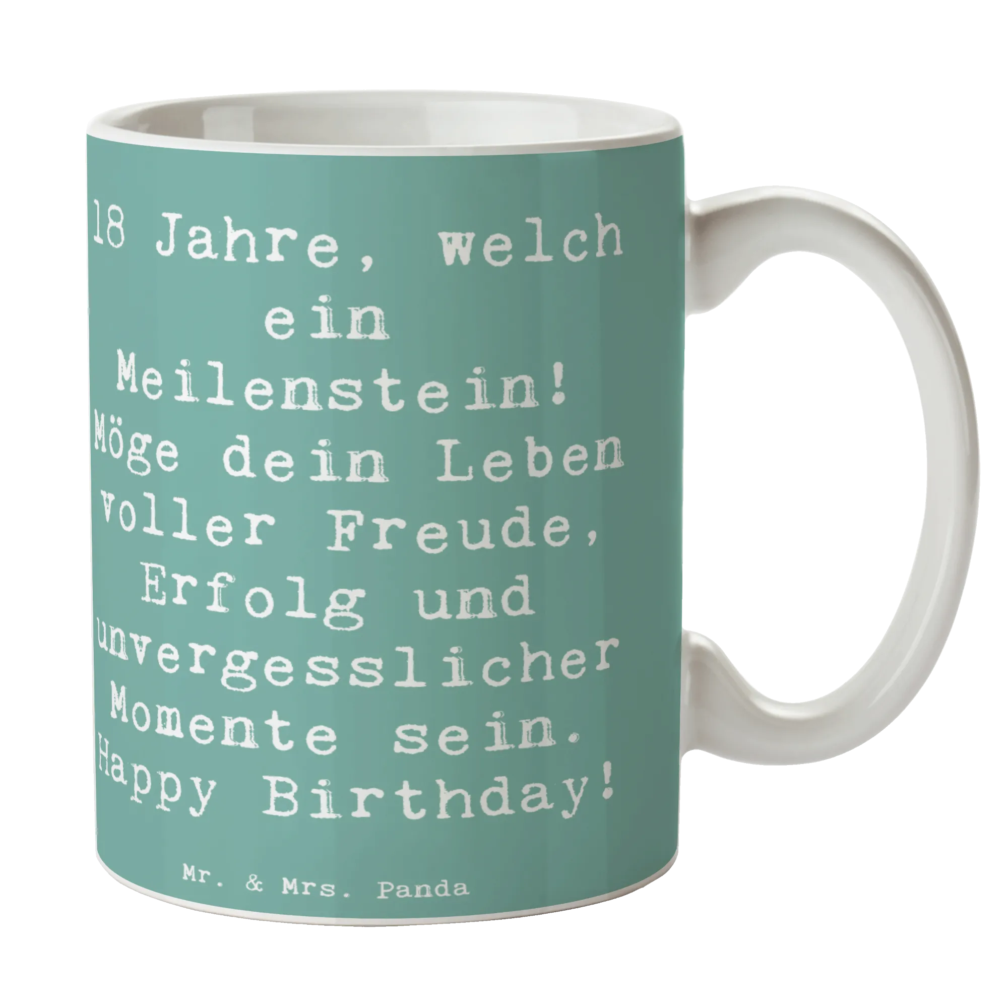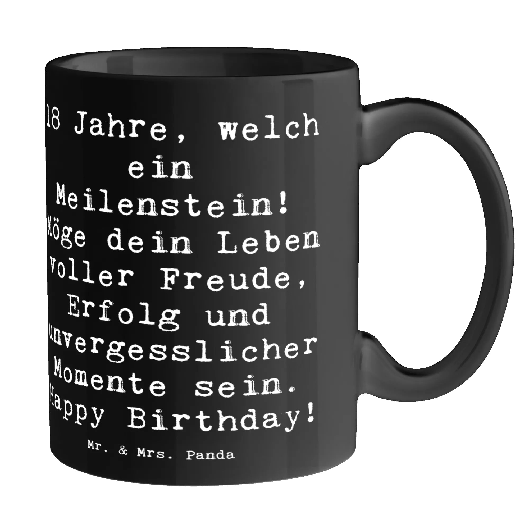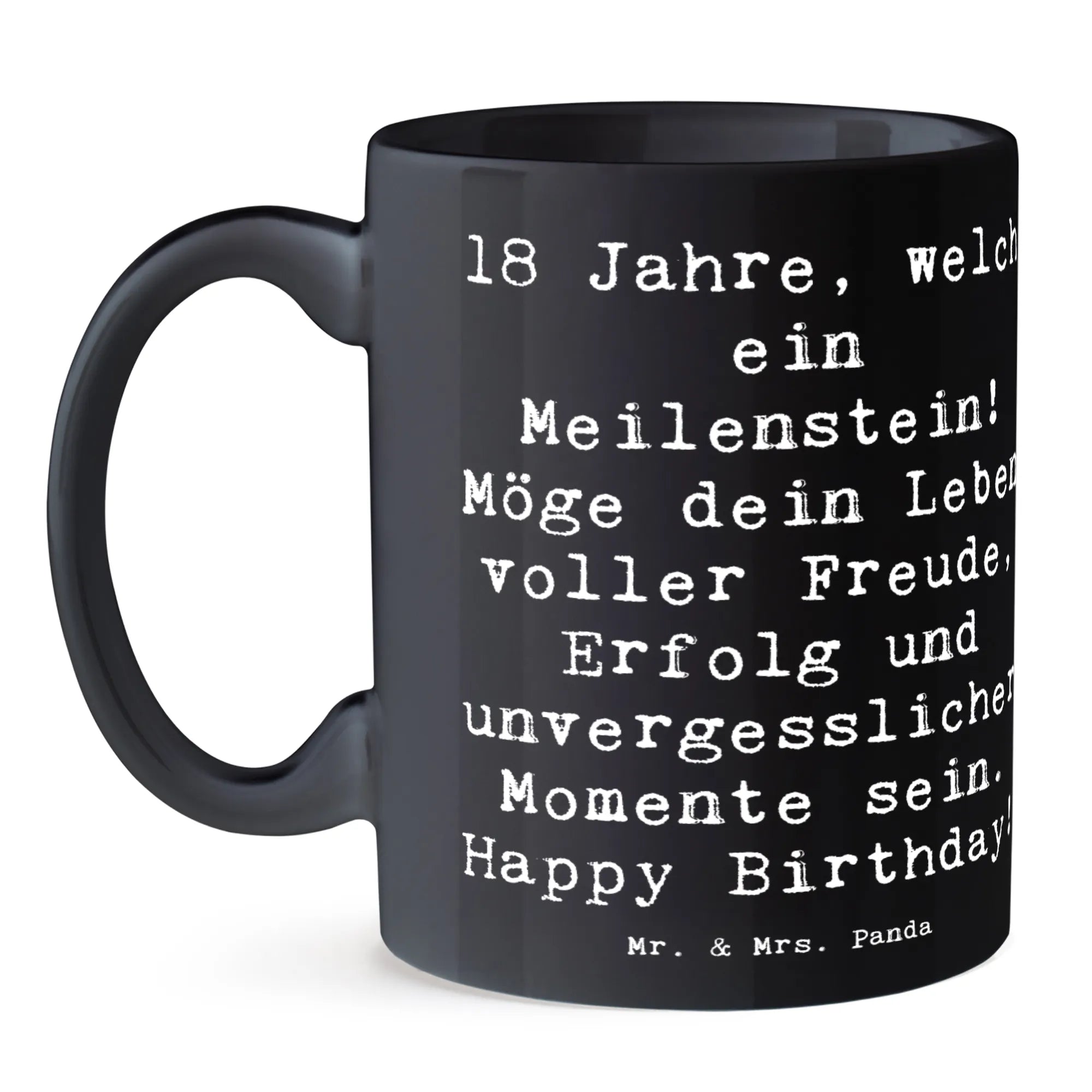 Mug Saying 18 Jahre, welch ein Meilenstein! Möge dein Leben voller Freude, Erfolg und unvergesslicher Momente sein. Happy Birthday! - Black