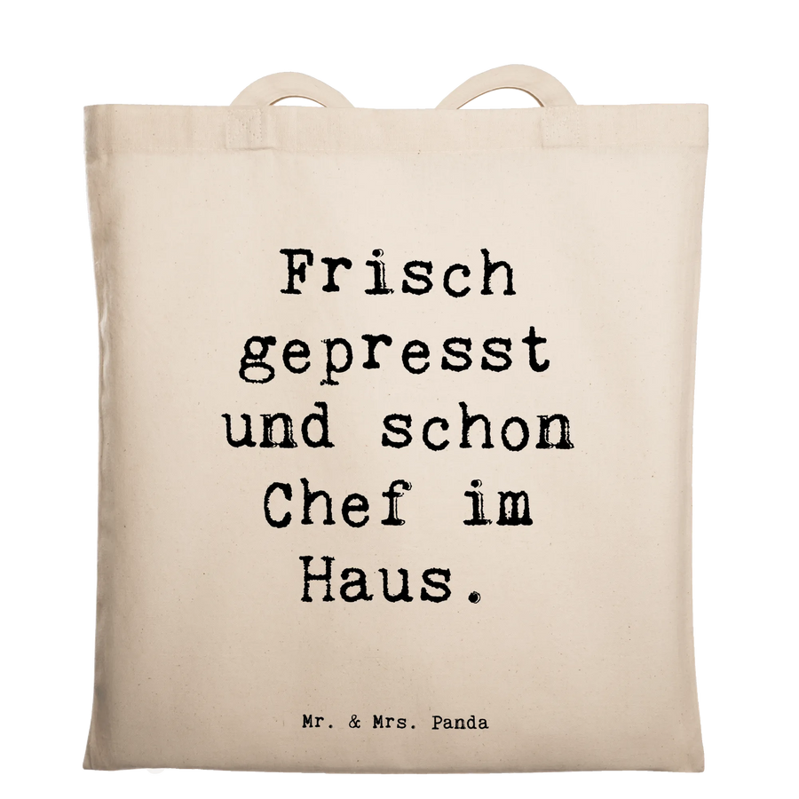 Tote bag Saying Frisch gepresst und schon Chef im Haus. – Mr. & Mrs. Panda
