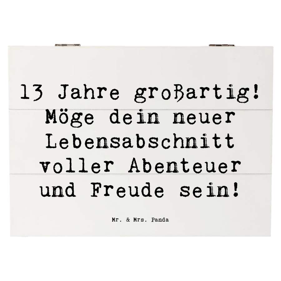 Wooden chest Saying 13 Jahre großartig! Möge dein neuer Lebensabschnitt voller Abenteuer und Freude sein! - 25 x 18 cm - White