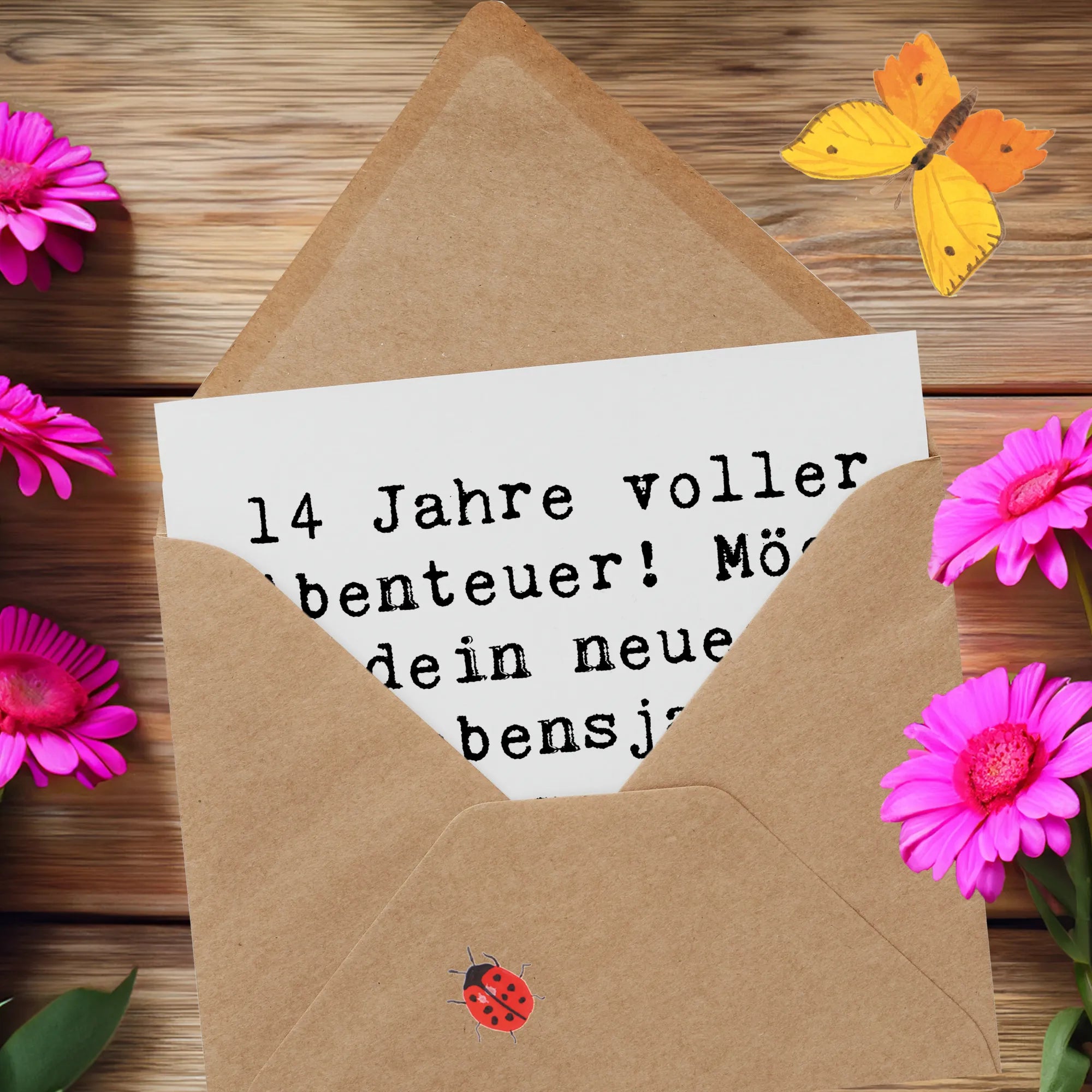 Deluxe Card Saying 14 Jahre voller Abenteuer! Möge dein neues Lebensja – Mr. & Mrs. Panda