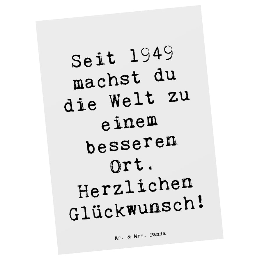 Postcard Saying Seit 1949 machst du die Welt zu einem besseren Ort. Herzlichen Glückwunsch! - White