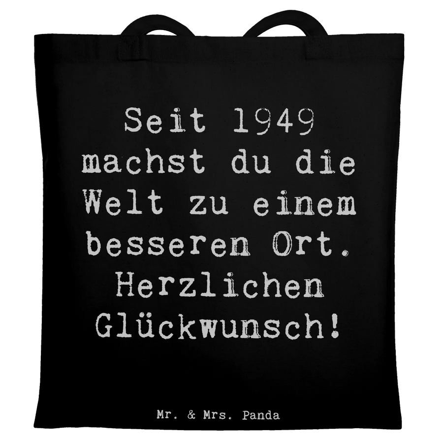 Tote bag Saying Seit 1949 machst du die Welt zu einem besseren Ort. Herzlichen Glückwunsch! - Black