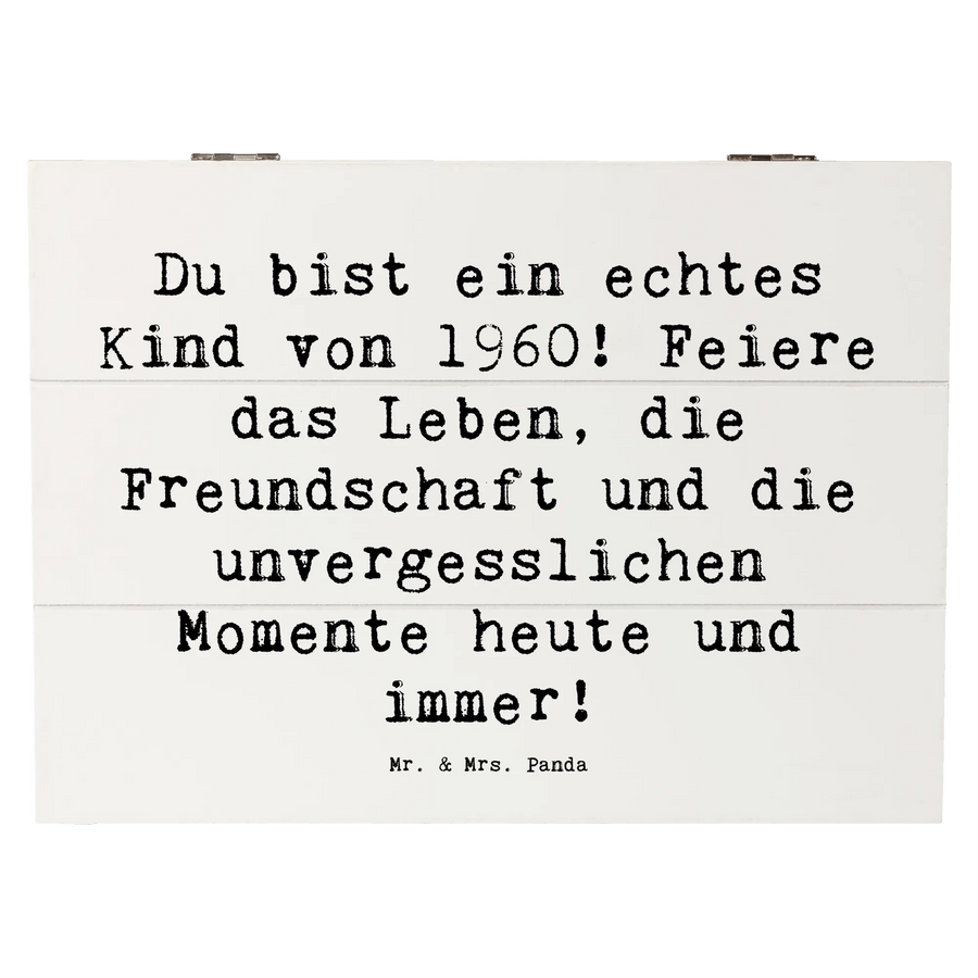 Wooden chest Saying Du bist ein echtes Kind von 1960! Feiere das Leben, die Freundschaft und die unvergesslichen Momente heute und immer! - 25 x 18 cm - White