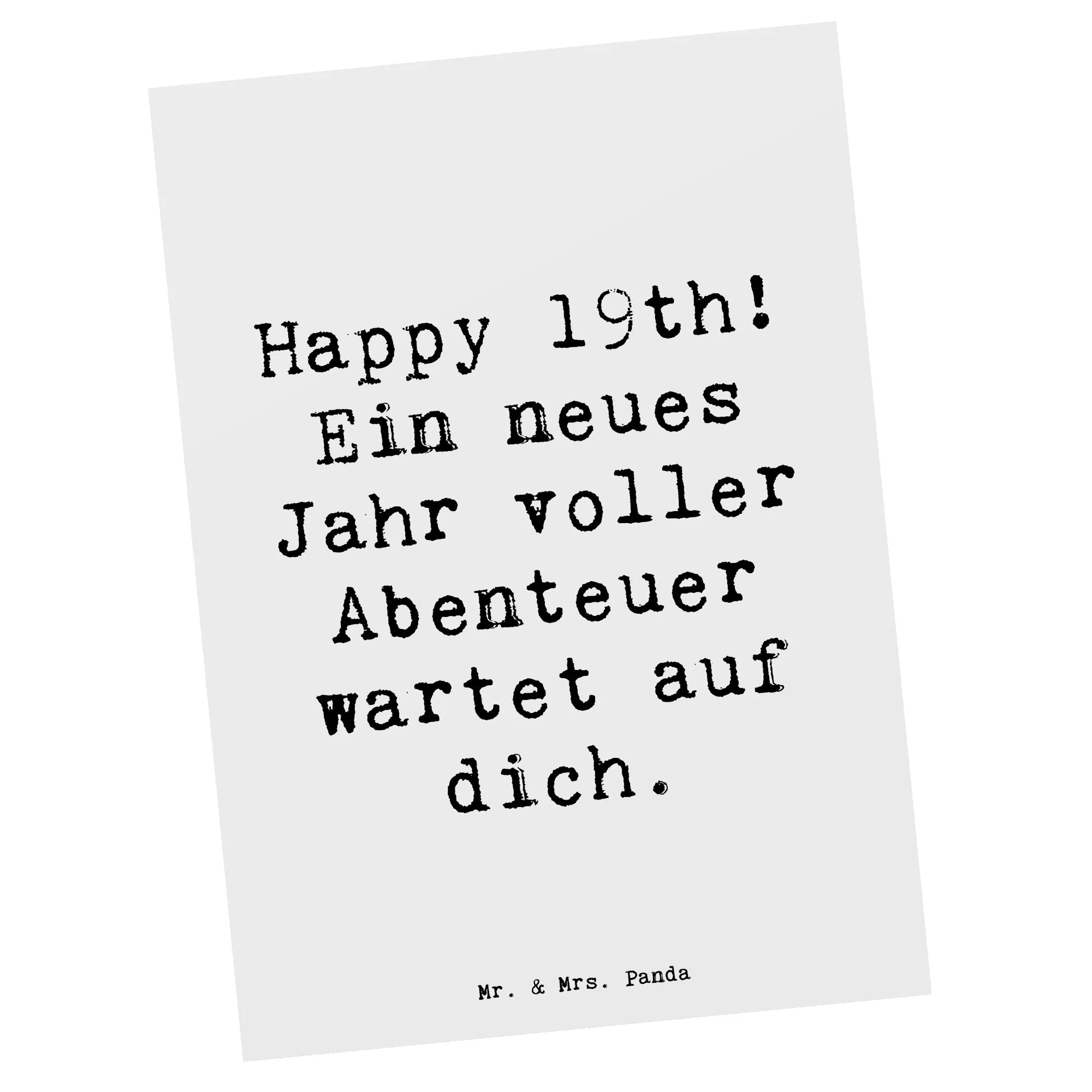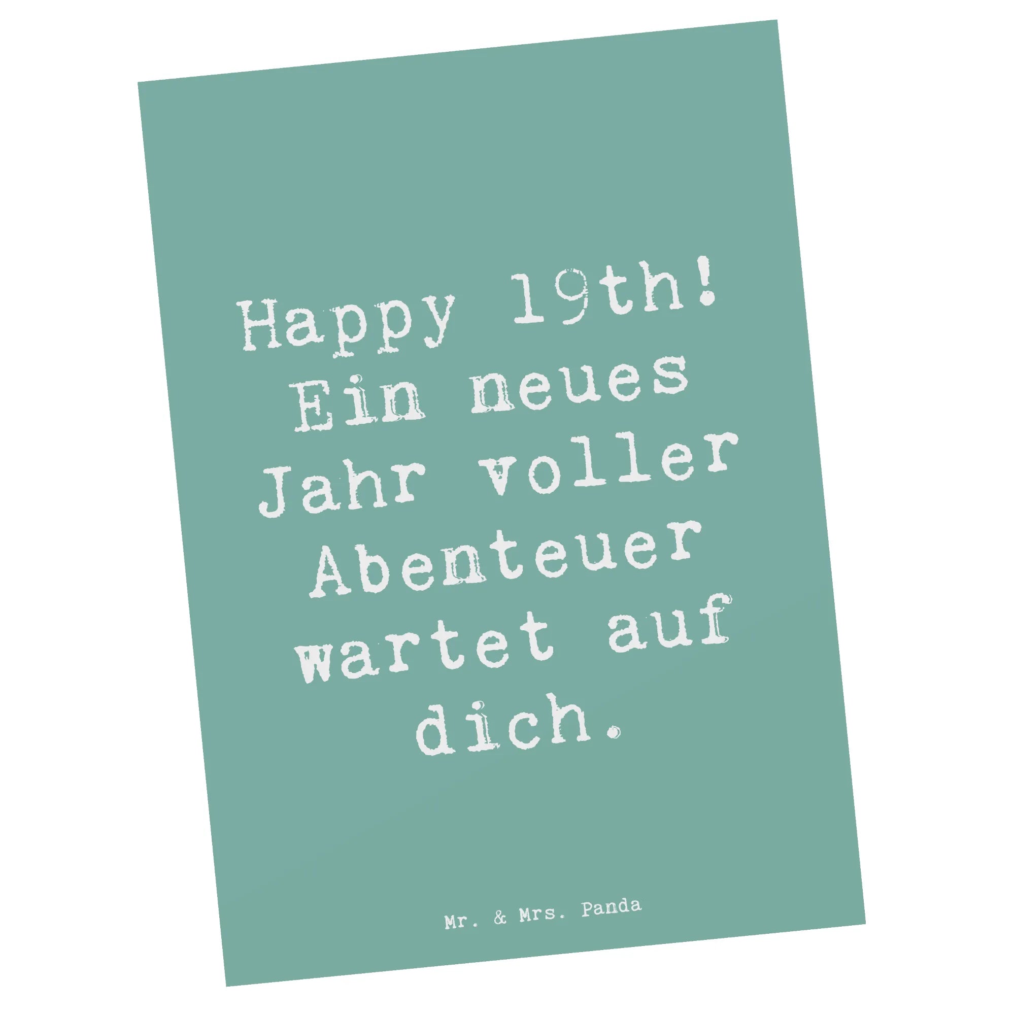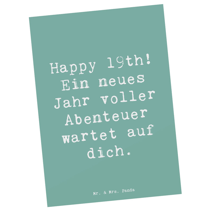Perfekt zum 19. Geburtstag: Diese liebevoll gestaltete Postkarte von Mr. & Mrs. Panda trägt den fröhlichen Spruch „Happy 19th! Ein neues Jahr voller Abenteuer wartet auf dich.“ und bringt genau die richtige Portion Lebensfreude mit, die man zum 19. Geburtstag versenden möchte.