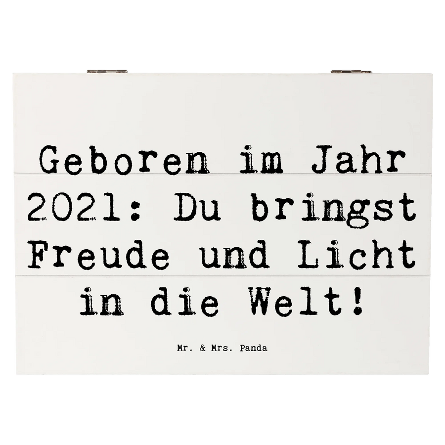 Wooden chest Saying Geboren im Jahr 2021: Du bringst Freude und Licht – Mr. & Mrs. Panda