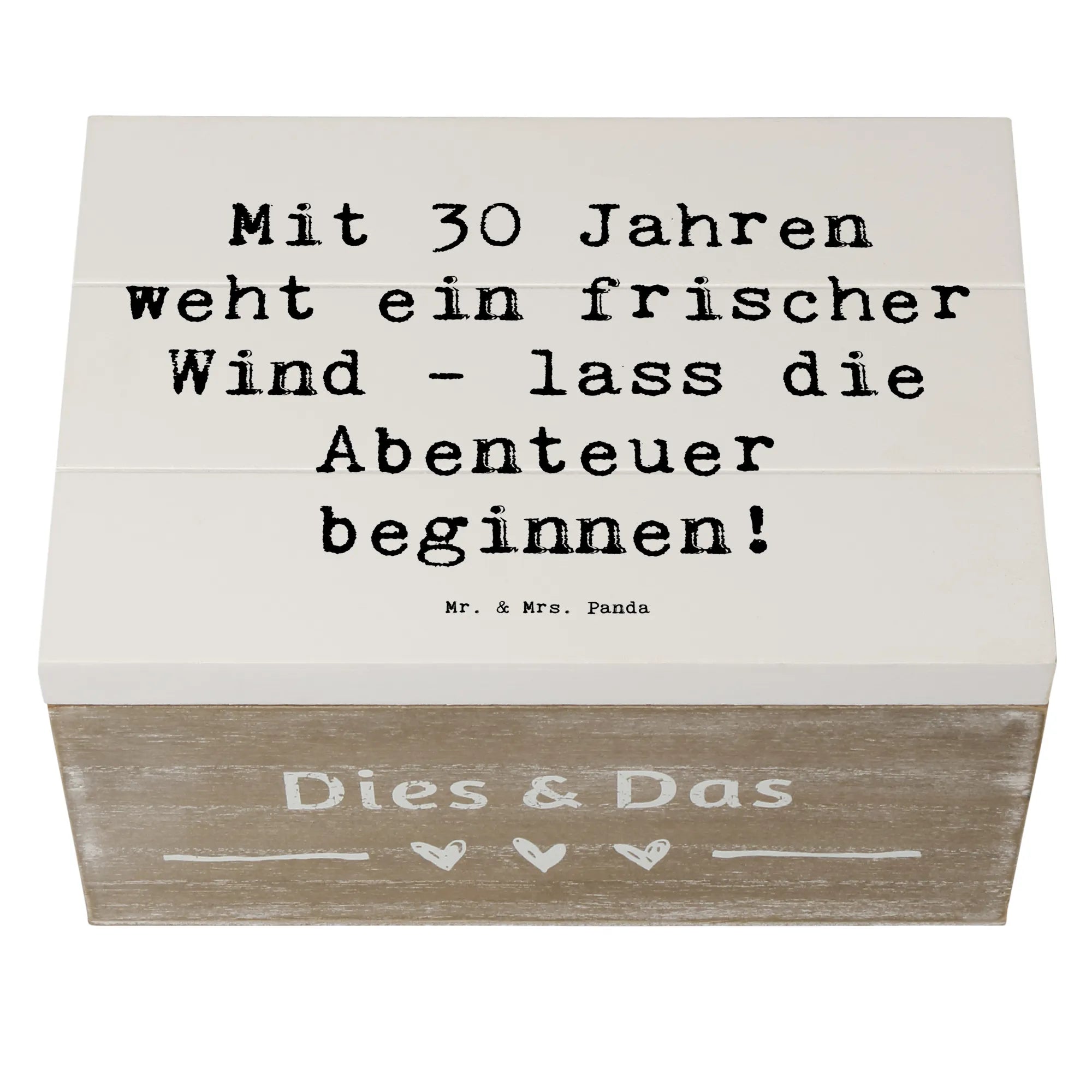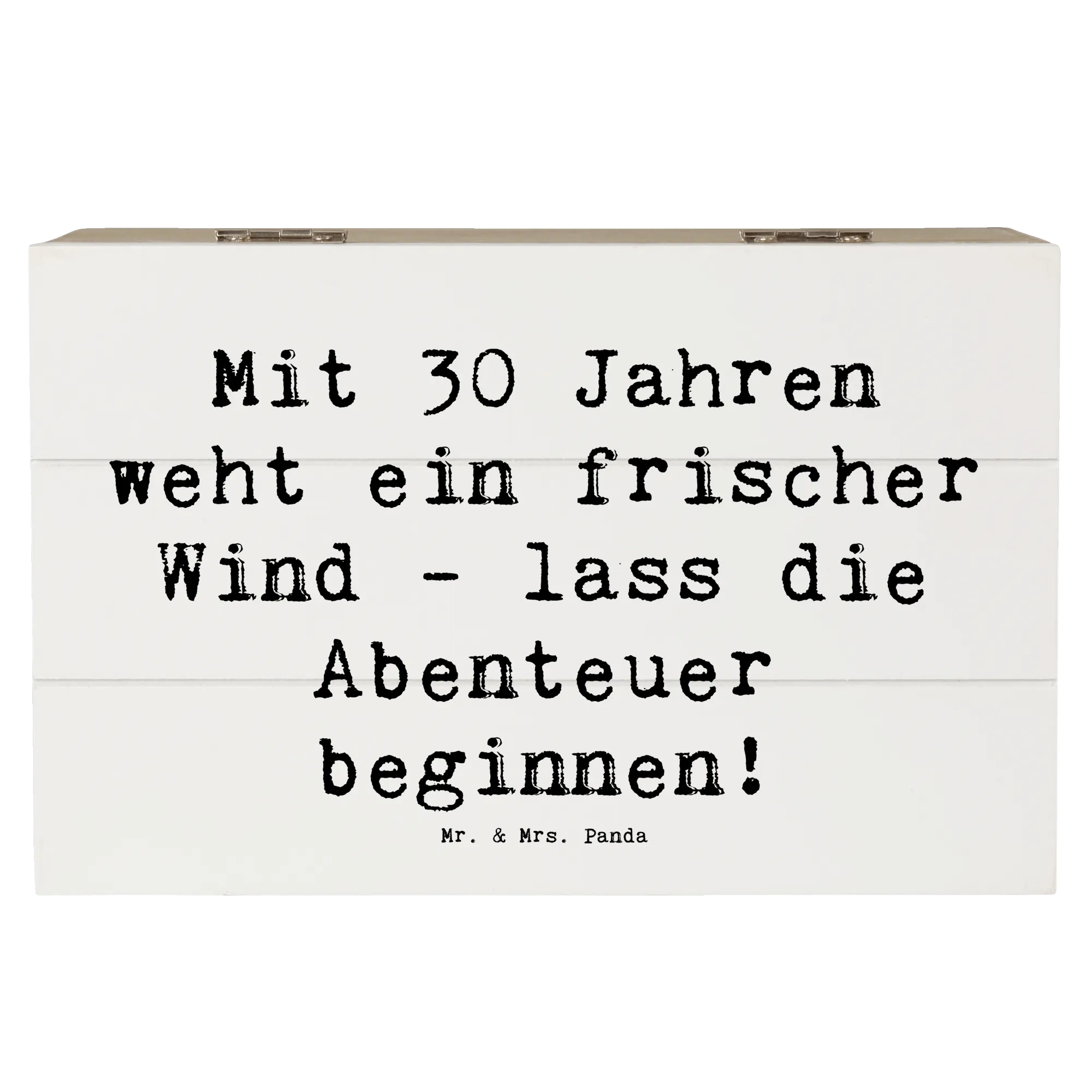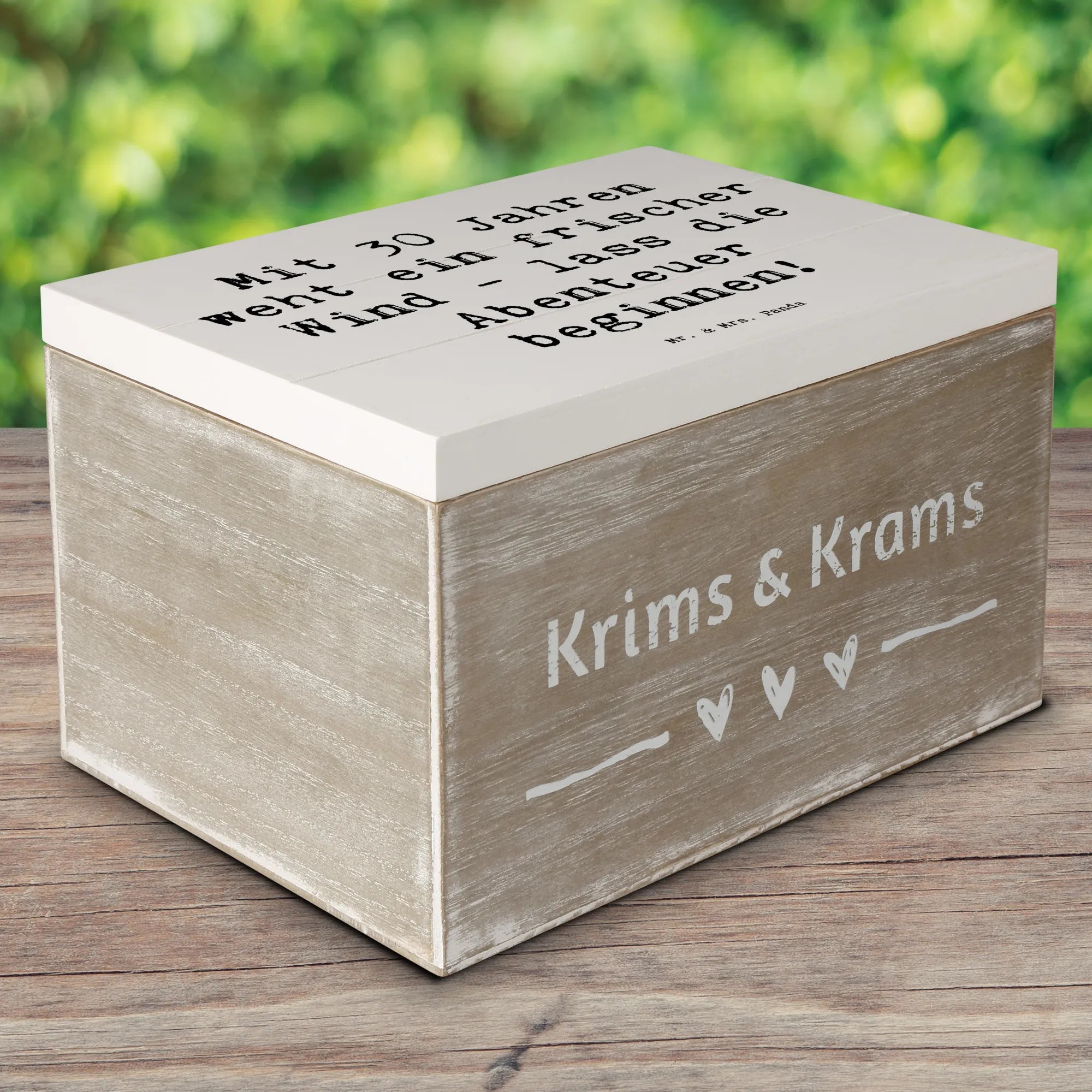 Wooden chest Saying Mit 30 Jahren weht ein frischer Wind - lass die Abenteuer beginnen! - 25 x 18 cm - White