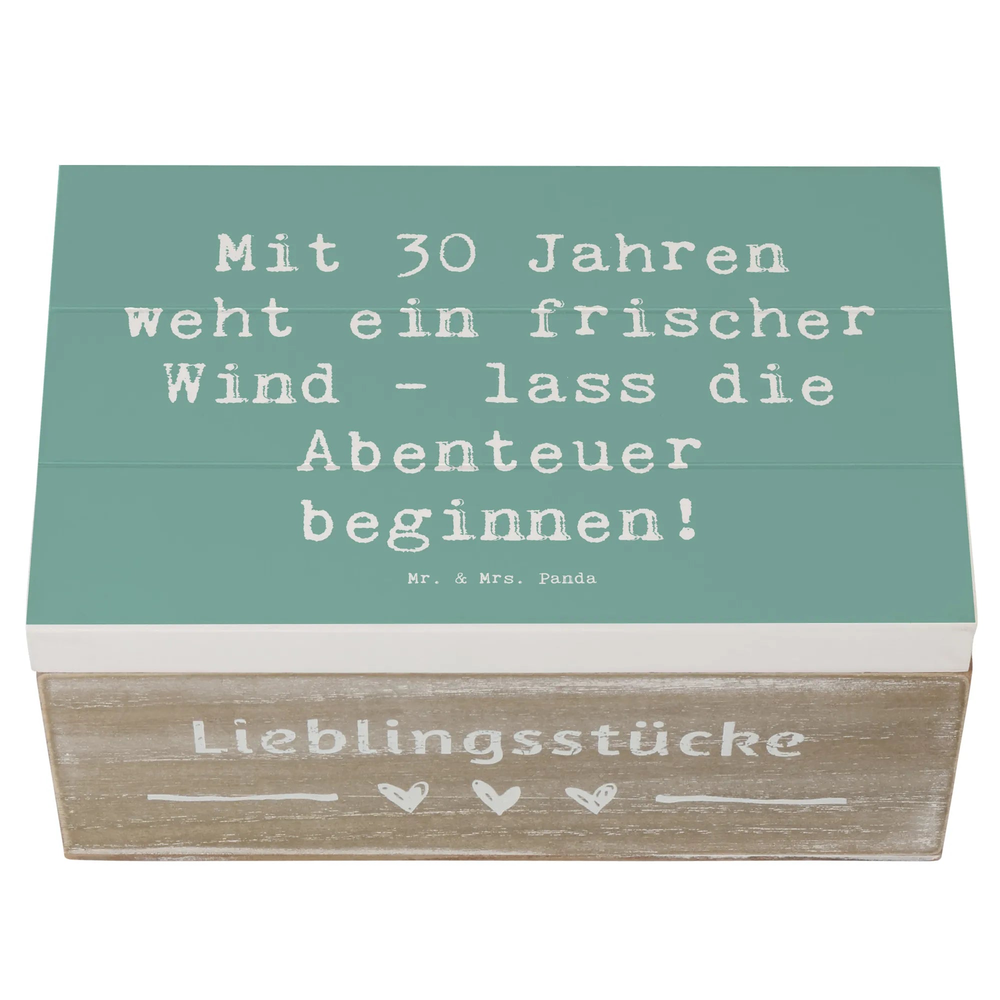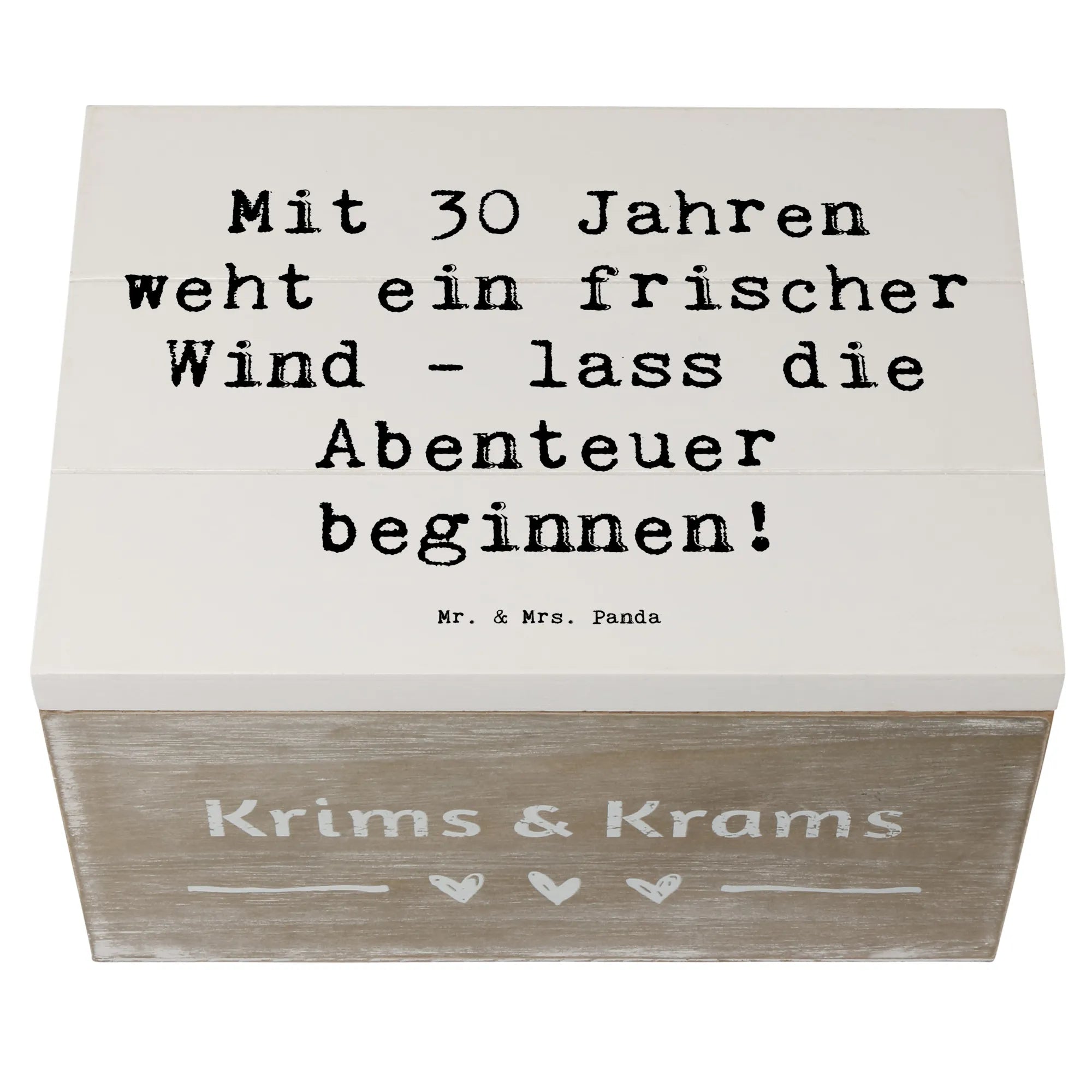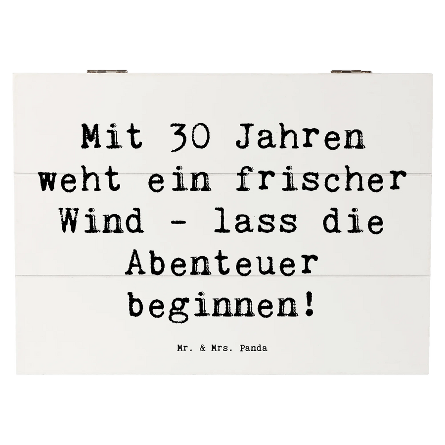 Wooden chest Saying Mit 30 Jahren weht ein frischer Wind - lass die Abenteuer beginnen! - 25 x 18 cm - White