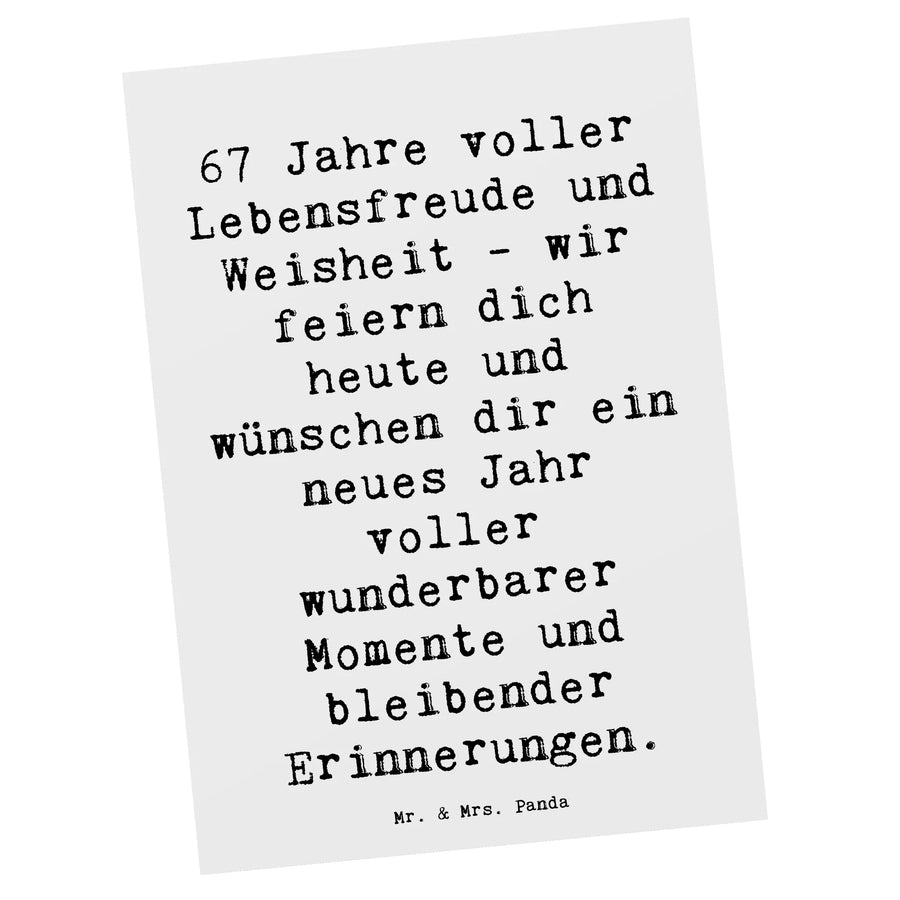 Postcard Saying 67 Jahre voller Lebensfreude und Weisheit - wir feiern – Mr. & Mrs. Panda
