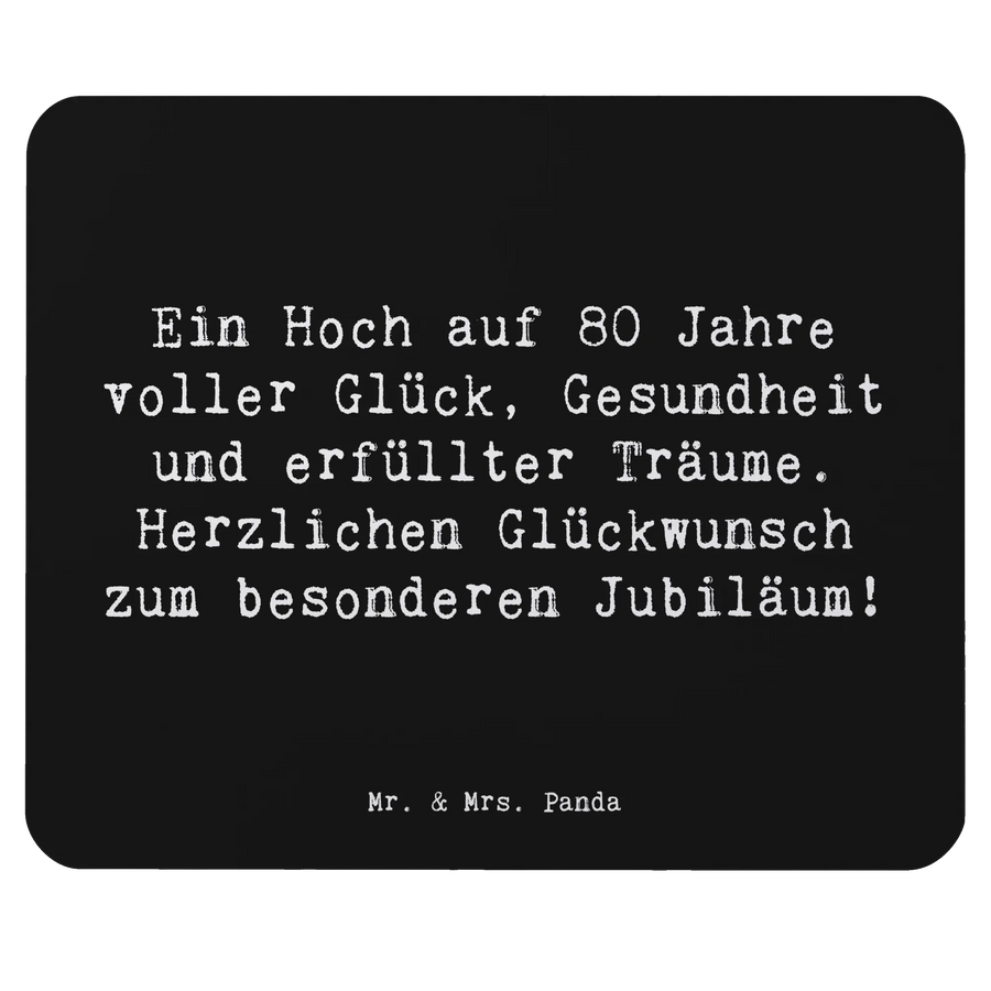 Das einzigartige Mauspad von Mr. & Mrs. Panda ist das perfekte Geschenk zum 80. Geburtstag! Ob für Deine Eltern, Großeltern oder einen lieben Freund – dieses Mauspad begeistert nicht nur durch sein niedliches Design, sondern auch durch die herzlichen Worte, die es zieren. Der Spruch "Ein Hoch auf 80 Jahre voller Glück, Gesundheit und erfüllter Träume! Herzlichen Glückwunsch zum besonderen Jubiläum!" strahlt Lebensfreude aus und wird jeden Beschenkten mit einem Lächeln erfüllen.