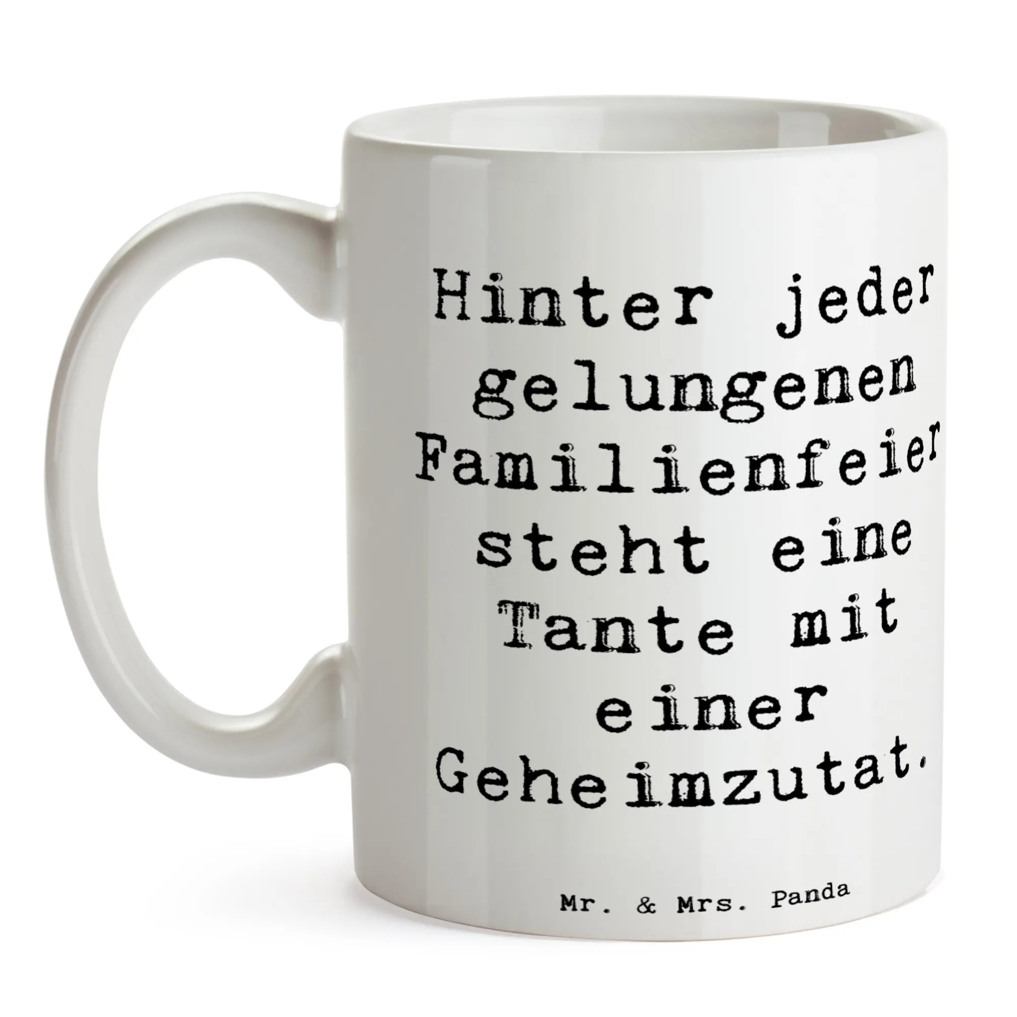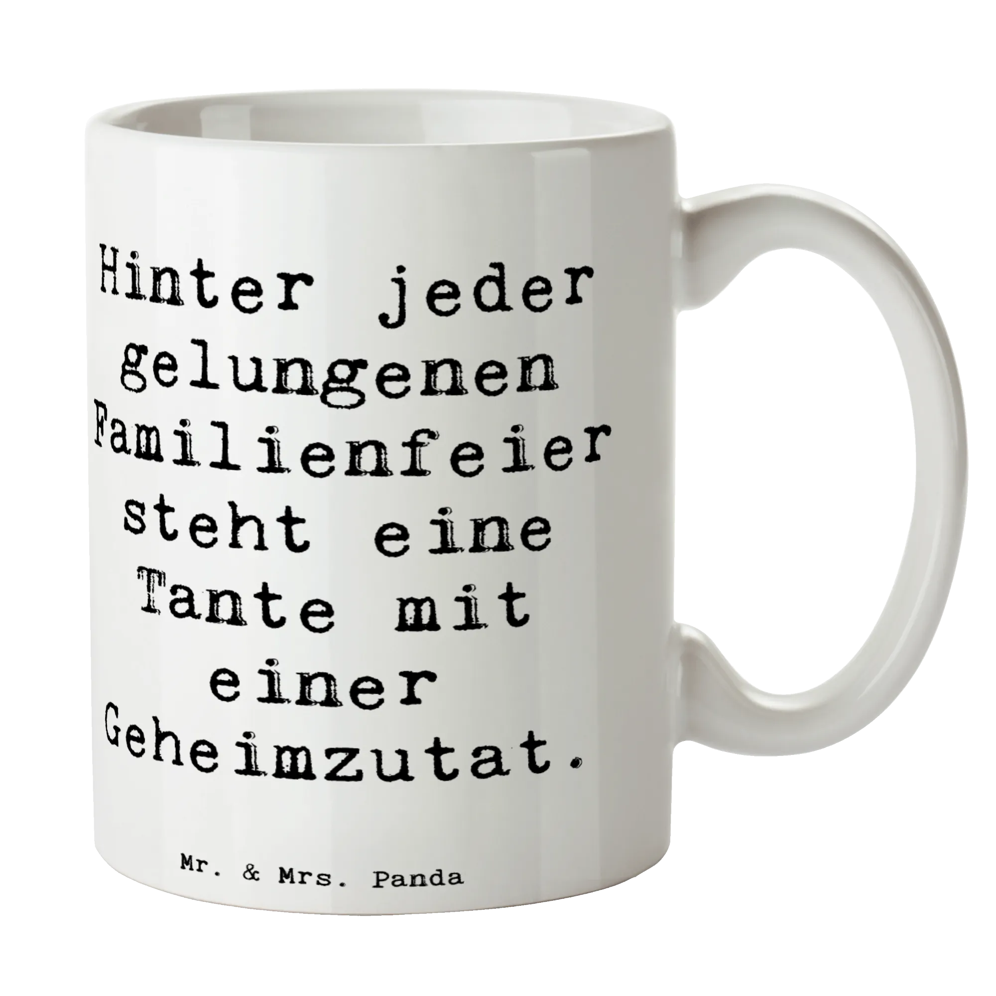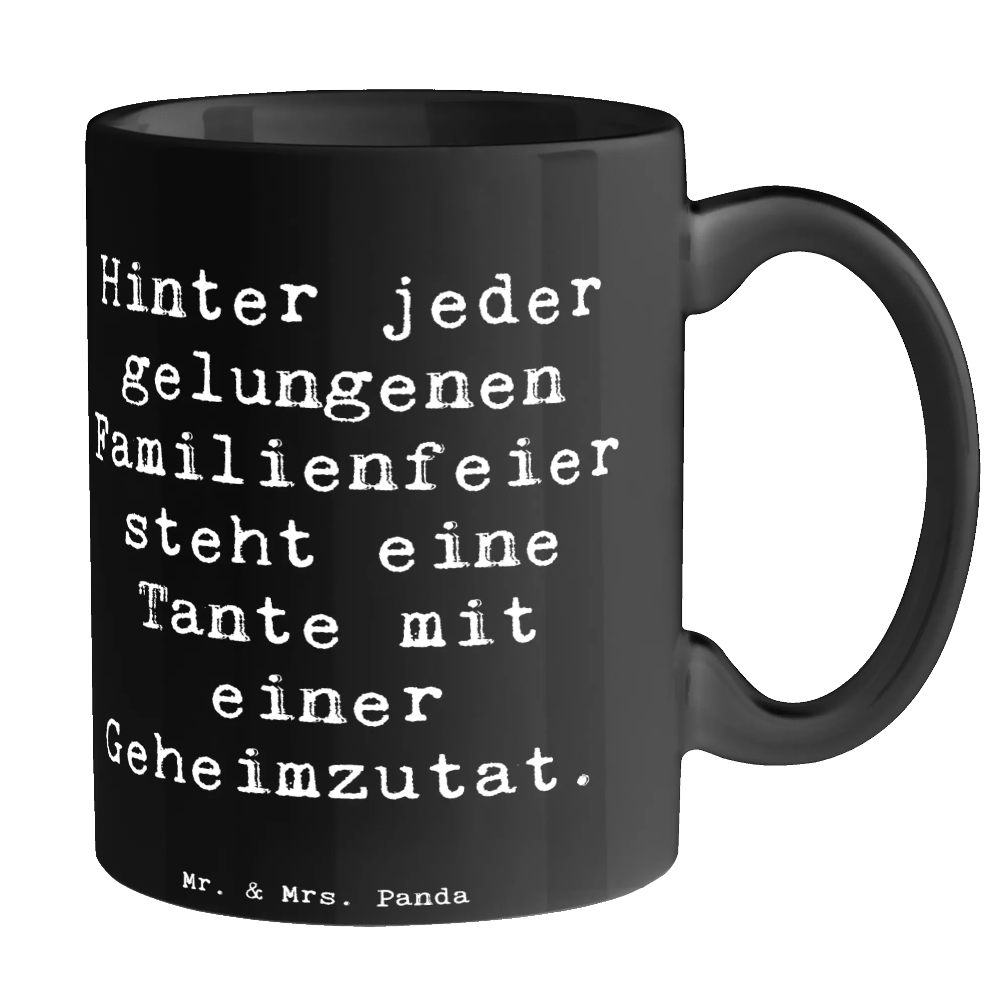 Mug Saying Hinter jeder gelungenen Familienfeier steht eine Tante mit einer Geheimzutat. - Black