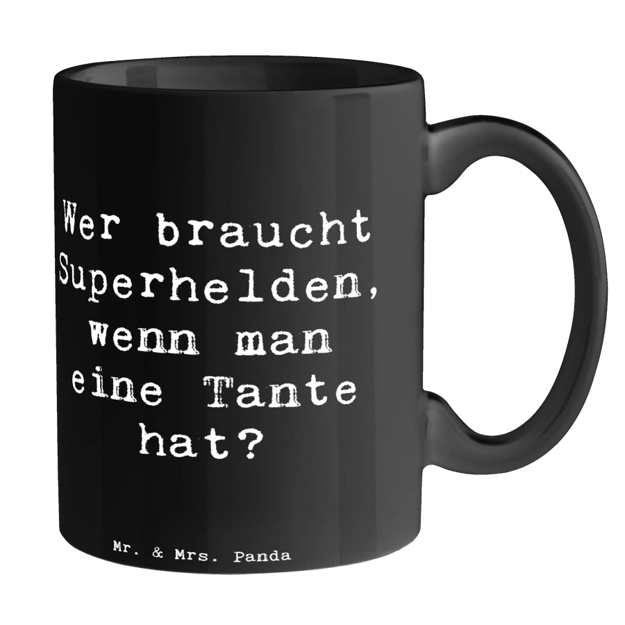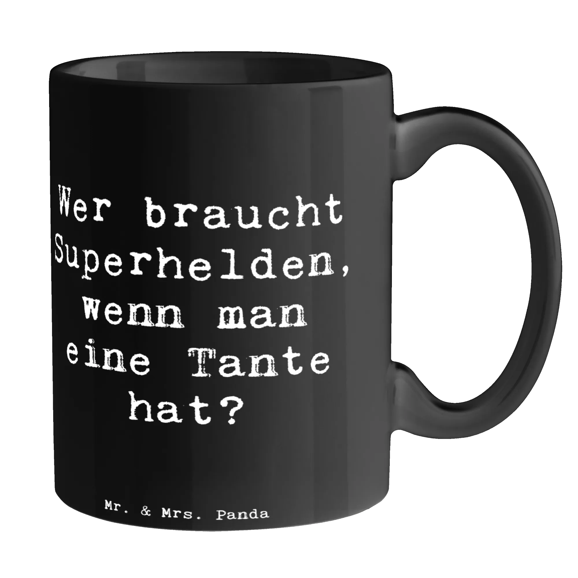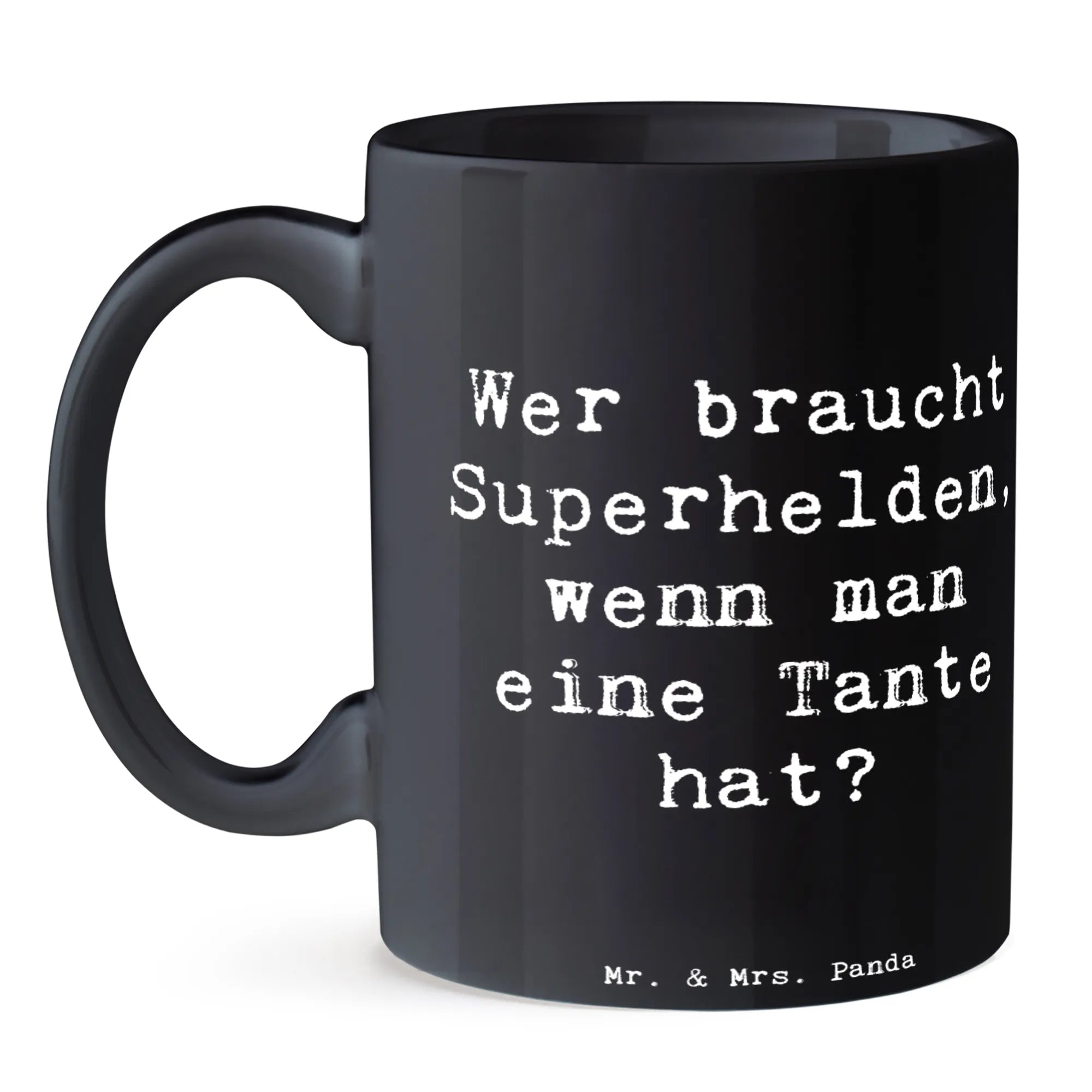 Mug Saying Wer braucht Superhelden, wenn man eine Tante hat? - Black