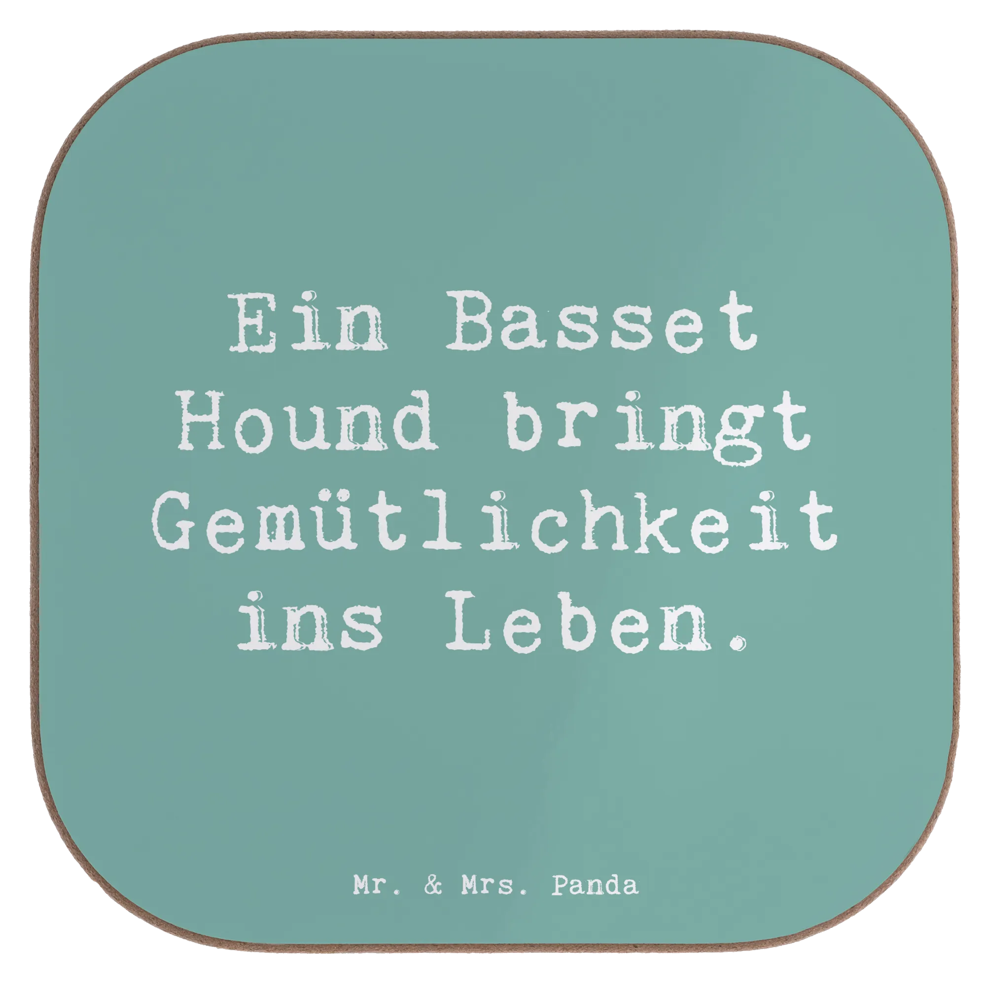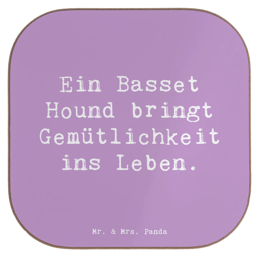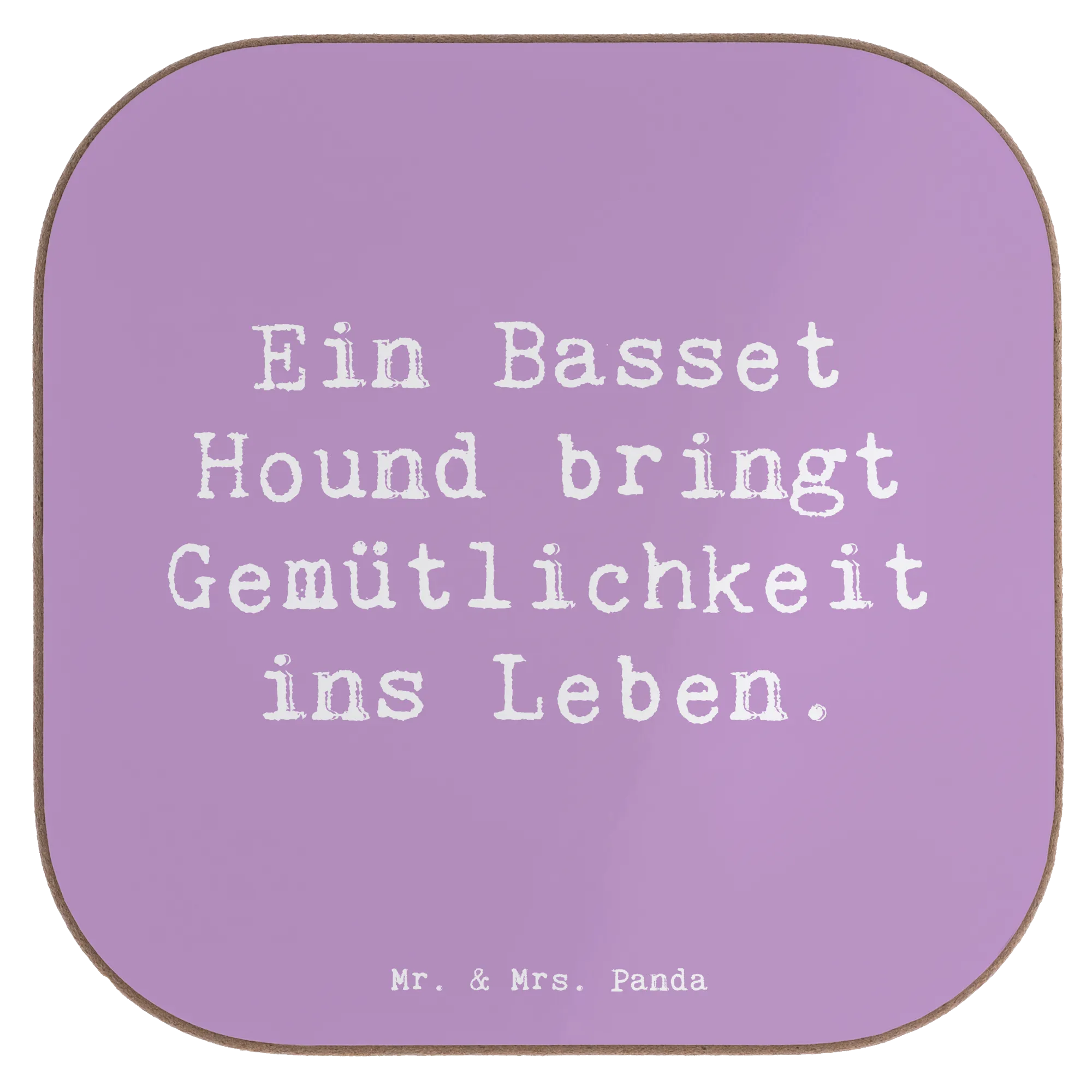 Square coaster Saying Ein Basset Hound bringt Gemütlichkeit ins Leben. - Lavender Dream