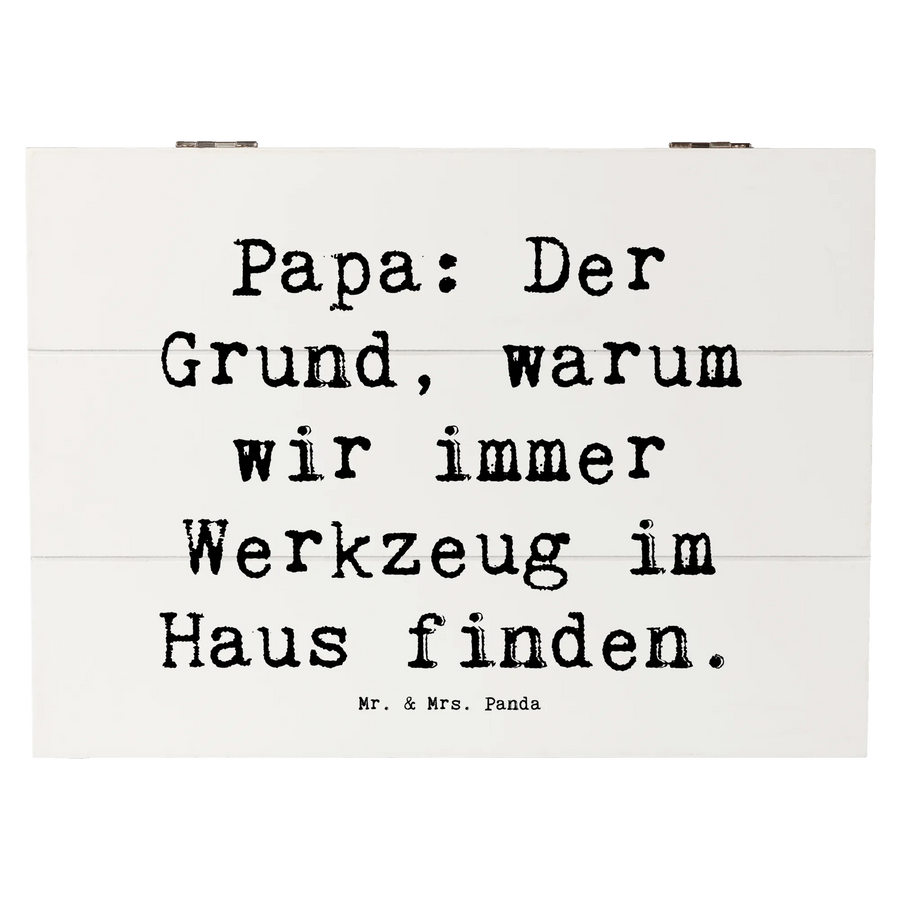 Wooden chest Saying Papa: Der Grund, warum wir immer Werkzeug im Haus finden. - 25 x 18 cm - White