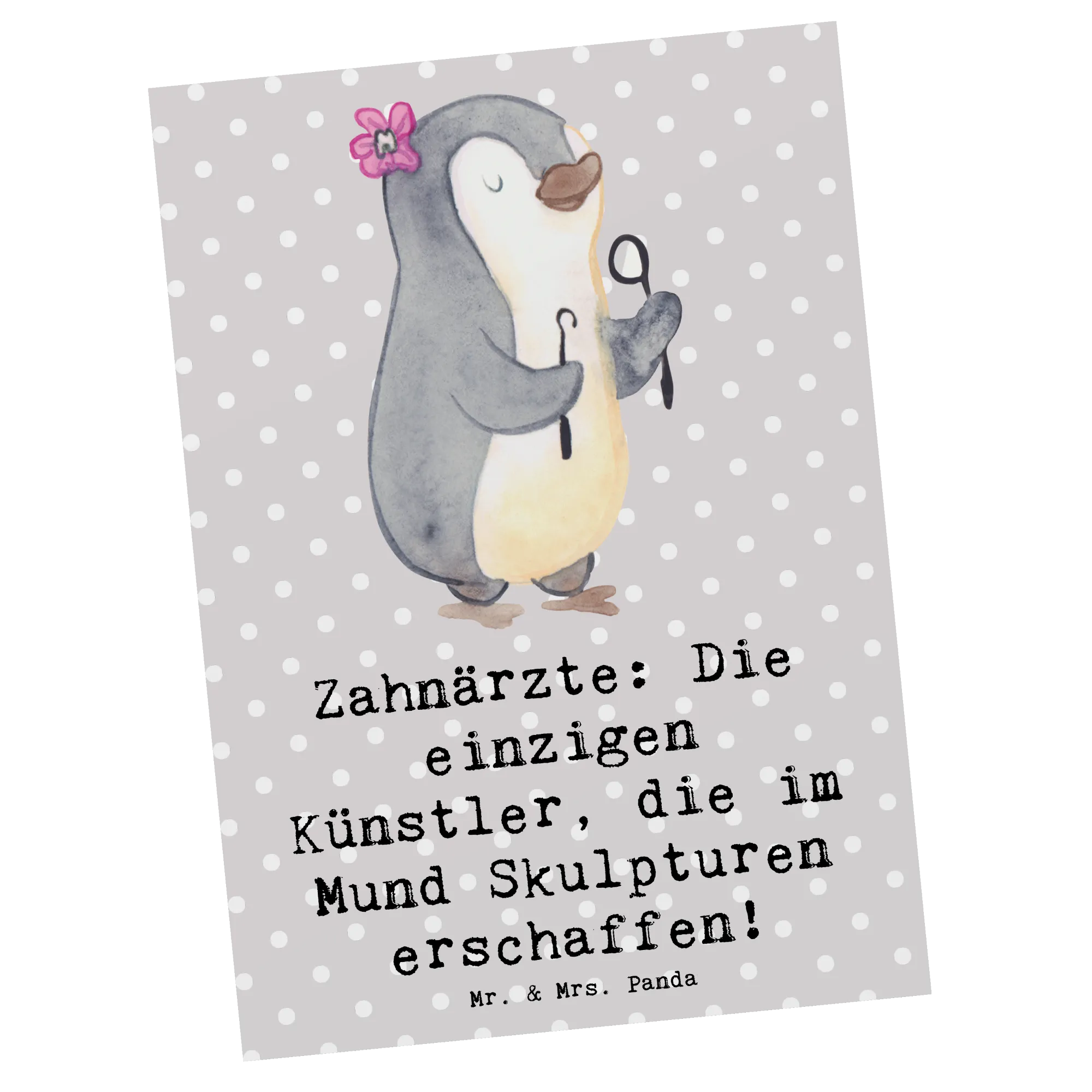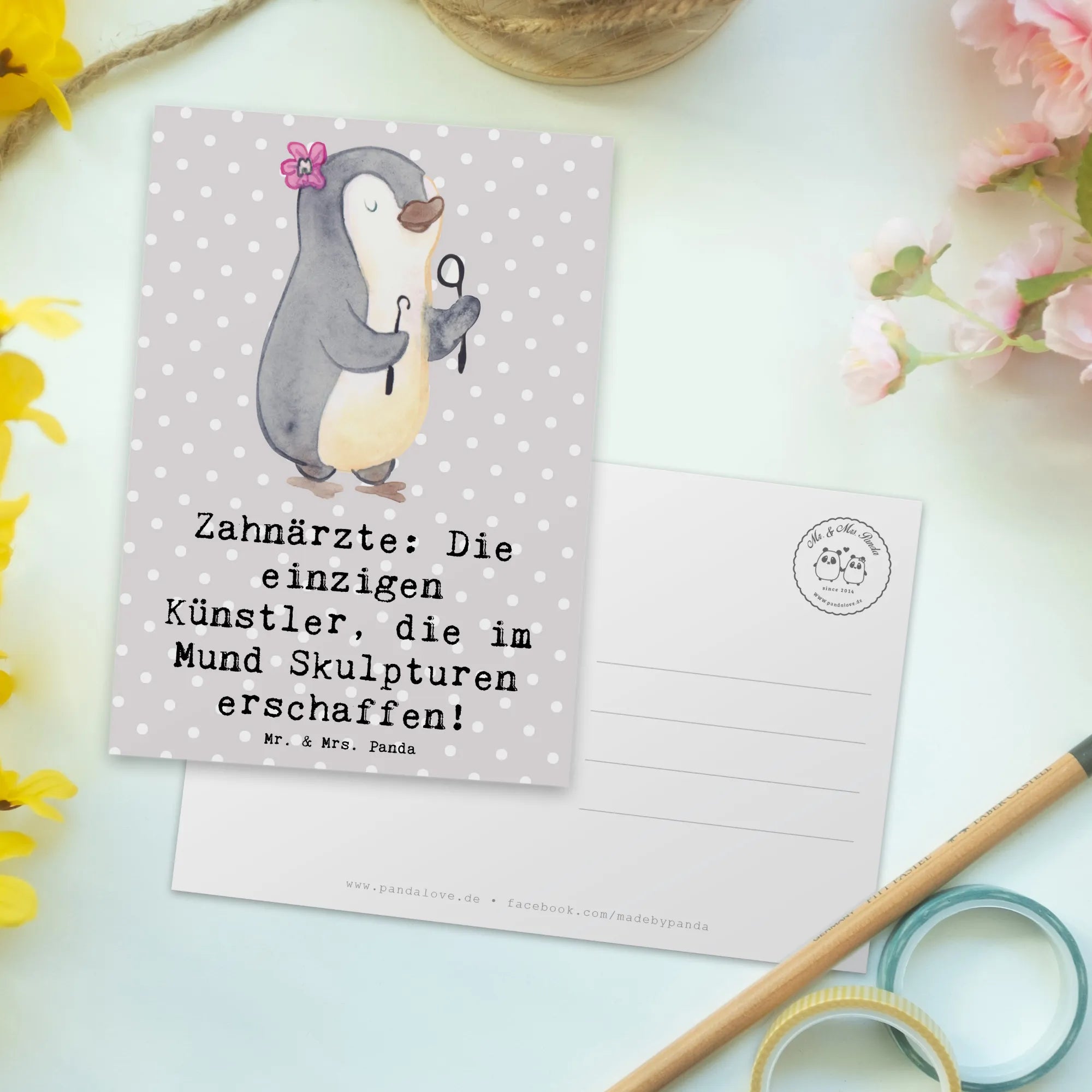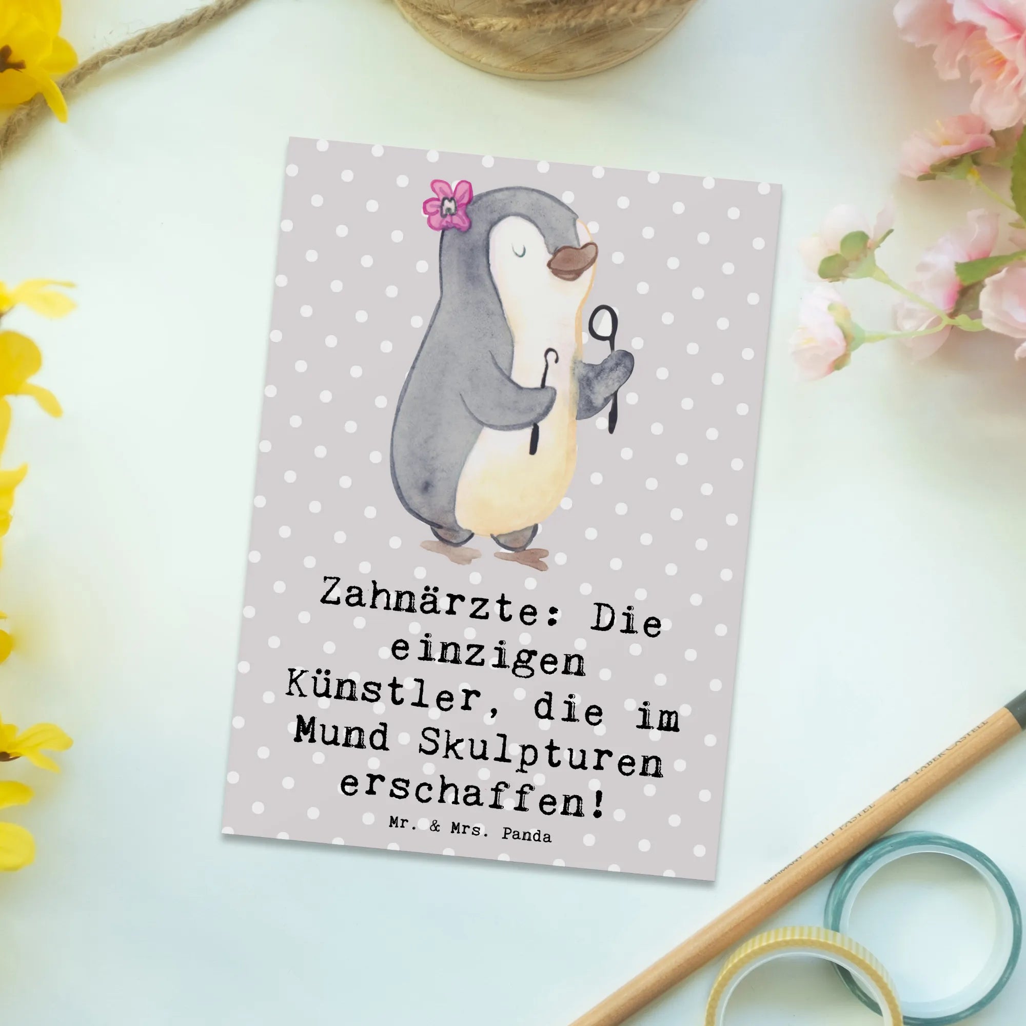 Du suchst nach einer ganz besonderen Grußkarte, die nicht nur schön aussieht, sondern auch ein weiterer Ausdruck von Anerkennung für einen tollen Job ist? Dann ist die bezaubernde Postkarte mit dem Motiv "Zahnarzt" aus der liebevollen Berufe-Kollektion von Mr. & Mrs. Panda genau das Richtige für Dich!