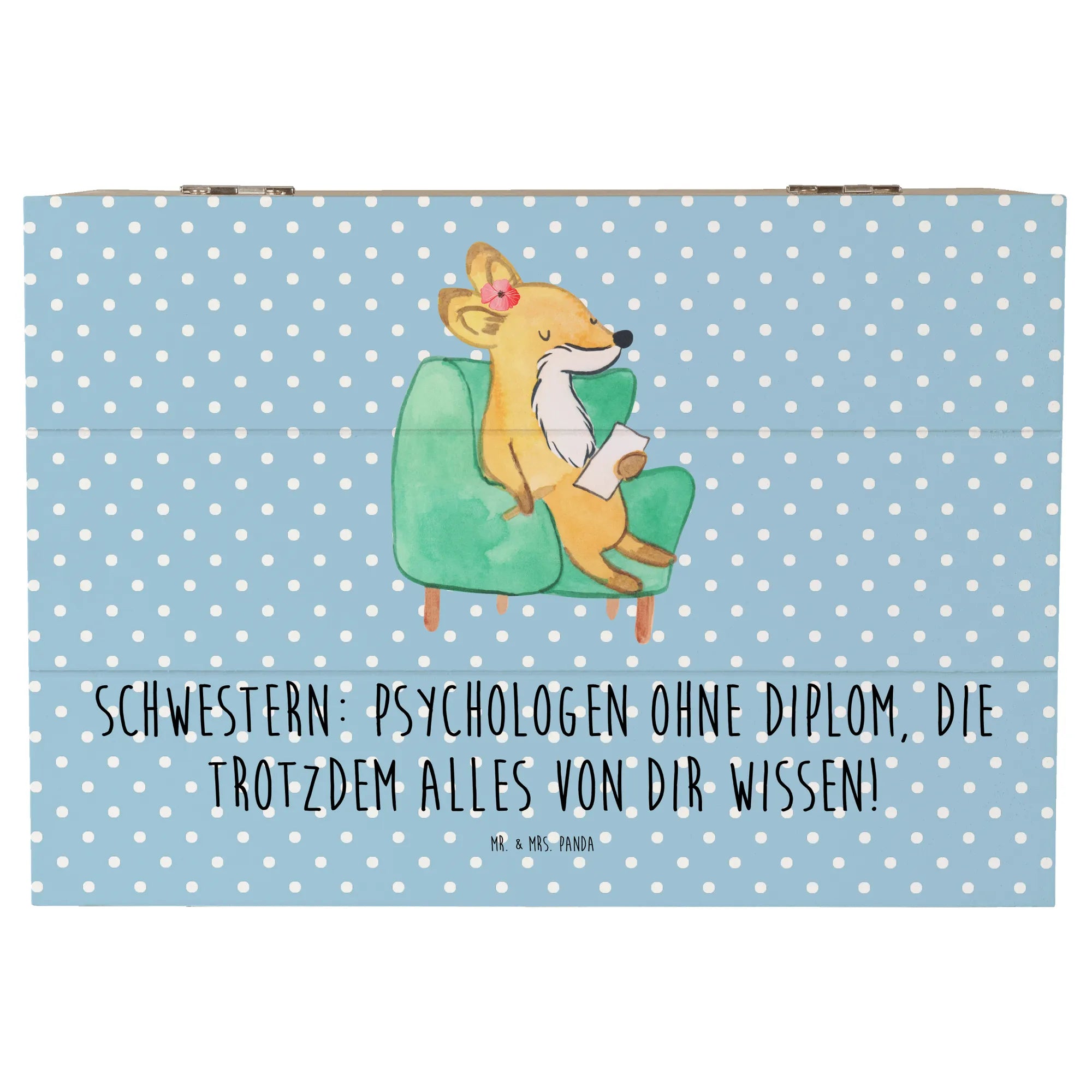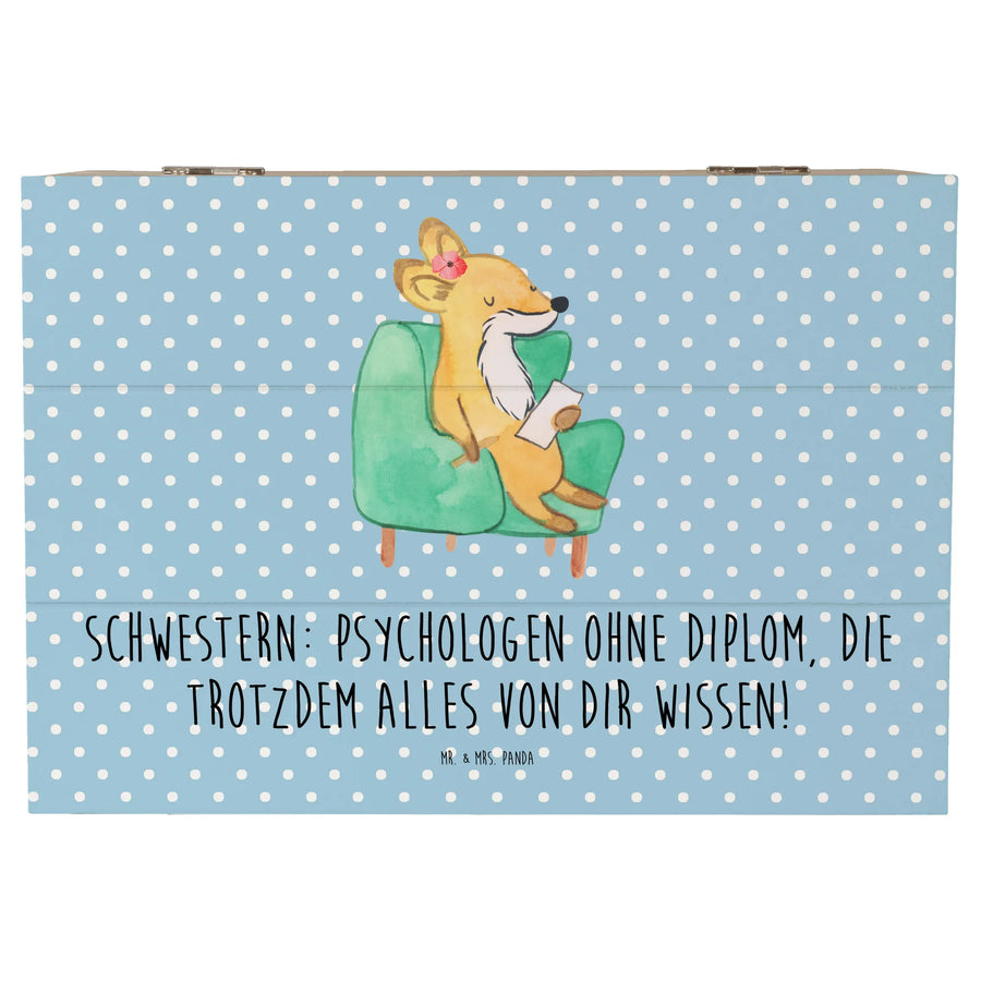 Wooden chest Schwestern: Psychologen ohne Diplom, die trotzdem alles von dir wissen! - 22 x 15 cm - Blue Pastel