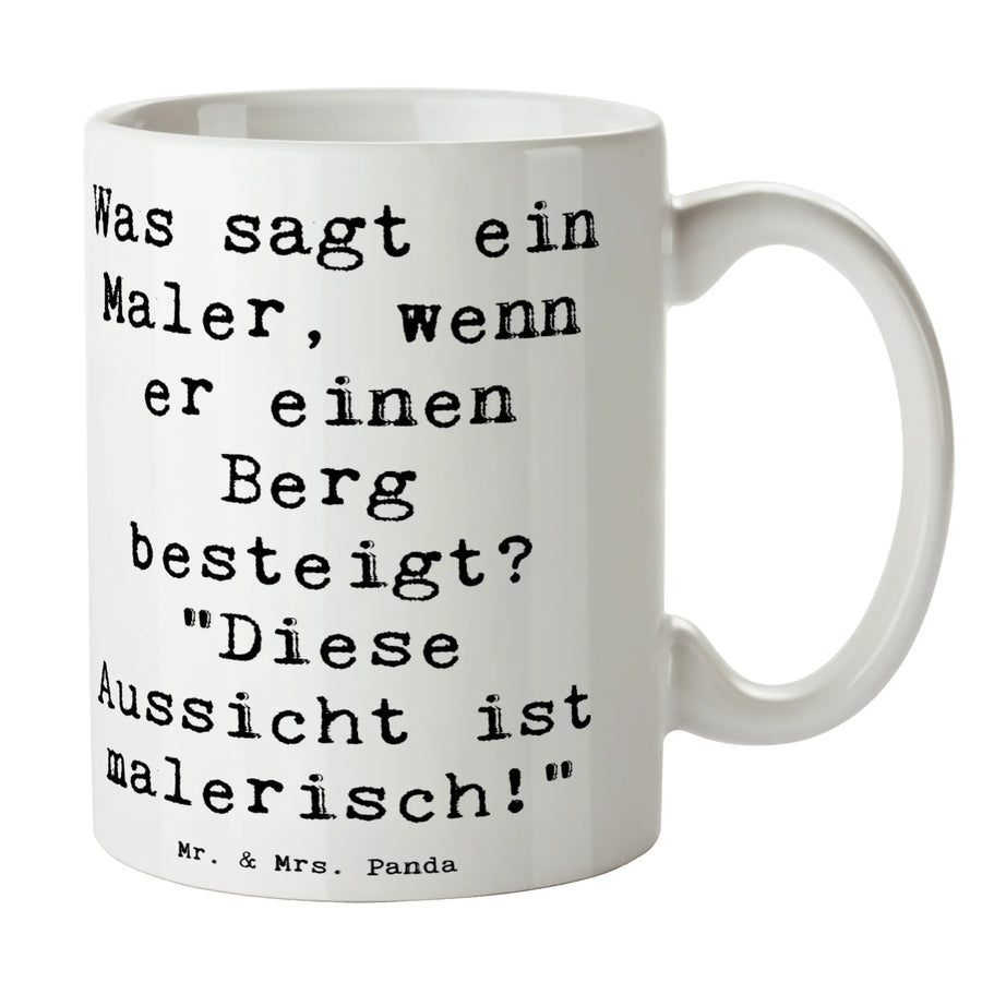 Mug Saying Was sagt ein Maler, wenn er einen Berg besteigt? "Diese Aussicht ist malerisch!" - White