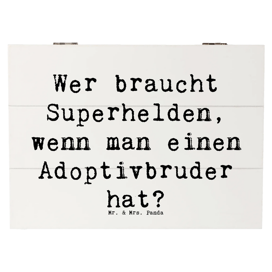 Wooden chest Saying Wer braucht Superhelden, wenn man einen Adoptivbruder hat? - 25 x 18 cm - White