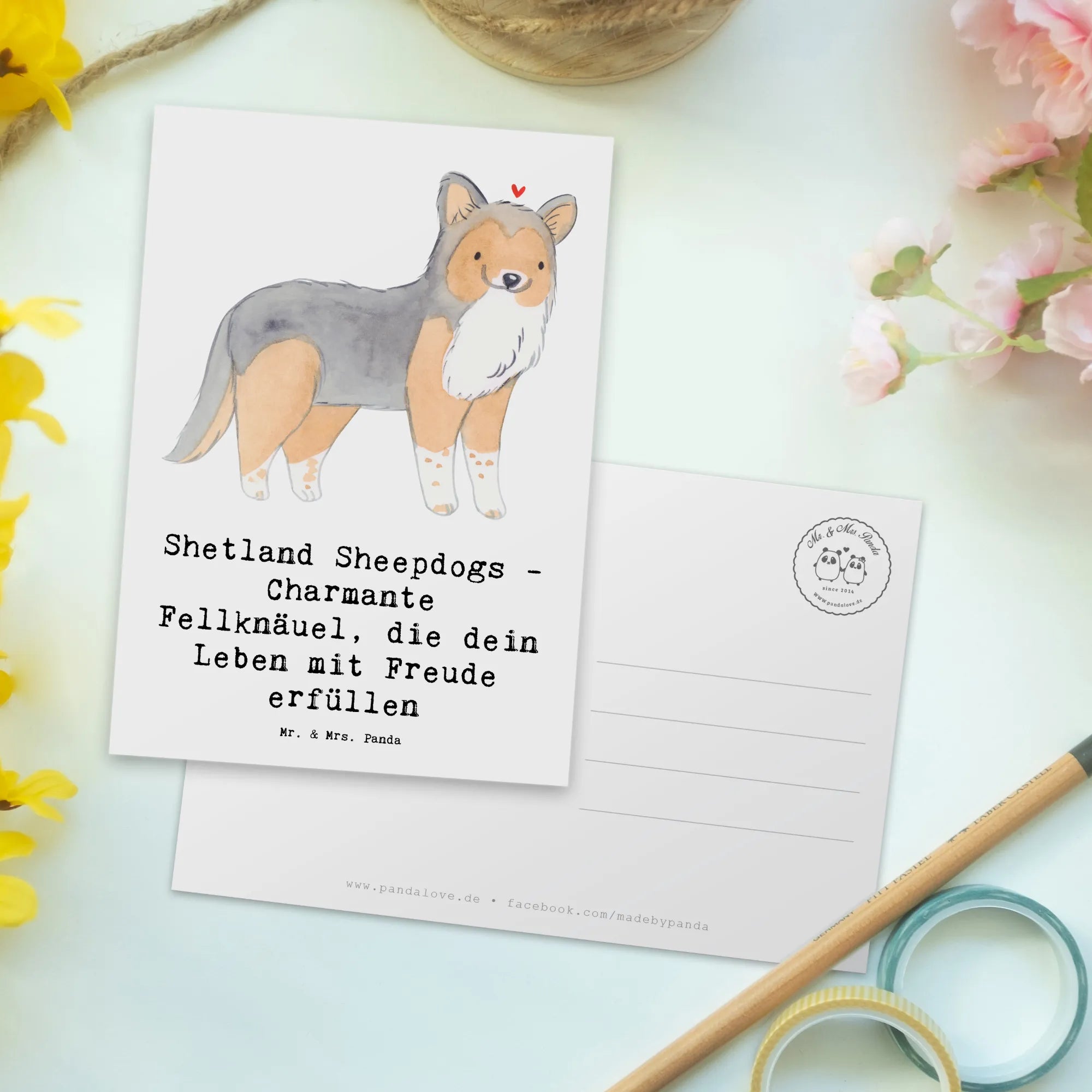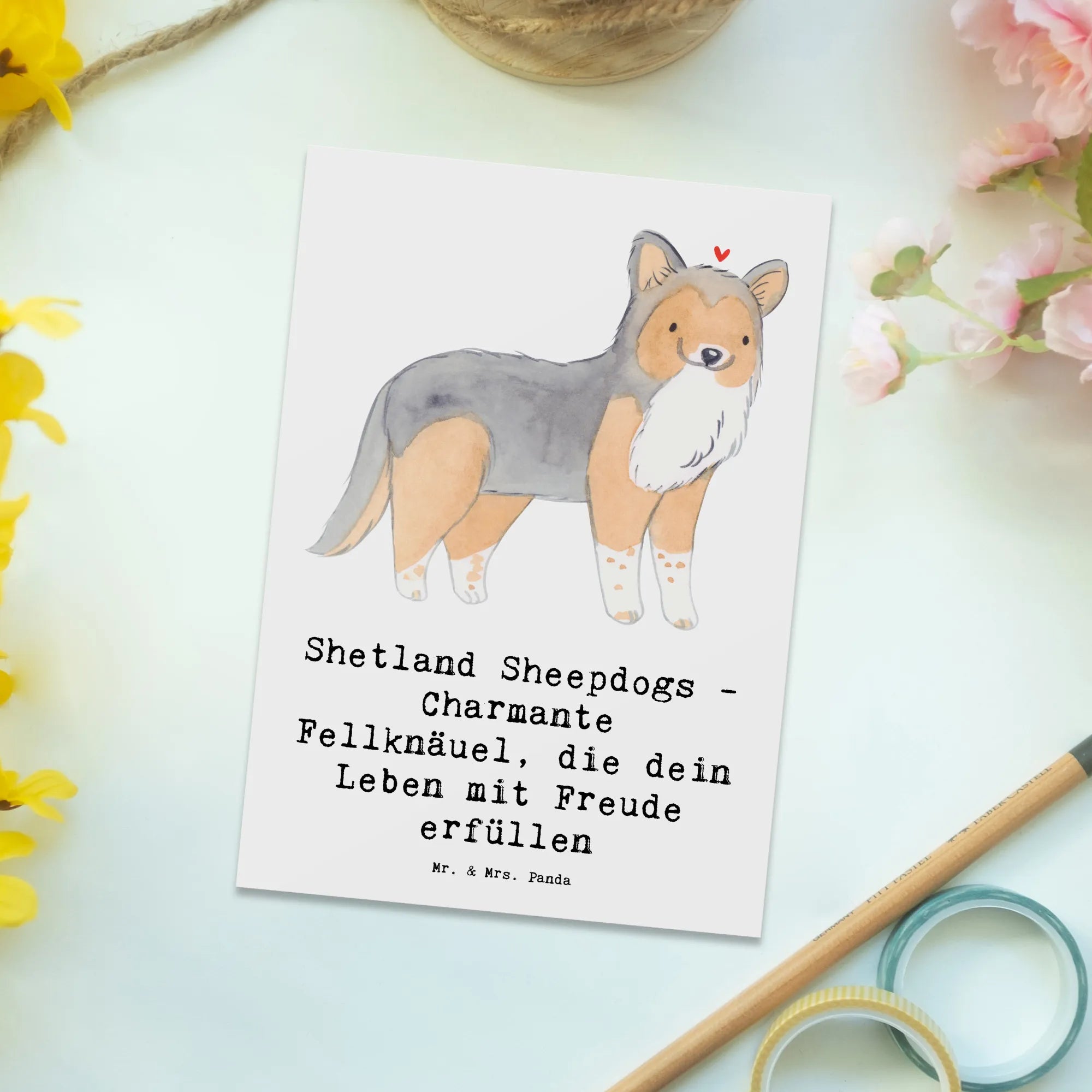 Postcard Shetland Sheepdogs - Charmante Fellknäuel, die dein Leben mit Freude erfüllen - White