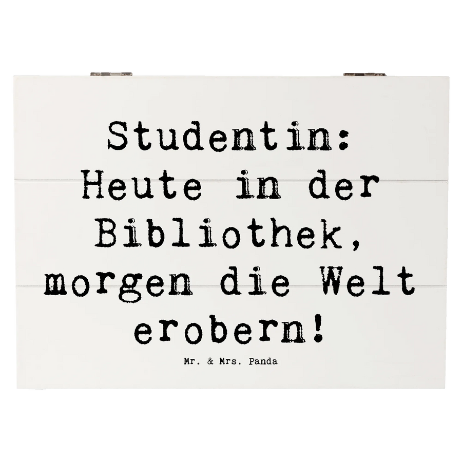 Wooden chest Saying Studentin: Heute in der Bibliothek, morgen die Welt erobern! - 25 x 18 cm - White