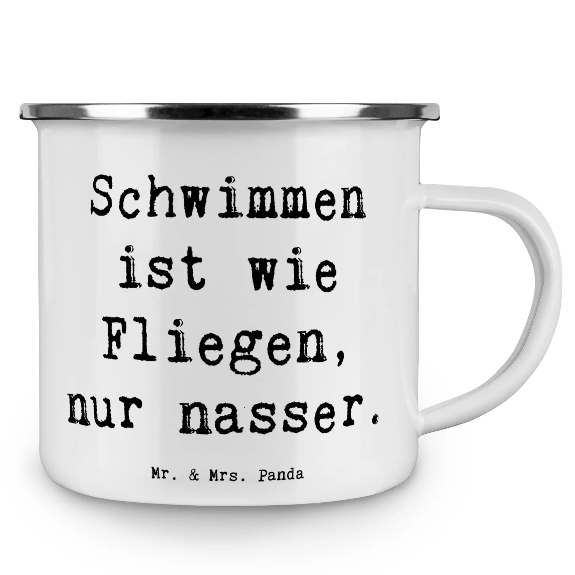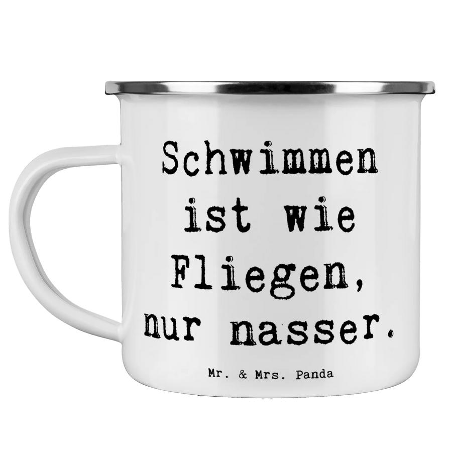 Enamel camping mug Saying Schwimmen ist wie Fliegen, nur nasser. – Mr. & Mrs. Panda