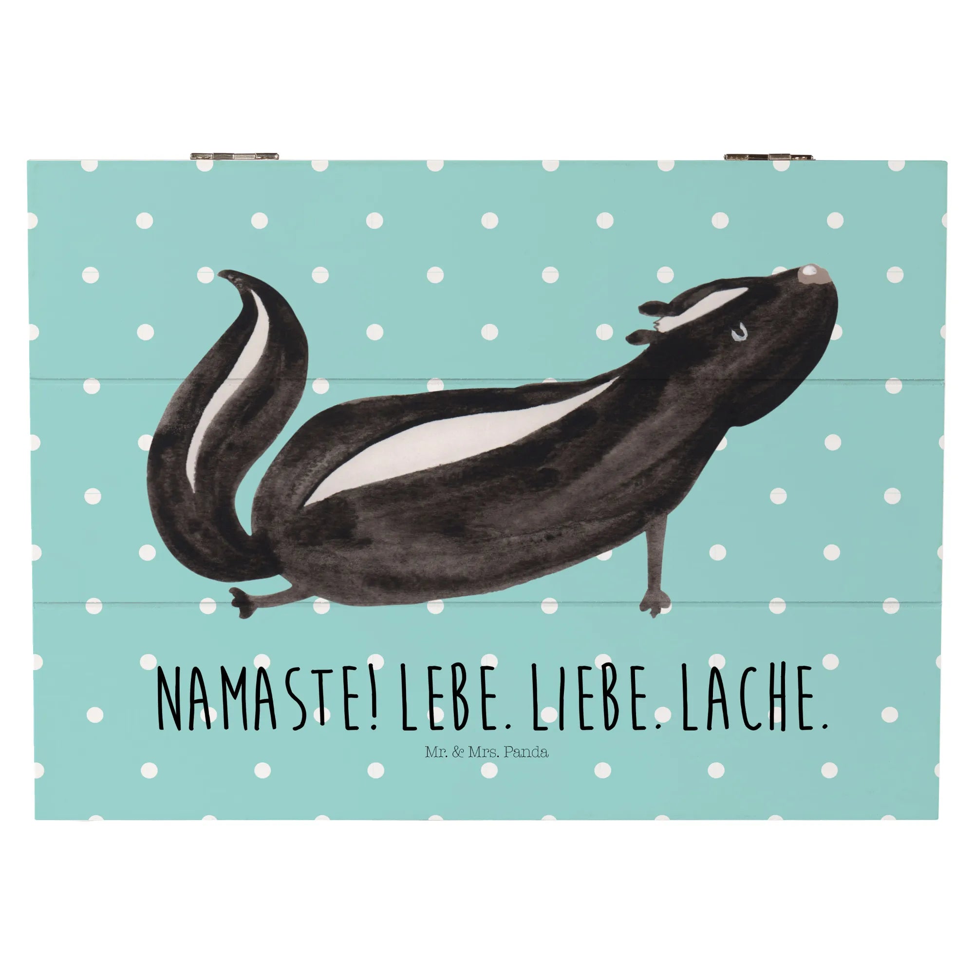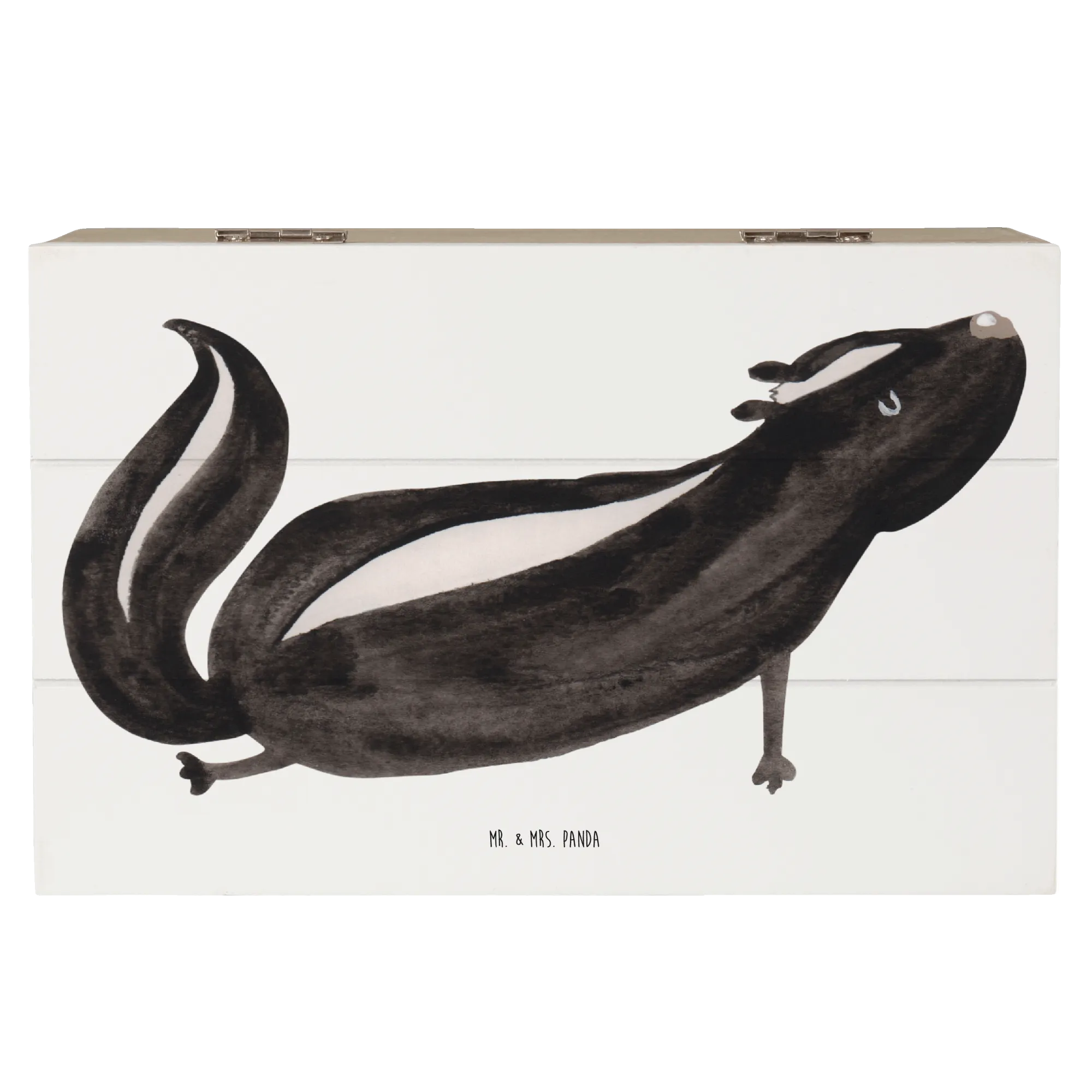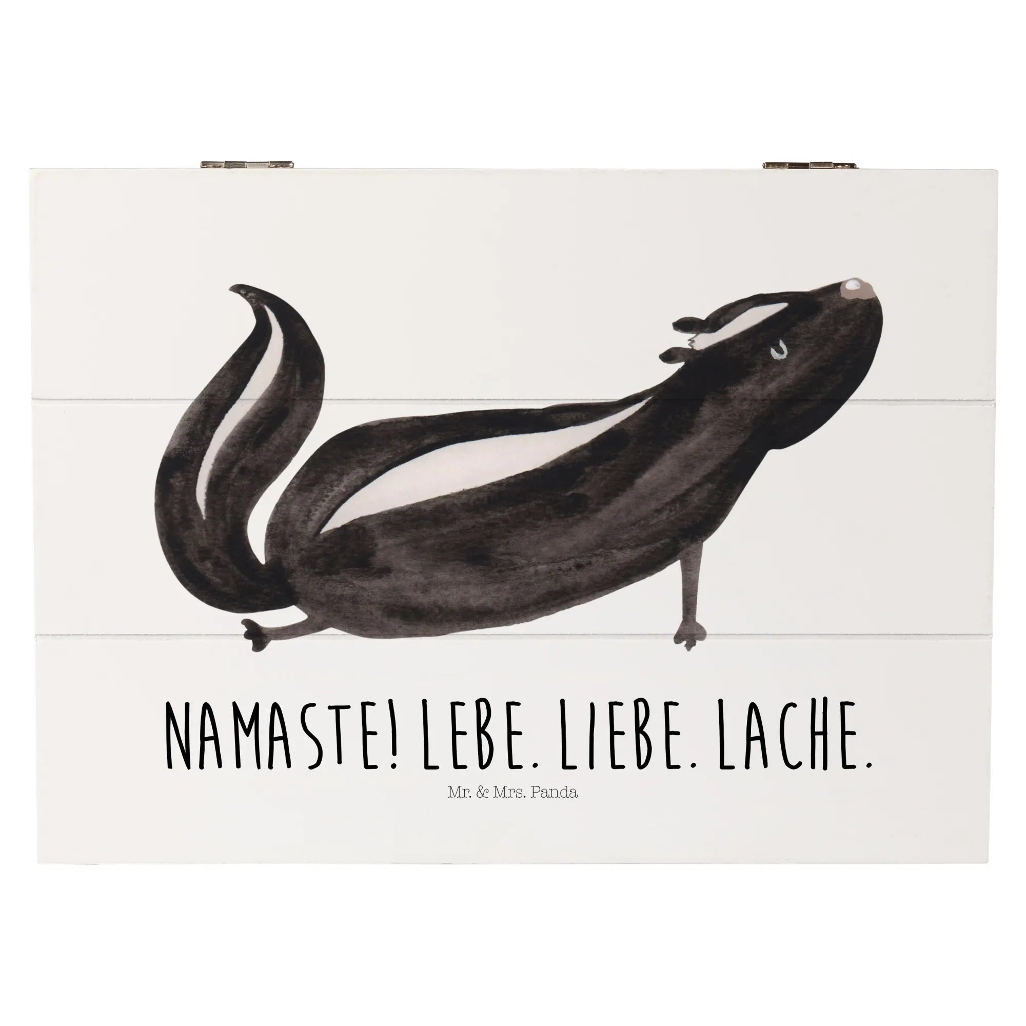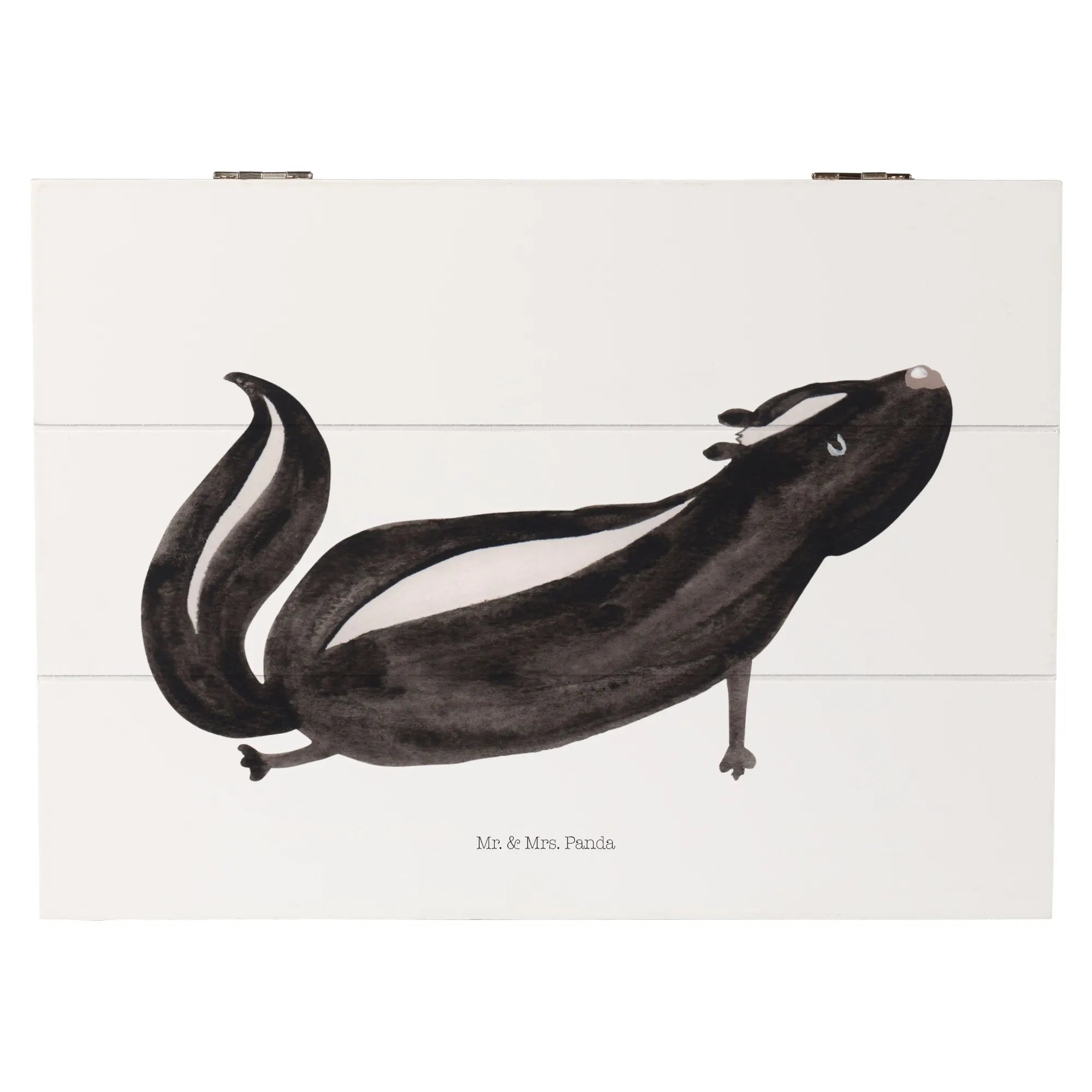 In summary, whether you’re a yoga aficionado, love unique decorative pieces, or are on the hunt for the ultimate gift, the Mr. & Mrs. Panda Wooden Chest with the Skunk Yoga motif is the perfect choice! Embrace your love for stinky cuteness and create a cozy, loving atmosphere with this wonderful memory box – because everyone needs a little bit of stinker in their life!