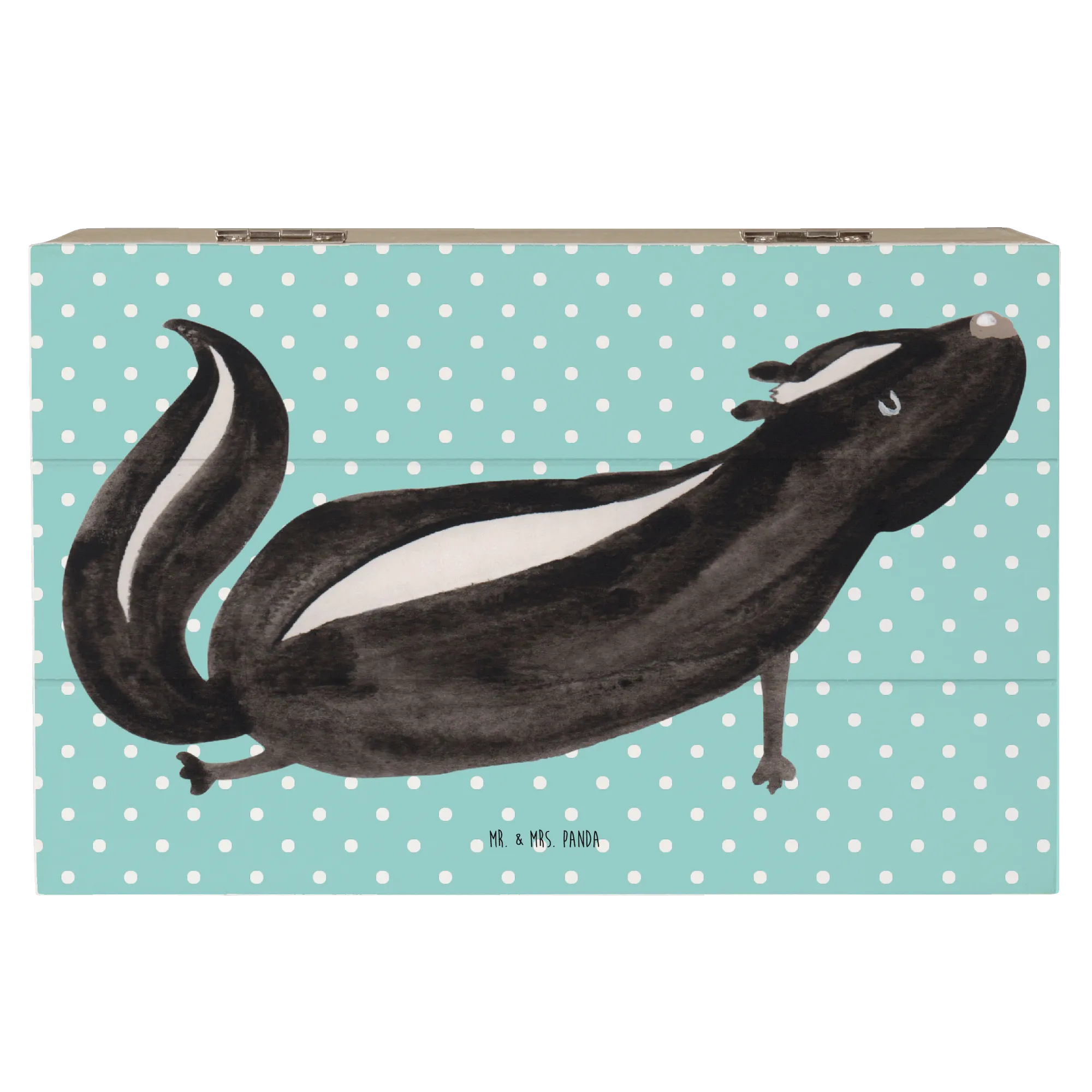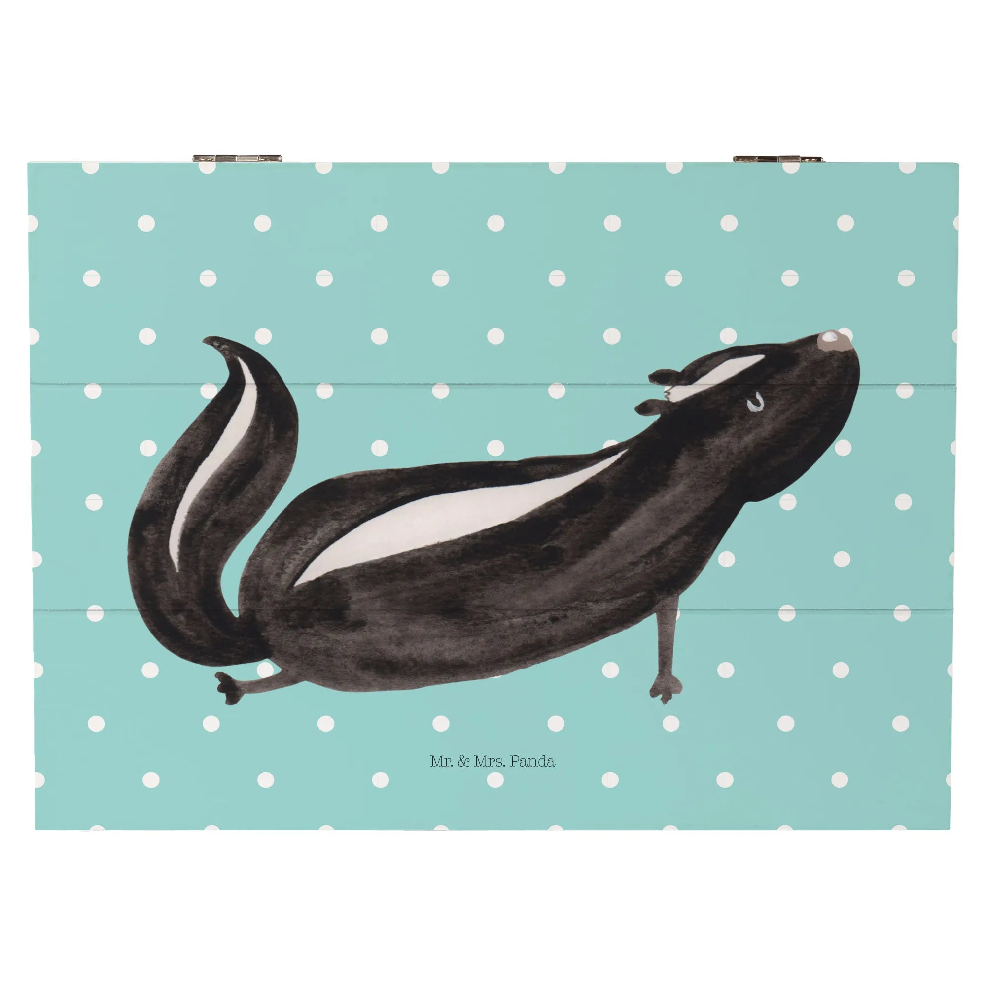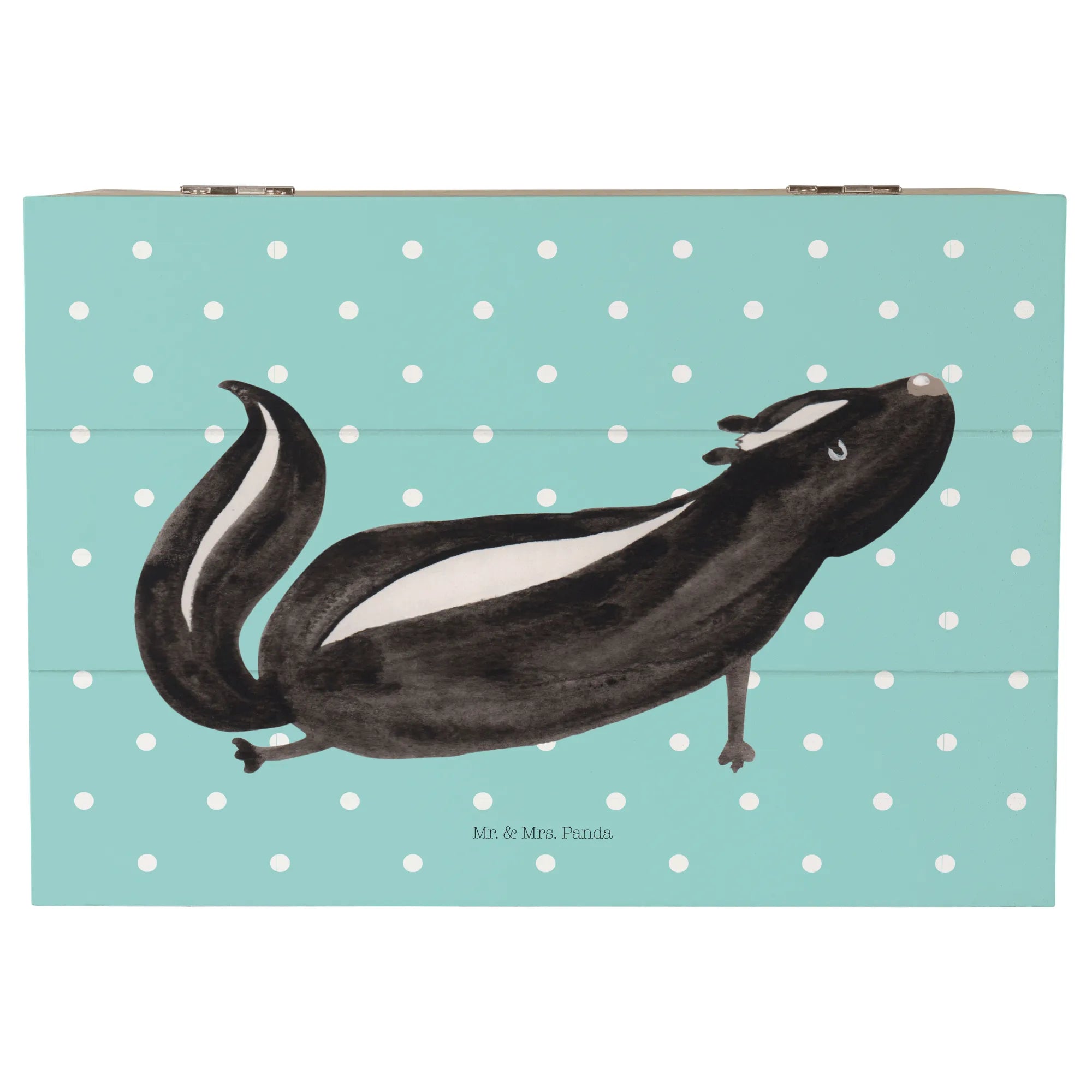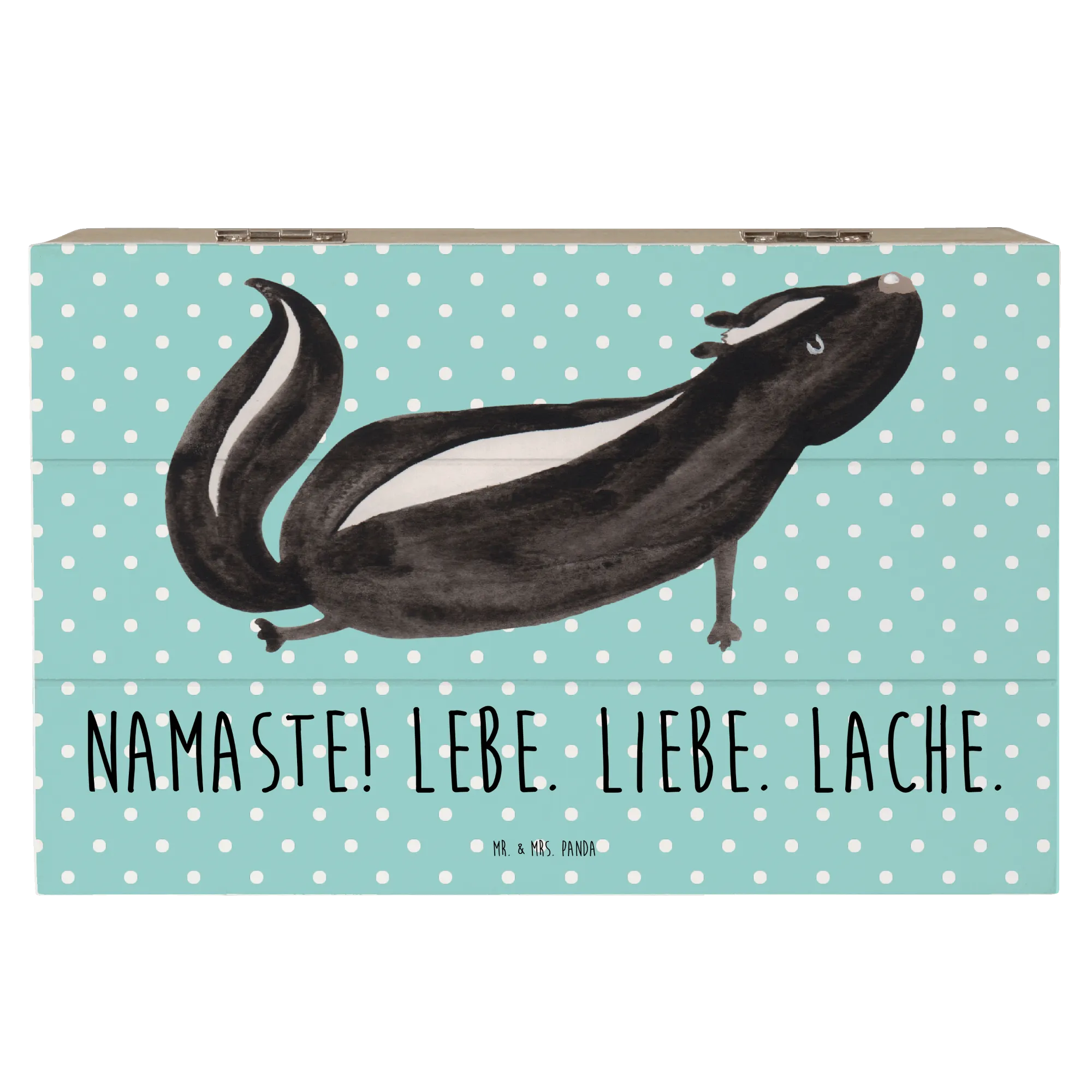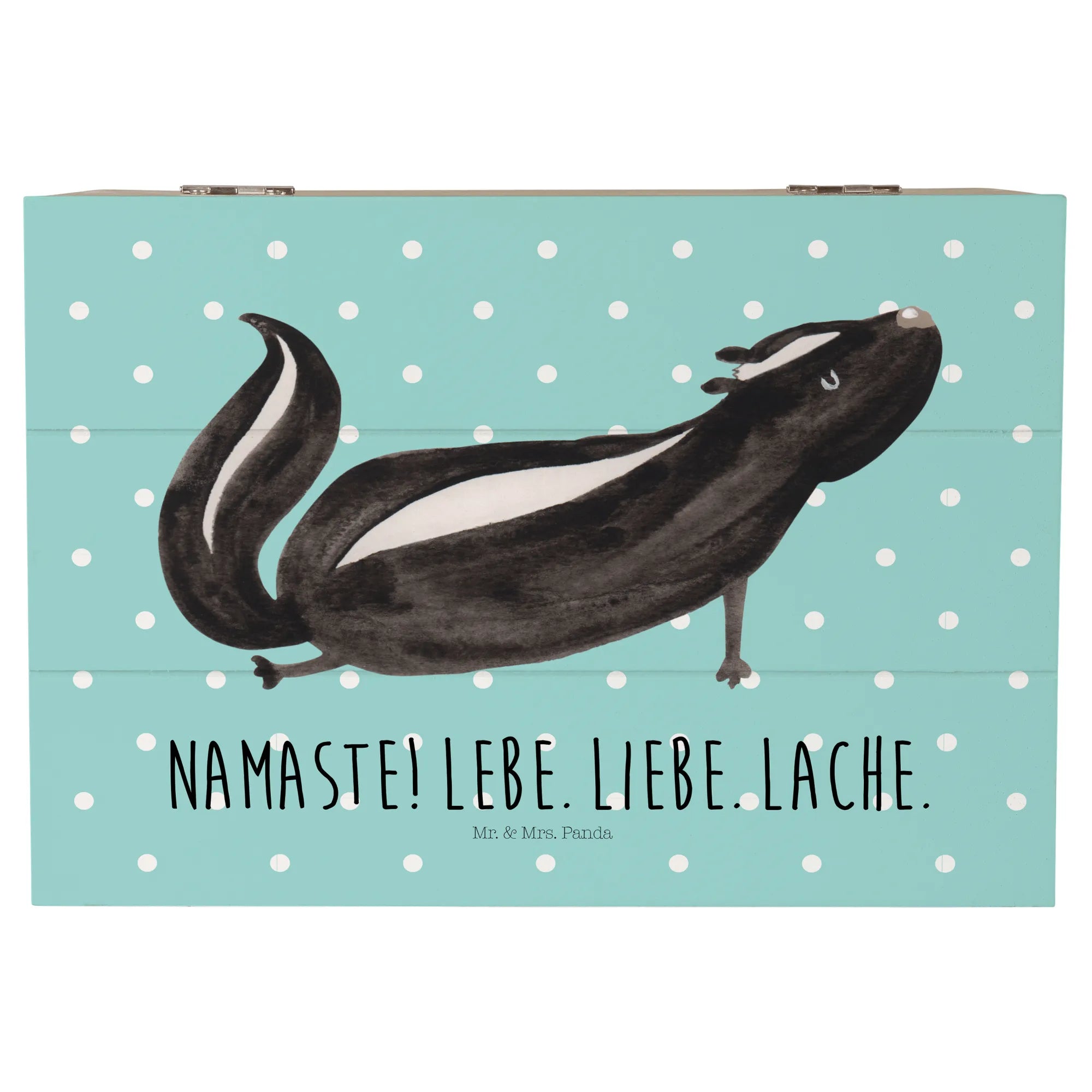 In summary, whether you’re a yoga aficionado, love unique decorative pieces, or are on the hunt for the ultimate gift, the Mr. & Mrs. Panda Wooden Chest with the Skunk Yoga motif is the perfect choice! Embrace your love for stinky cuteness and create a cozy, loving atmosphere with this wonderful memory box – because everyone needs a little bit of stinker in their life!