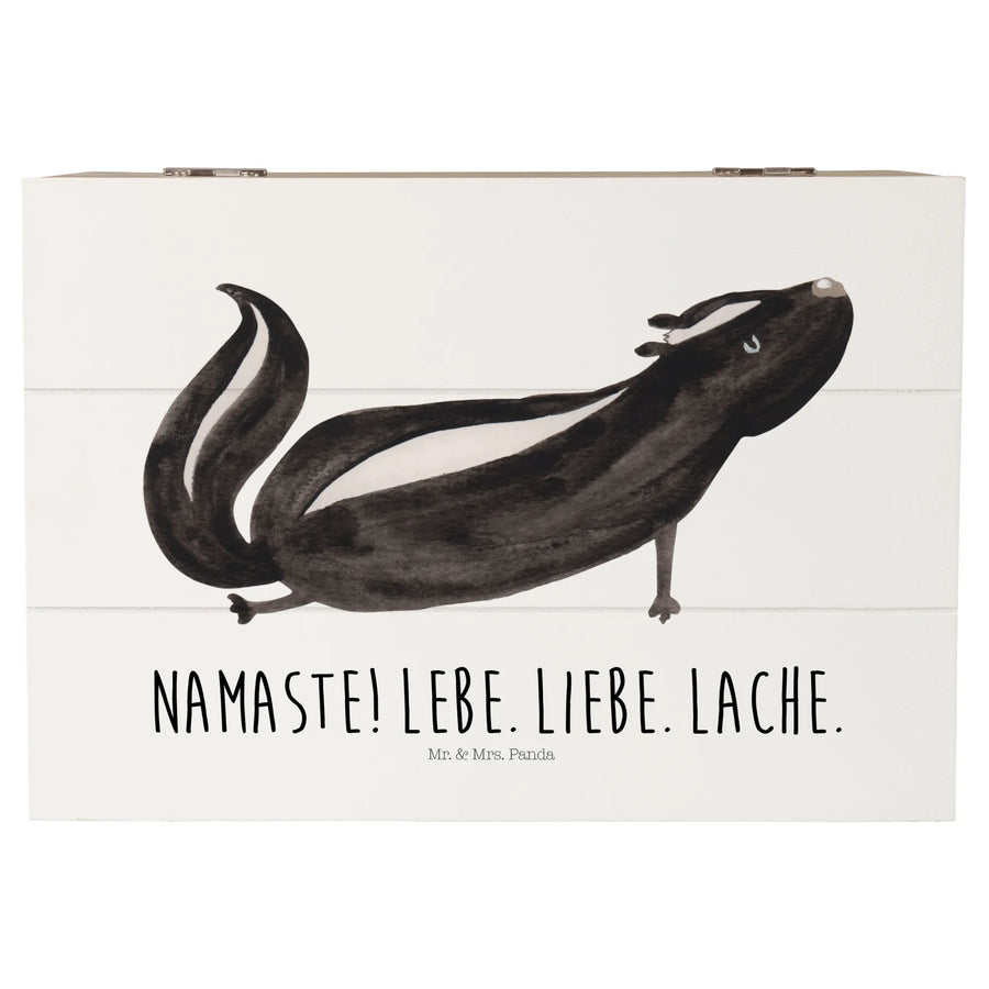 If you’re searching for a delightful and unique gift that brings a smile to everyone's face, look no further than our stunning Wooden Chest featuring the adorable Skunk Yoga design from the Skunk - Collection by Mr. & Mrs. Panda!